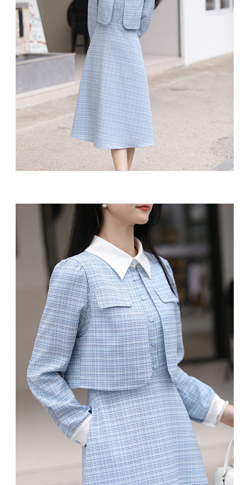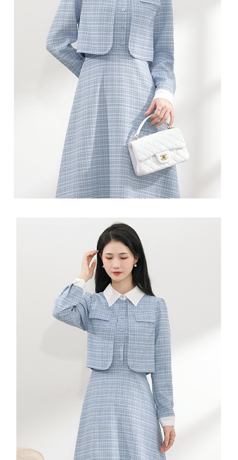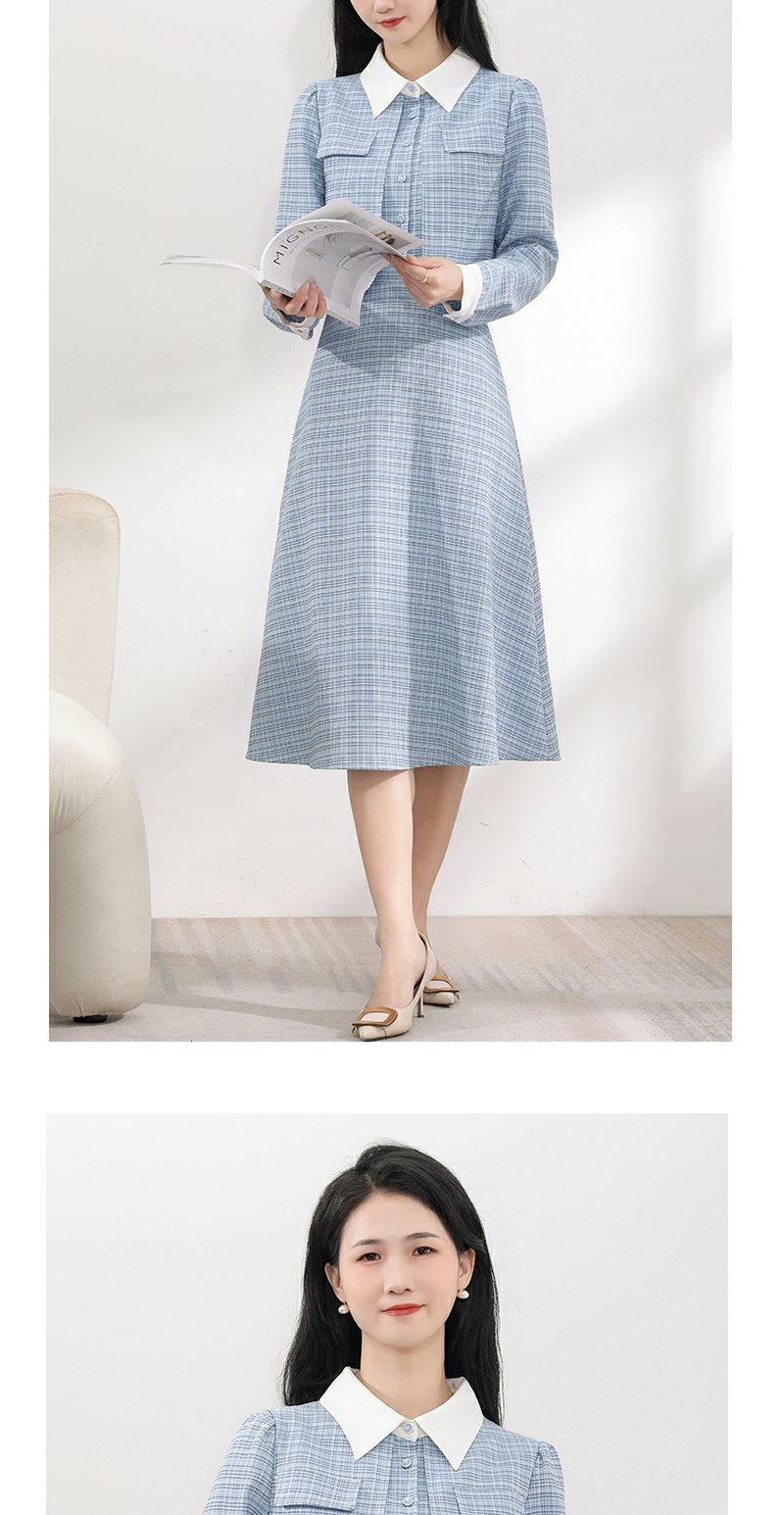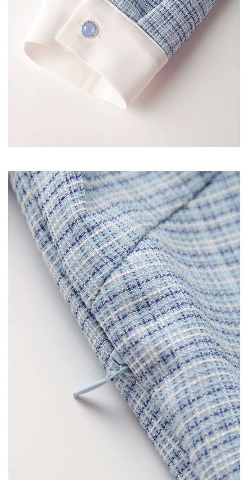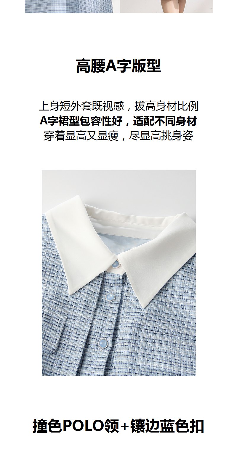 未风蓝色小香风假两件连衣裙女2024秋季新款气质长裙早秋显瘦裙子