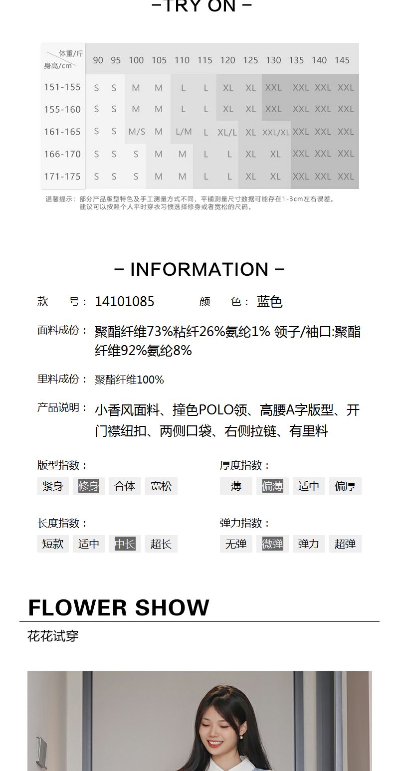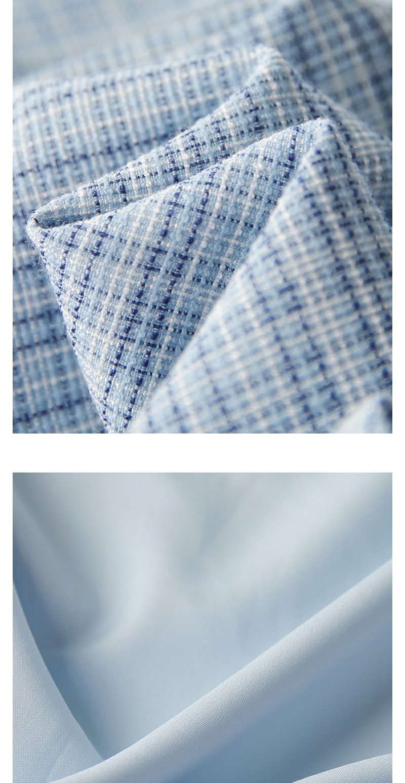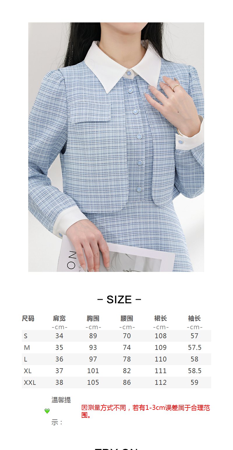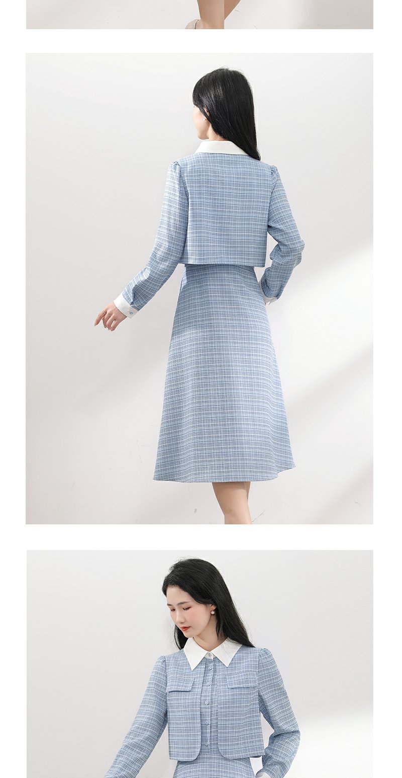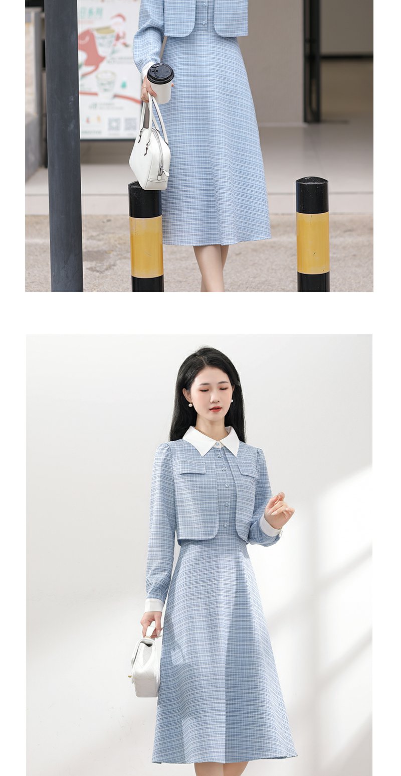 未风蓝色小香风假两件连衣裙女2024秋季新款气质长裙早秋显瘦裙子