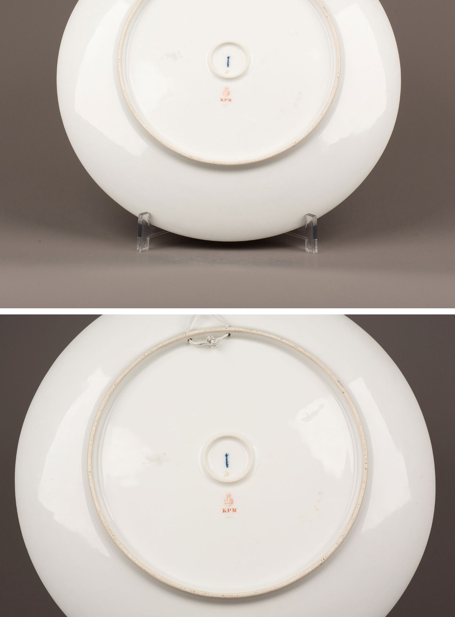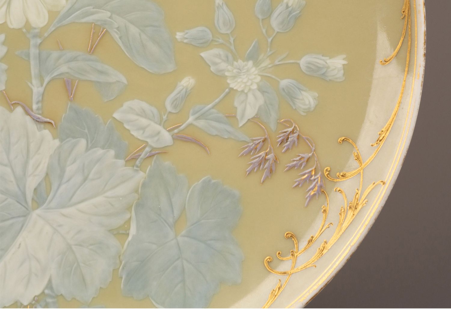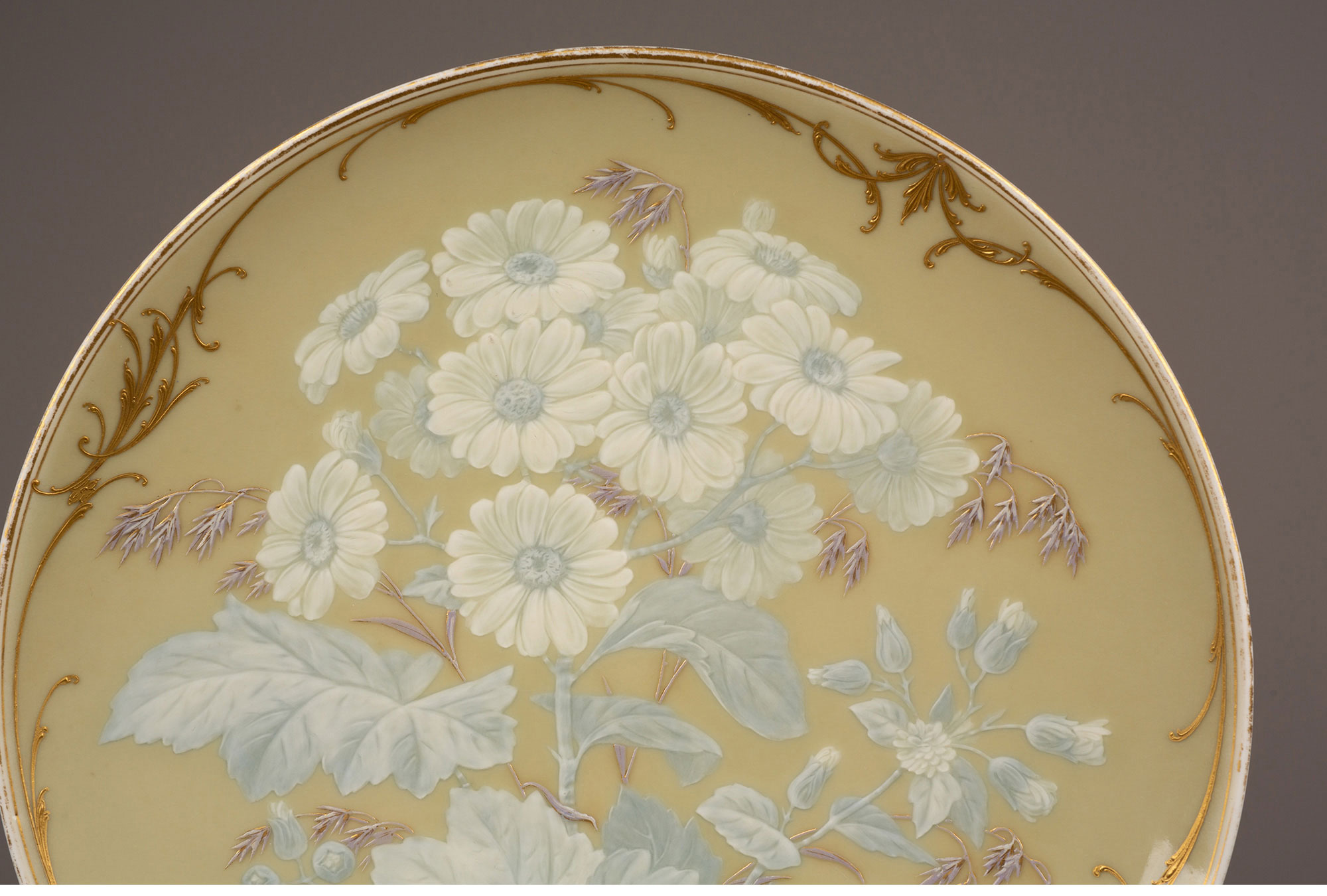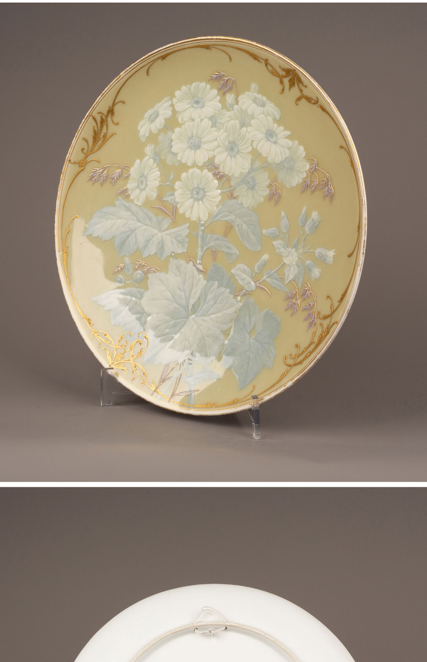 独角鹿西洋古董瓷器德国KPM Gustav Kämper雏菊描金浮雕玉石瓷盘
