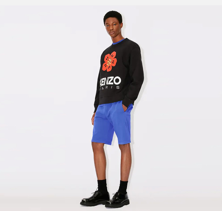 KENZO 高田贤三 男士棉质海棠花徽标印花长袖卫衣 黑色 FD55 SW445 4ME 99J
