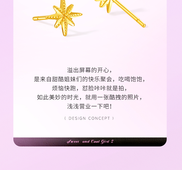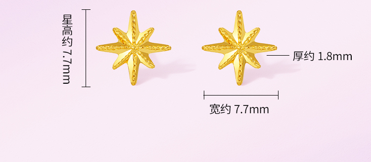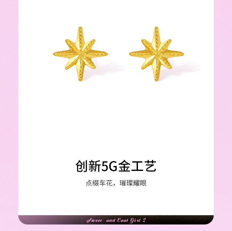 周六福黄金耳钉计价5G足金六芒星耳饰送女友甜酷少女 -第二代系列