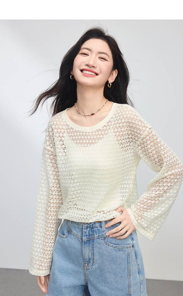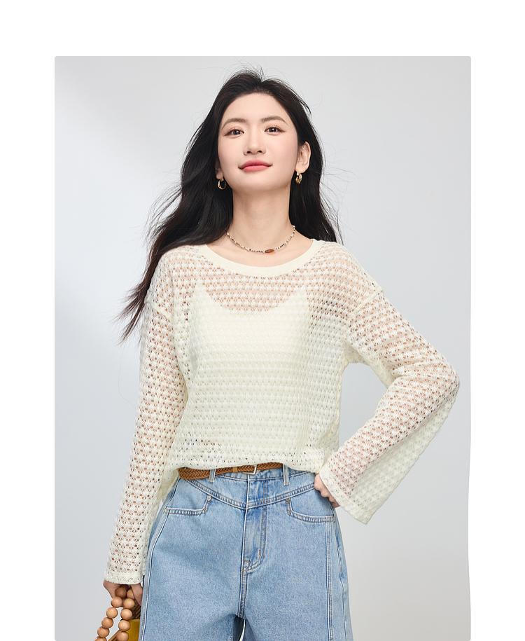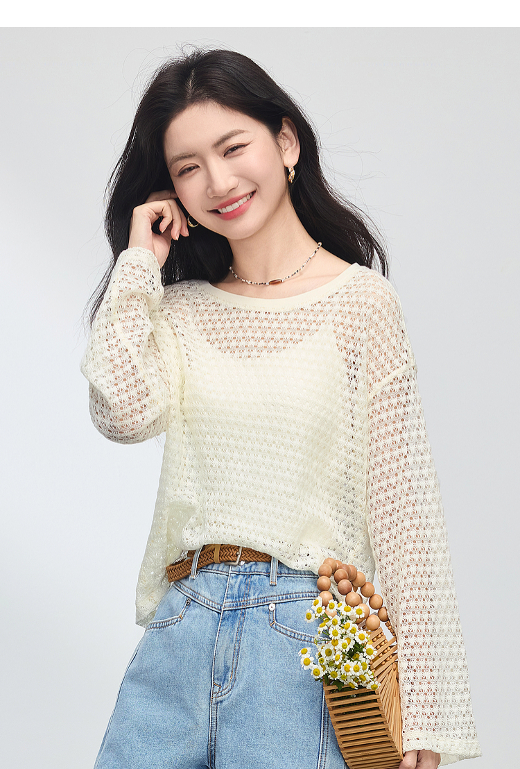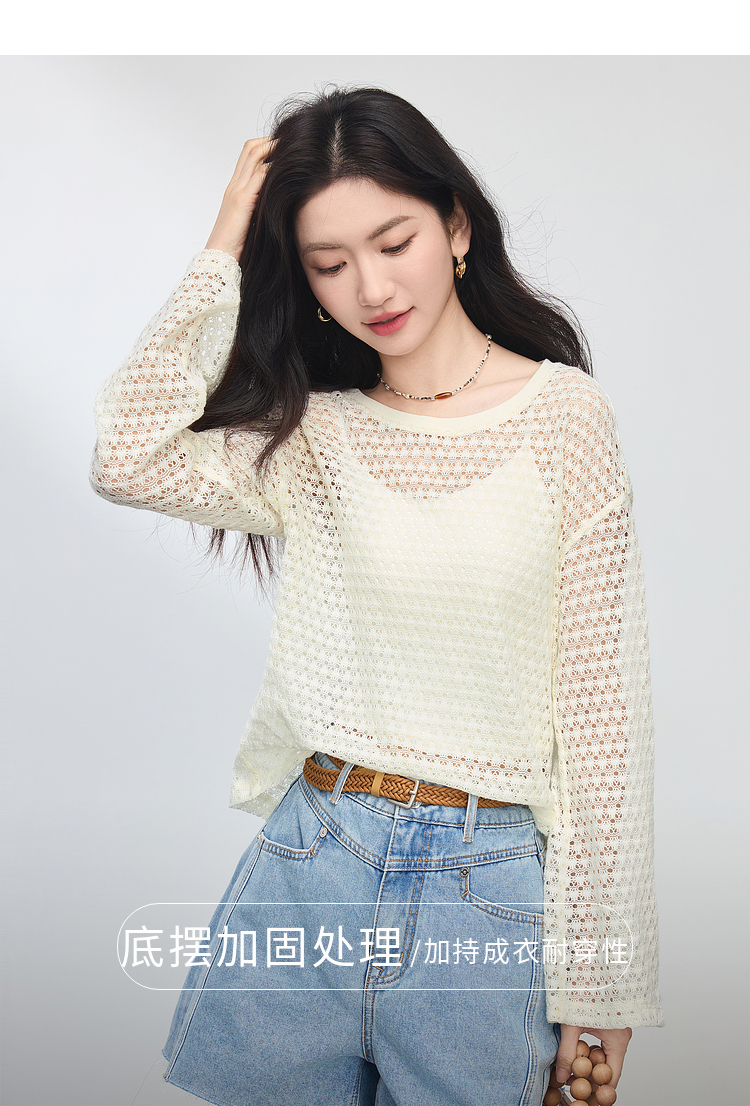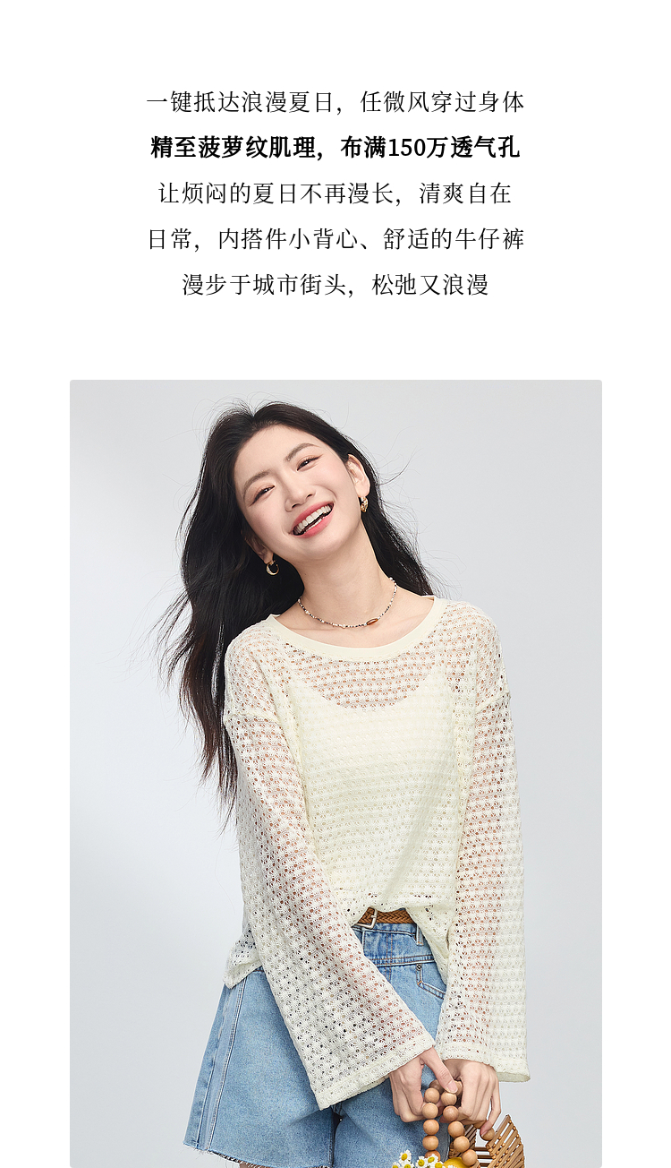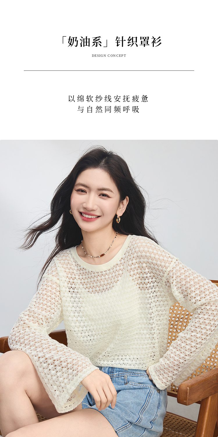 熙世界薄款镂空针织衫女春夏2025年新款宽松慵懒风肌理感罩衫上衣