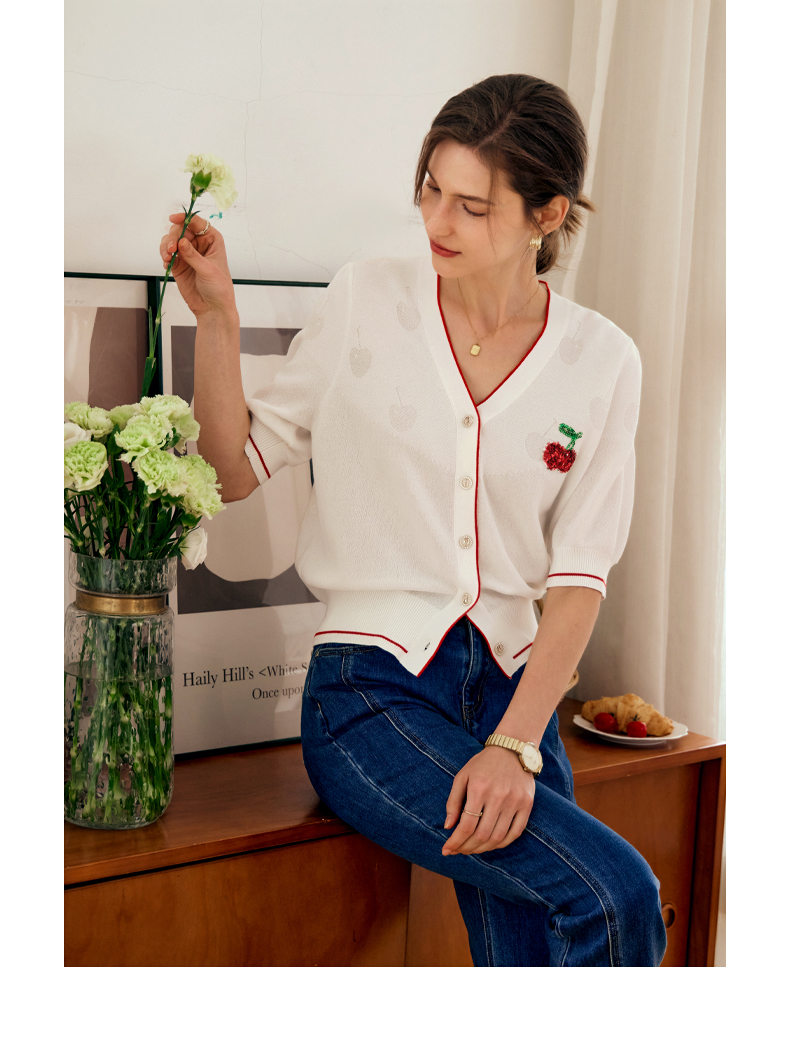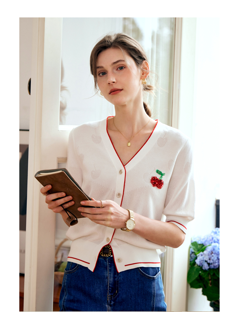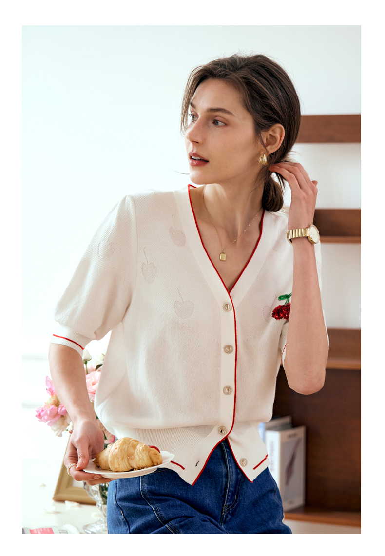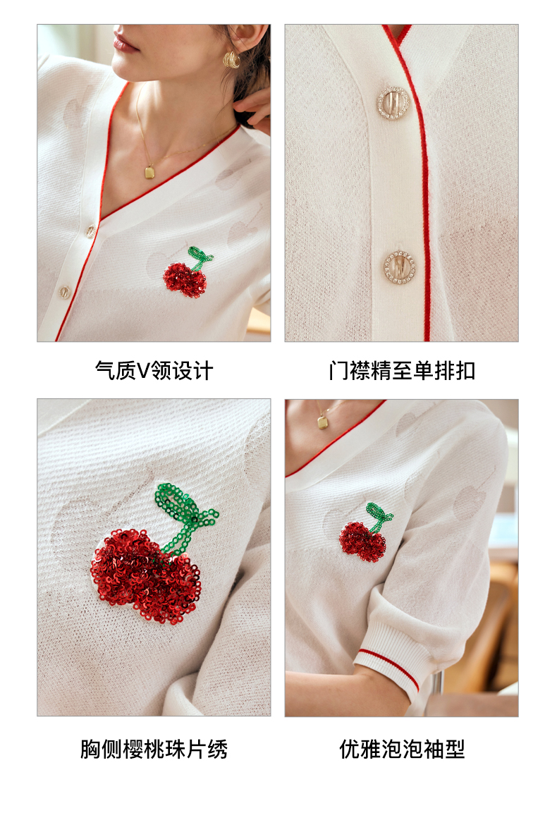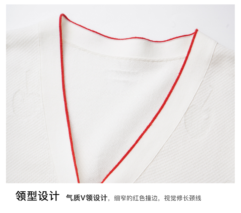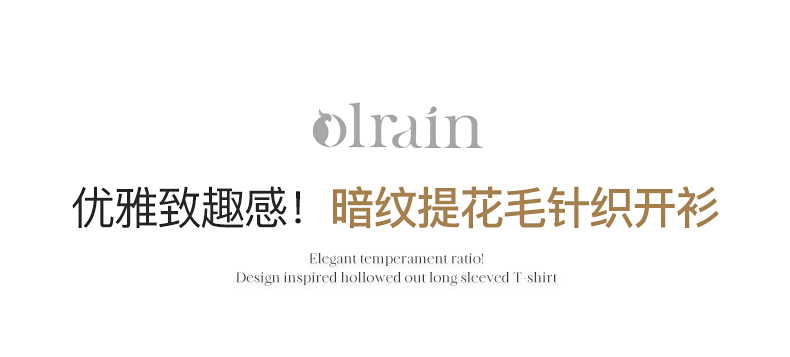 OLrain欧芮儿米白色V领针织衫女早春2024年新款宽松暗纹提花开衫