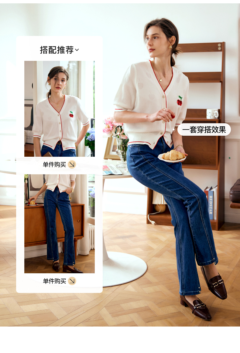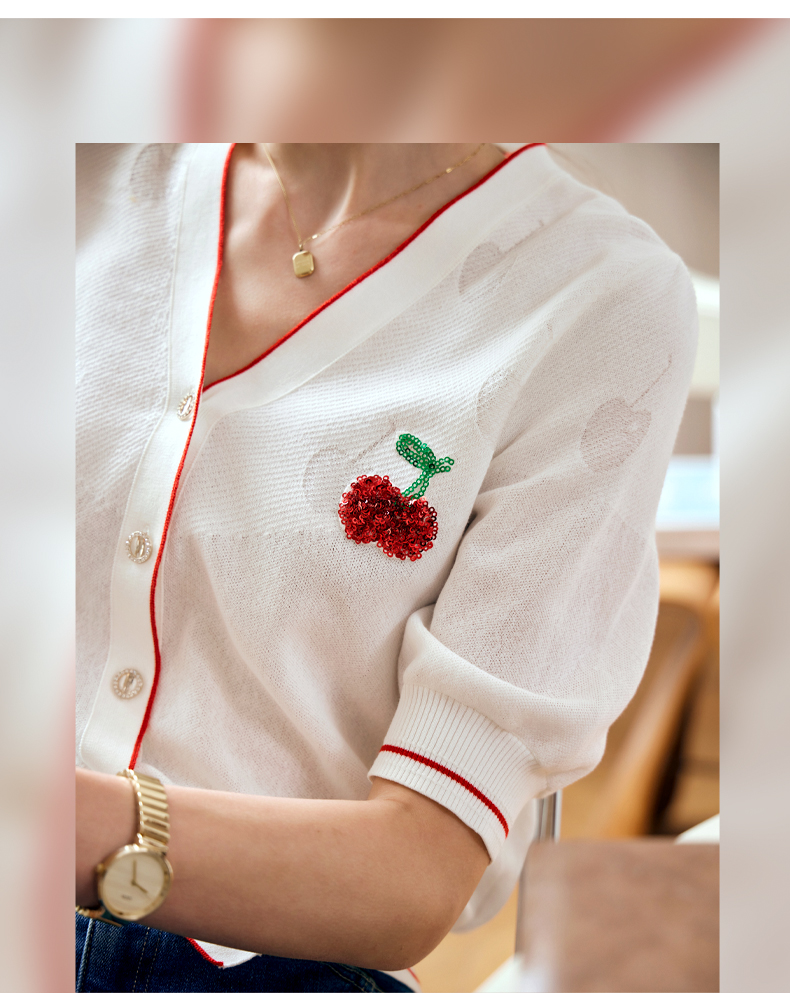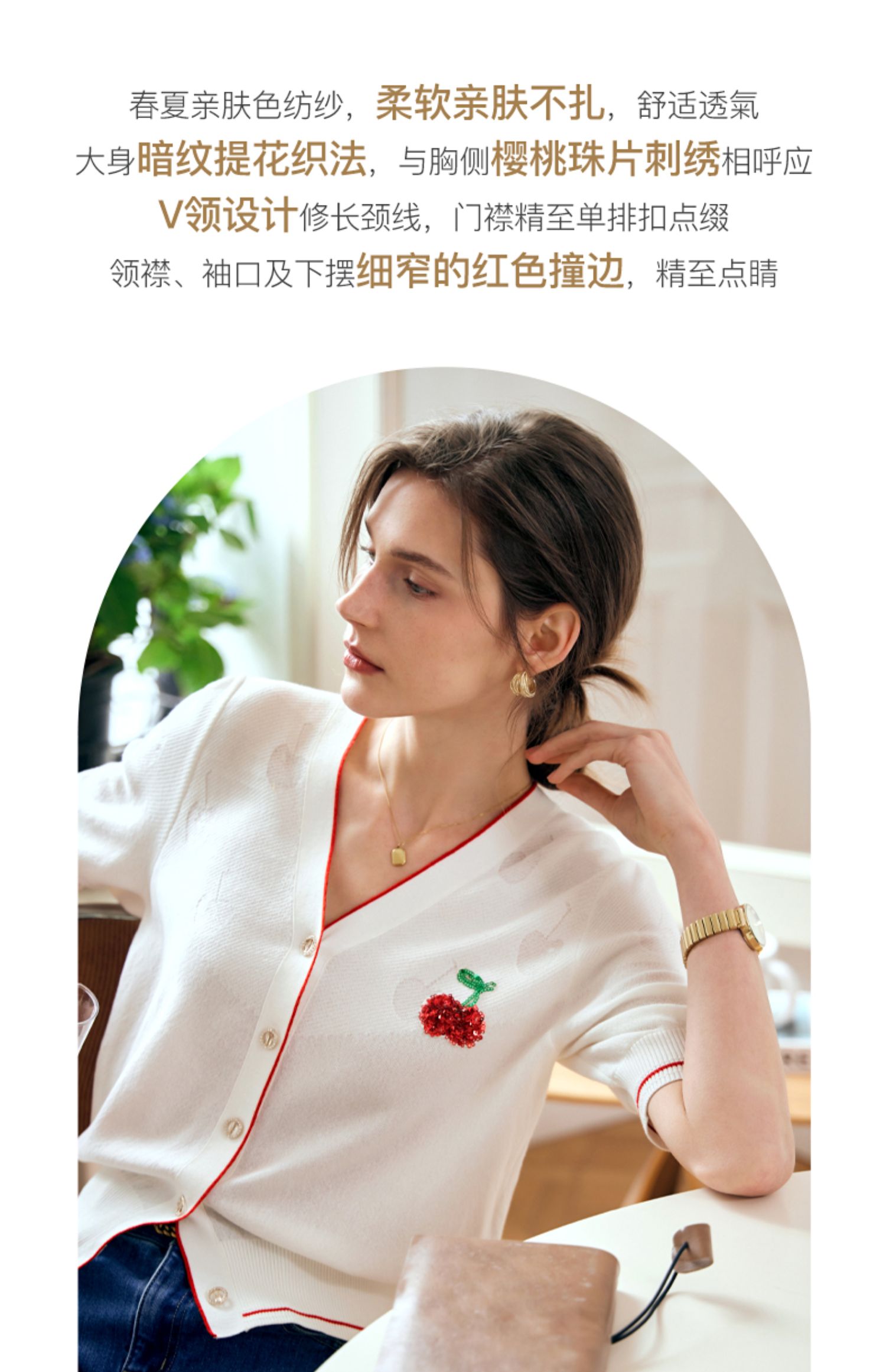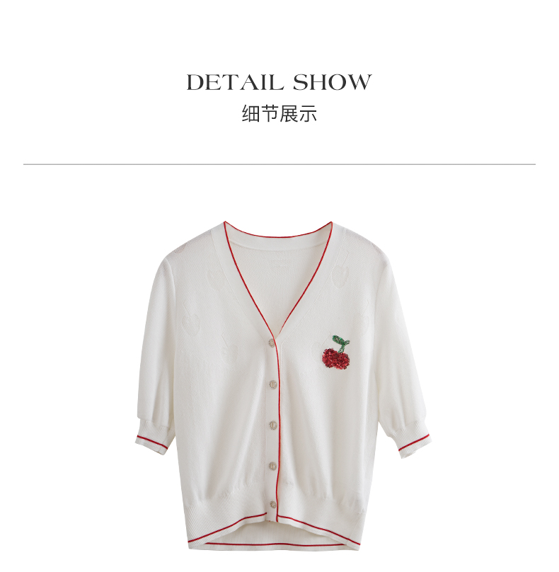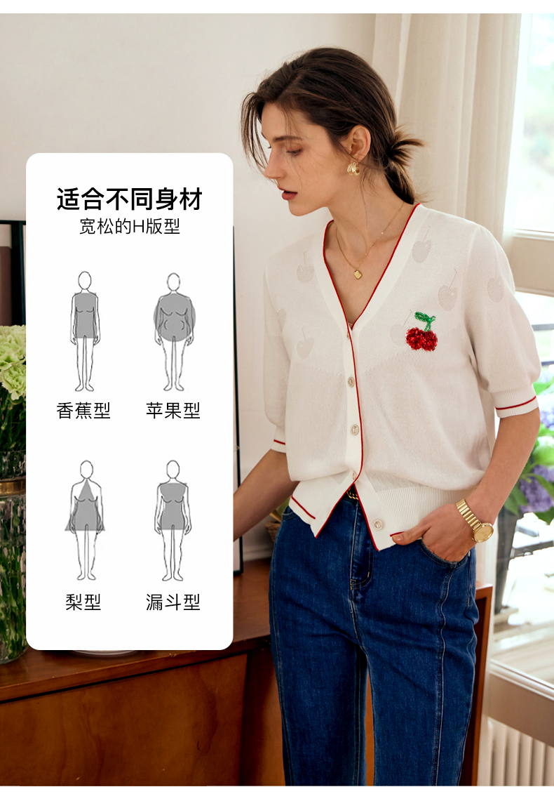 OLrain欧芮儿米白色V领针织衫女早春2024年新款宽松暗纹提花开衫