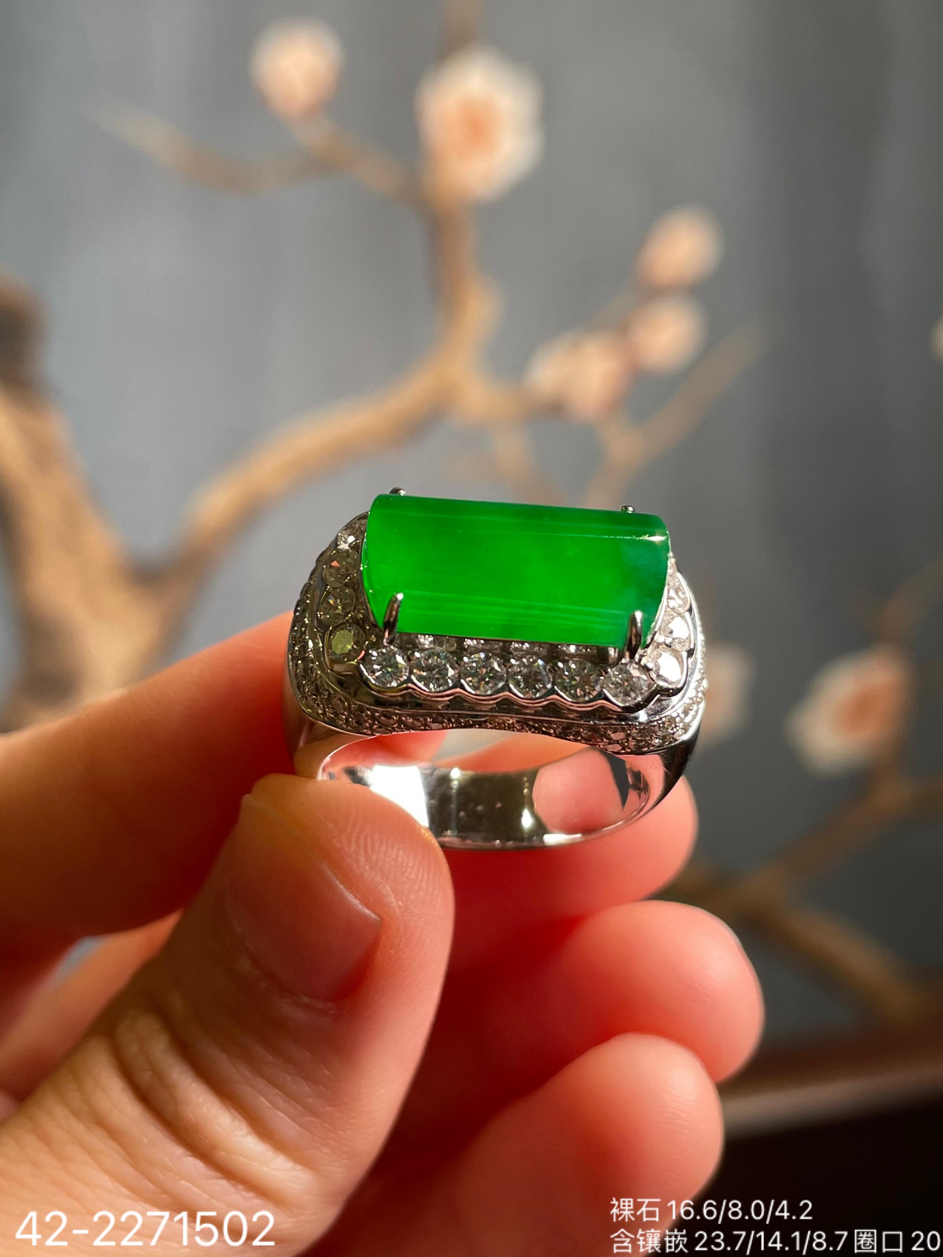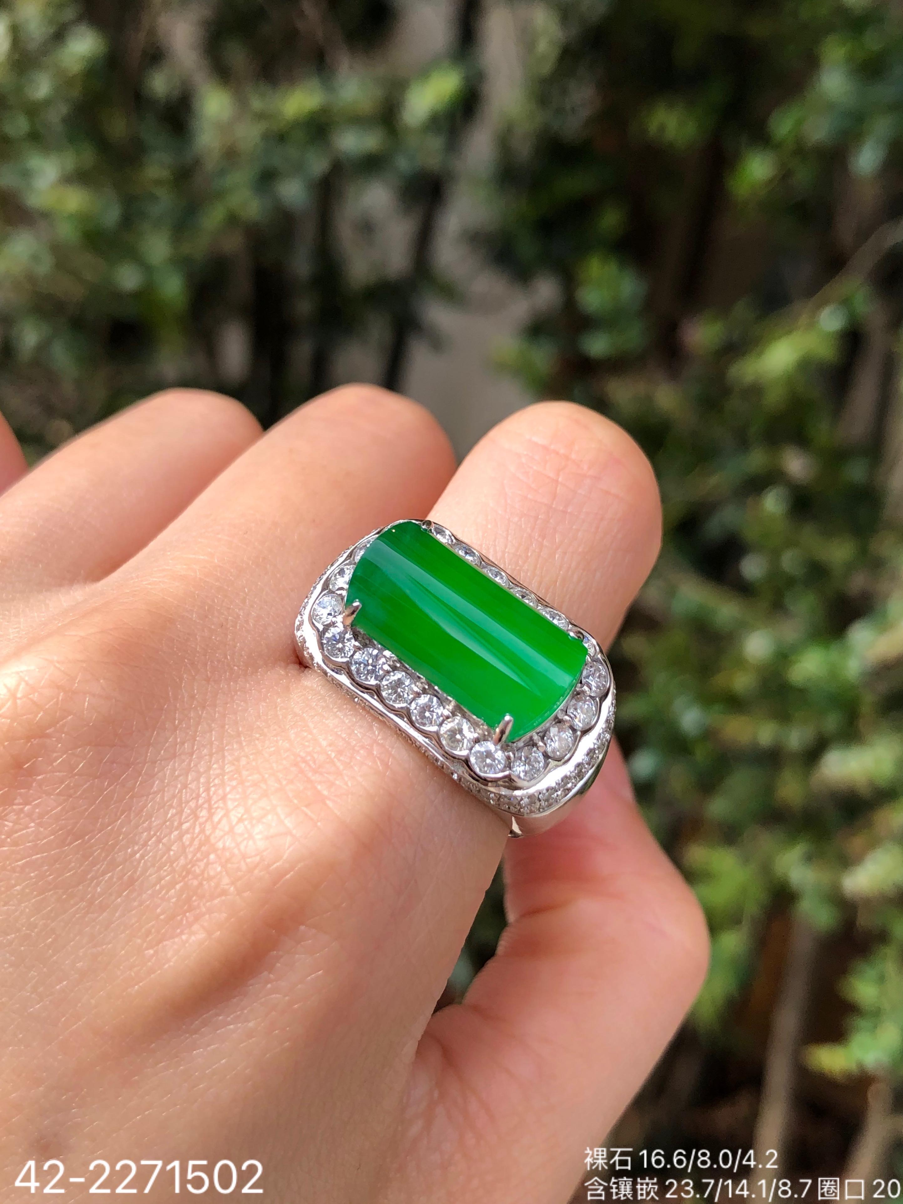 老坑玻璃艳绿马鞍戒指【42-2271502】具体价格微信咨询