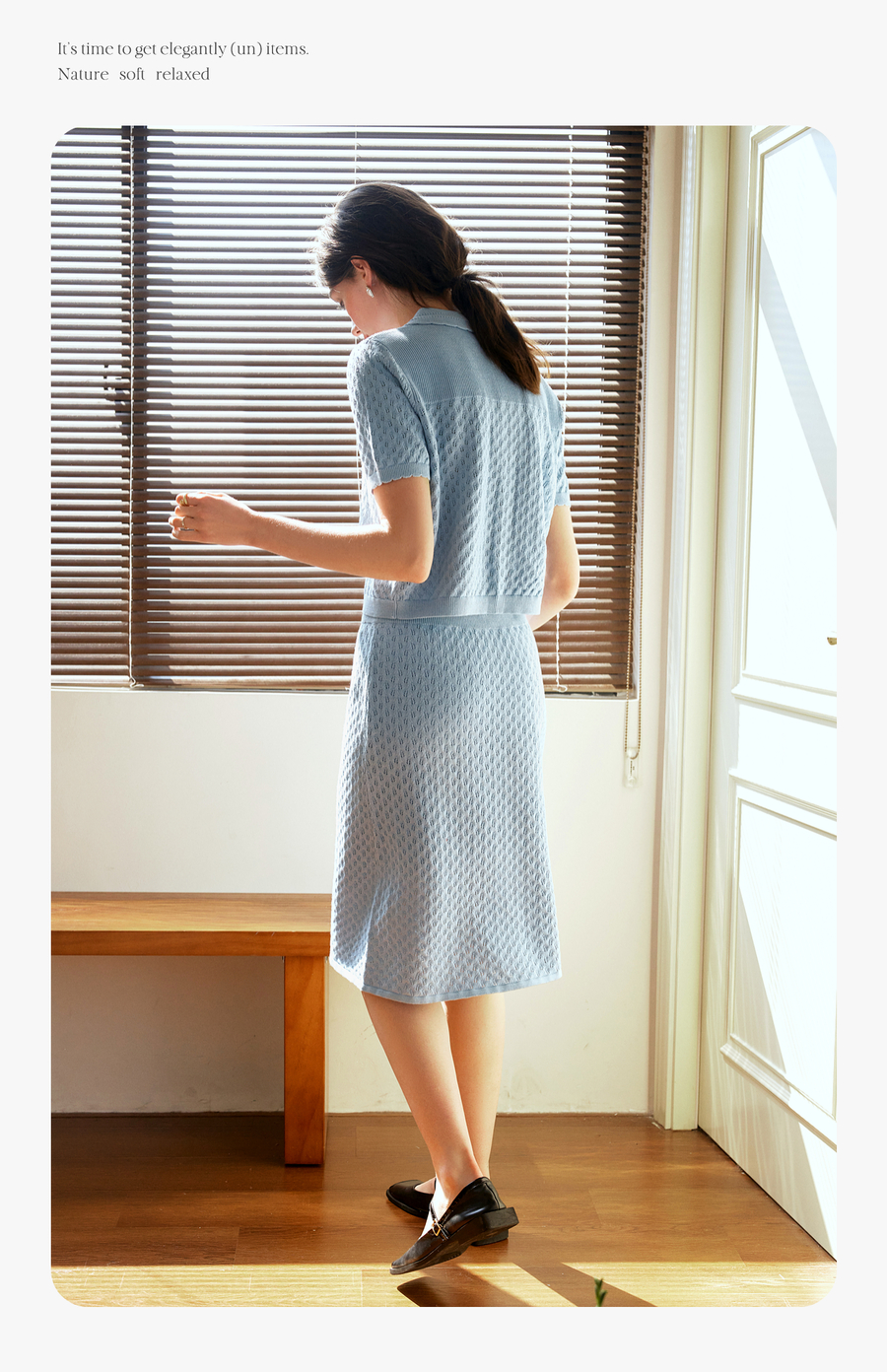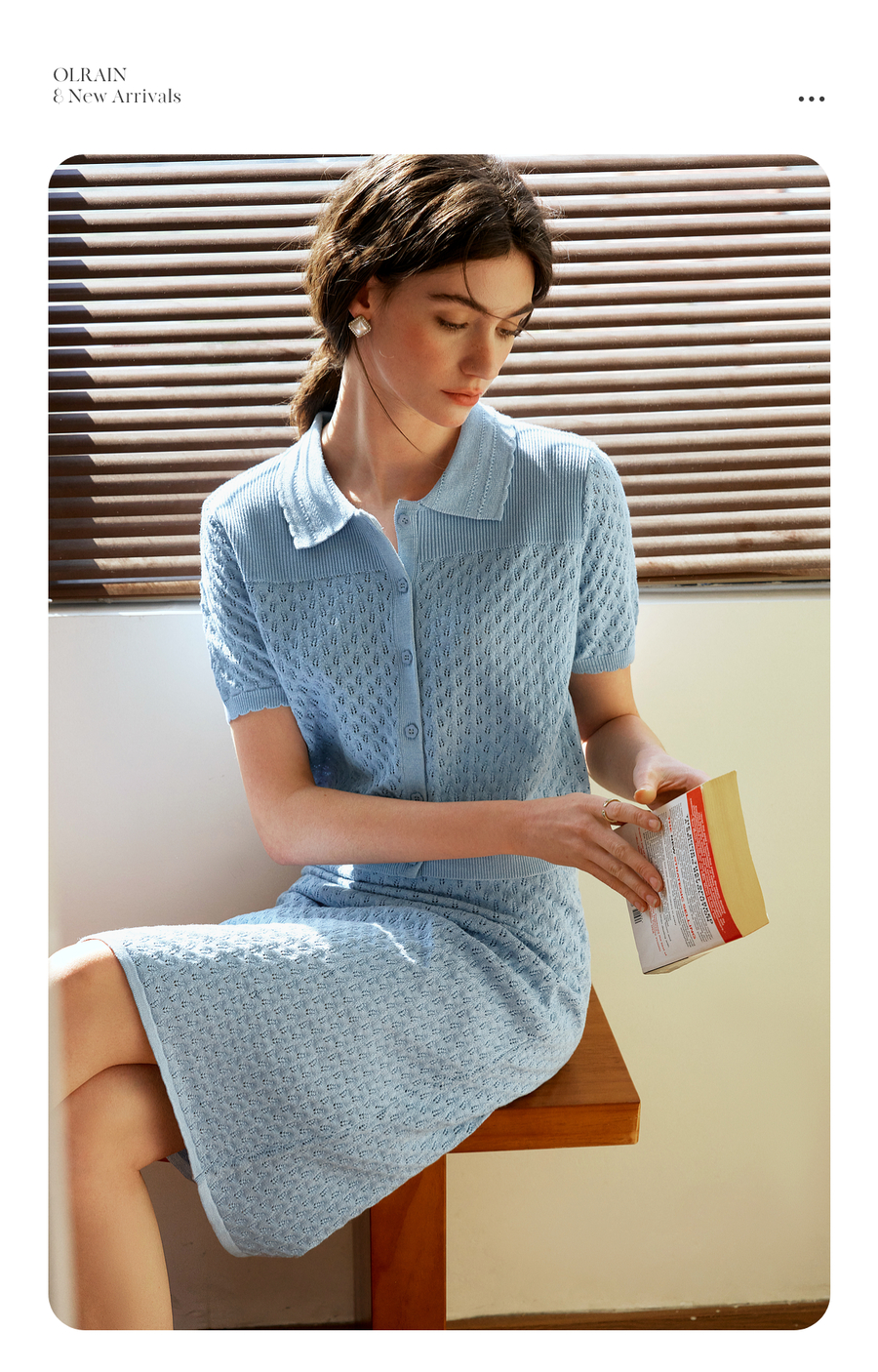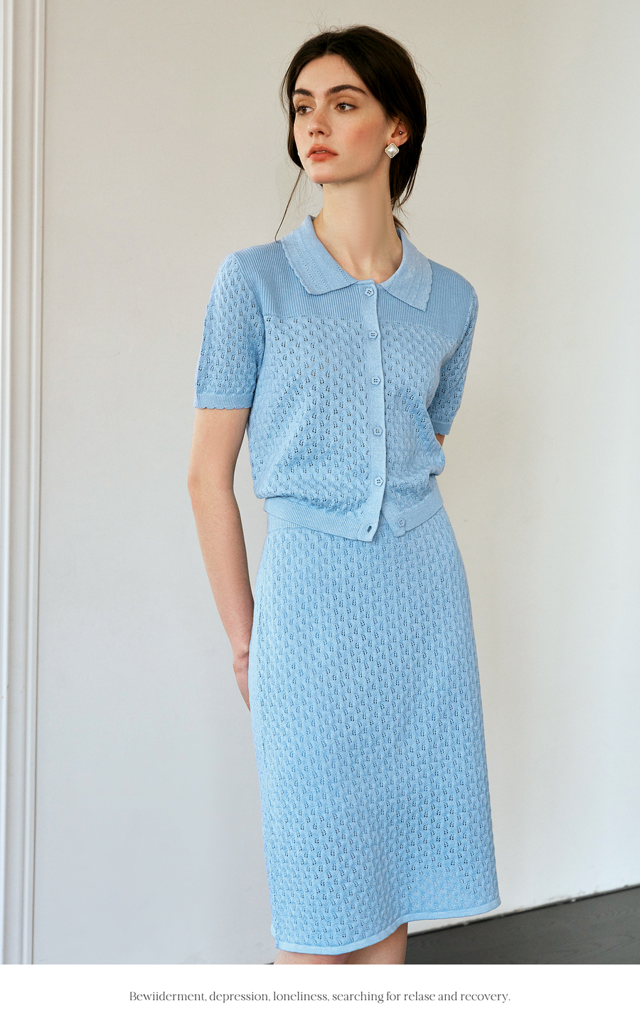 OLrain欧芮儿2025春季蓝色法式通勤镂空毛针织裙气质两件套装裙