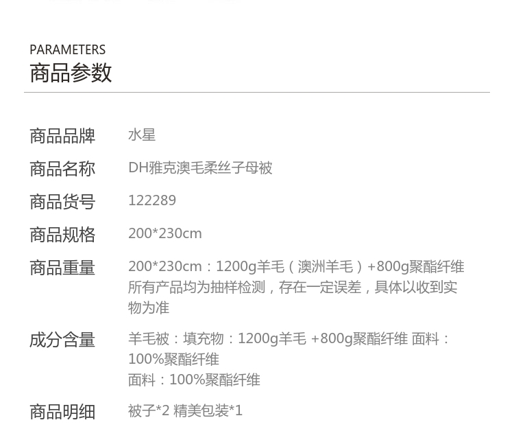 DH雅克澳毛柔丝子母被