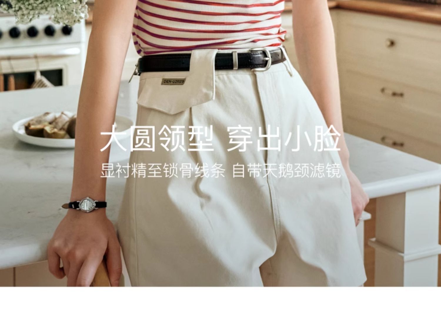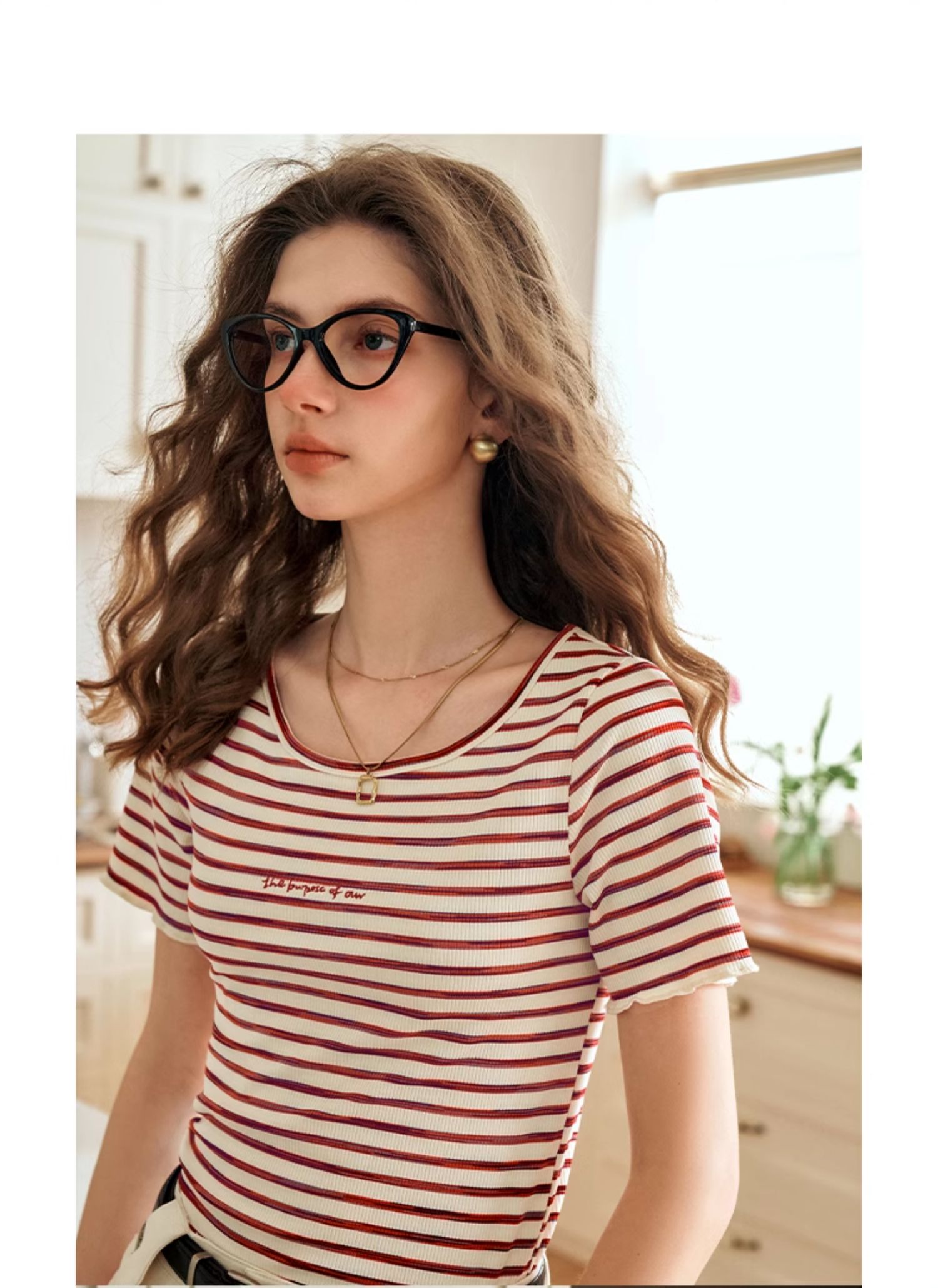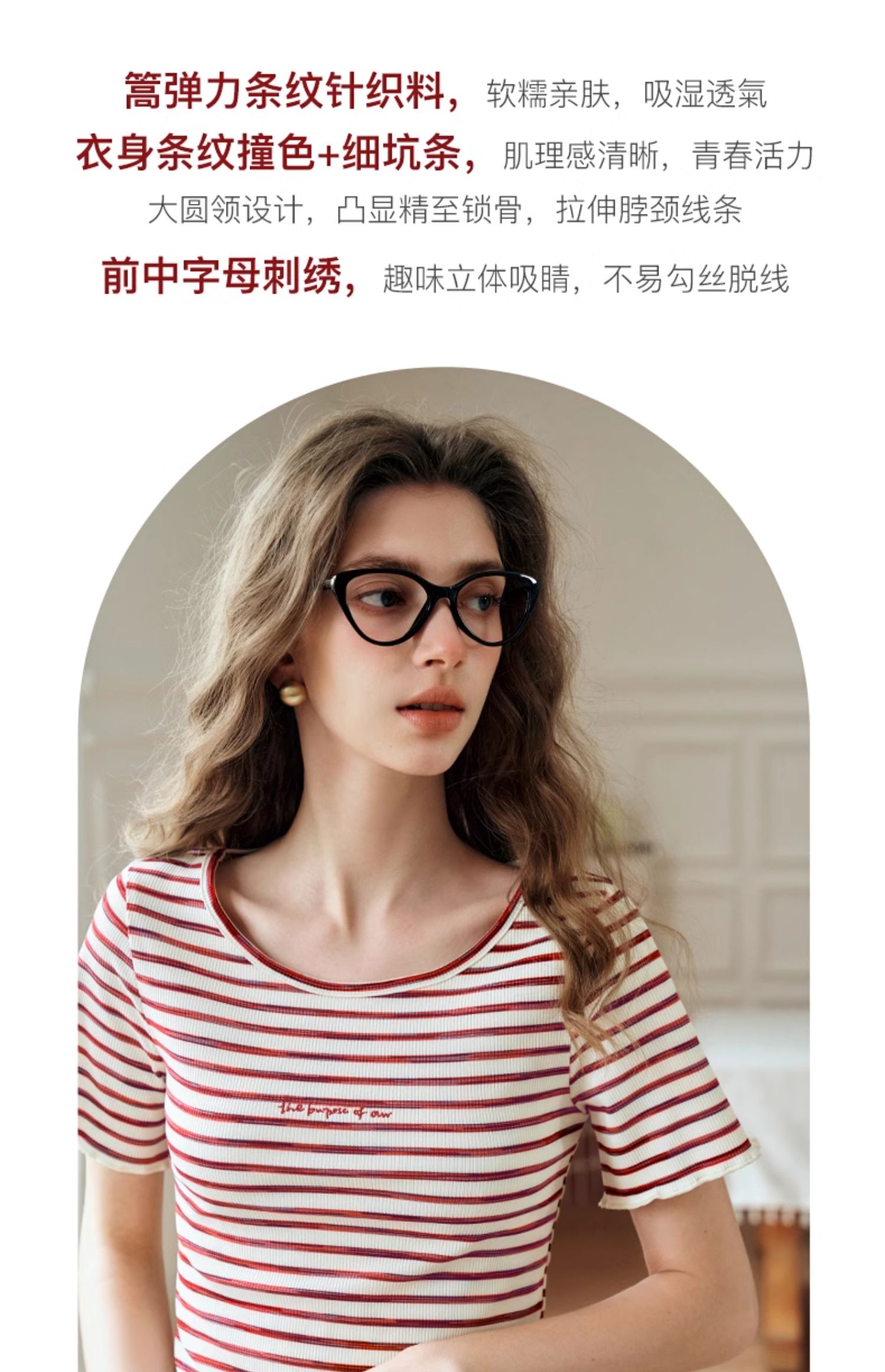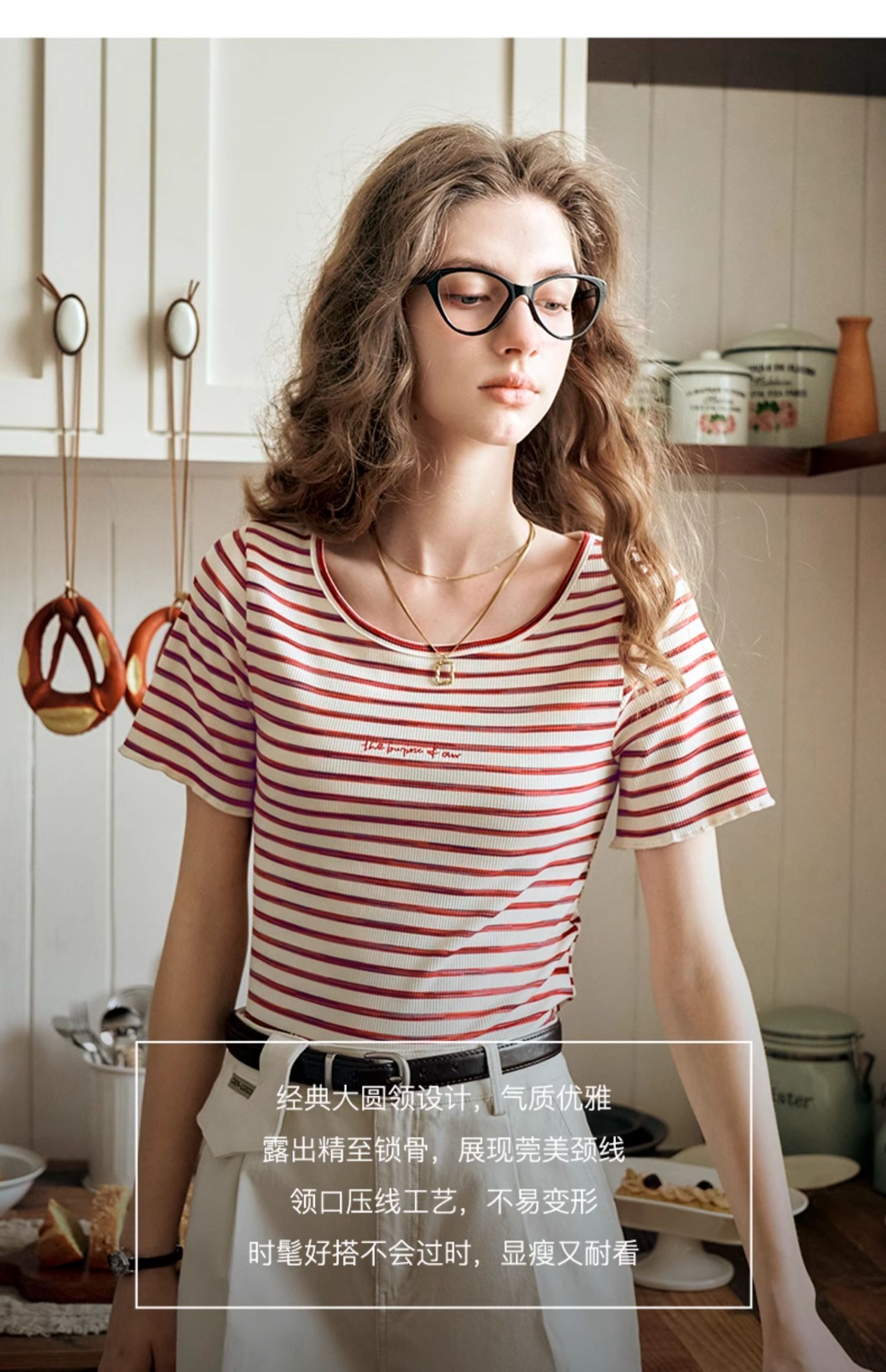OLrain欧芮儿方领条纹T恤女夏季2024年新款时尚休闲短袖针织衫