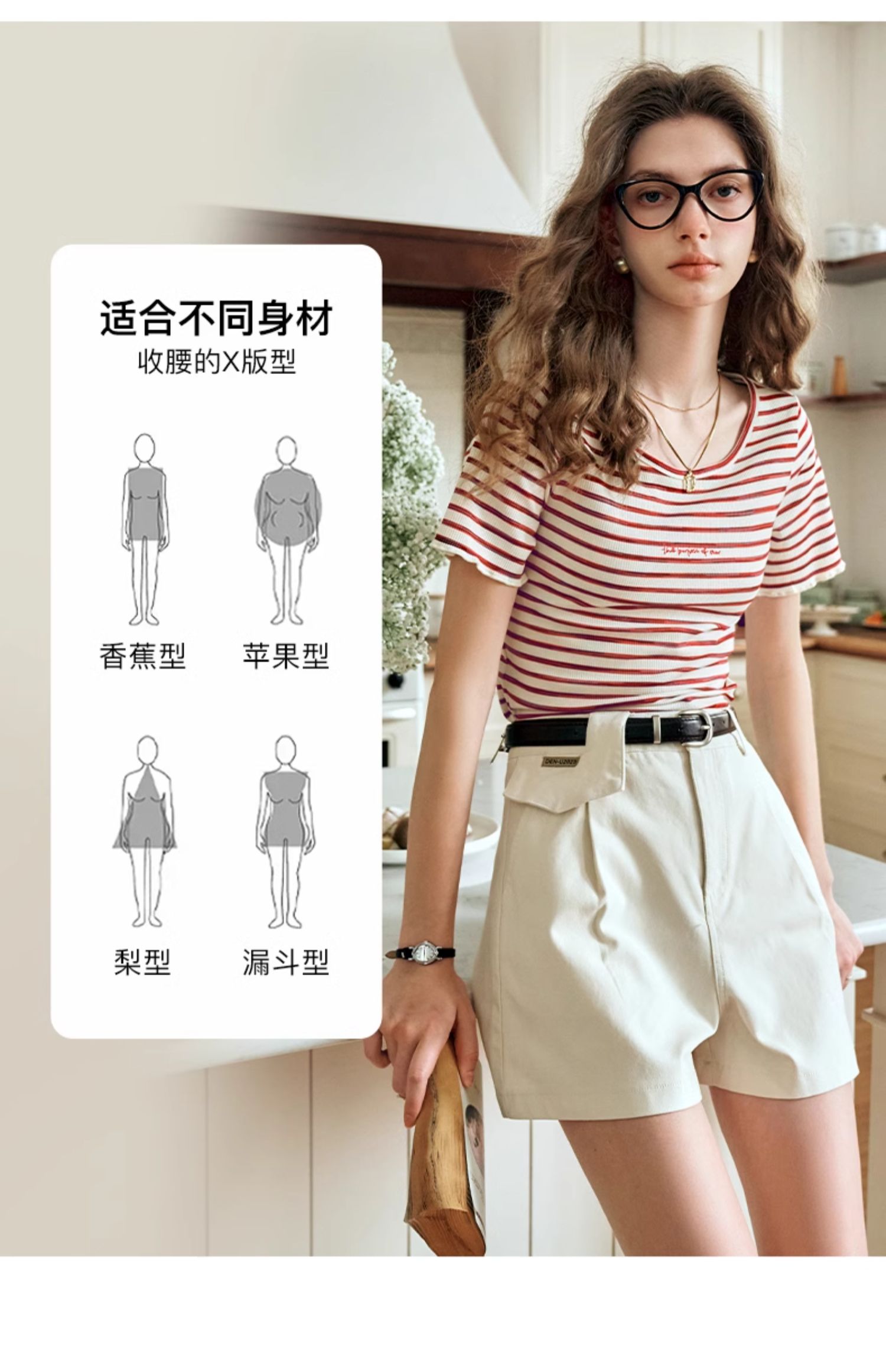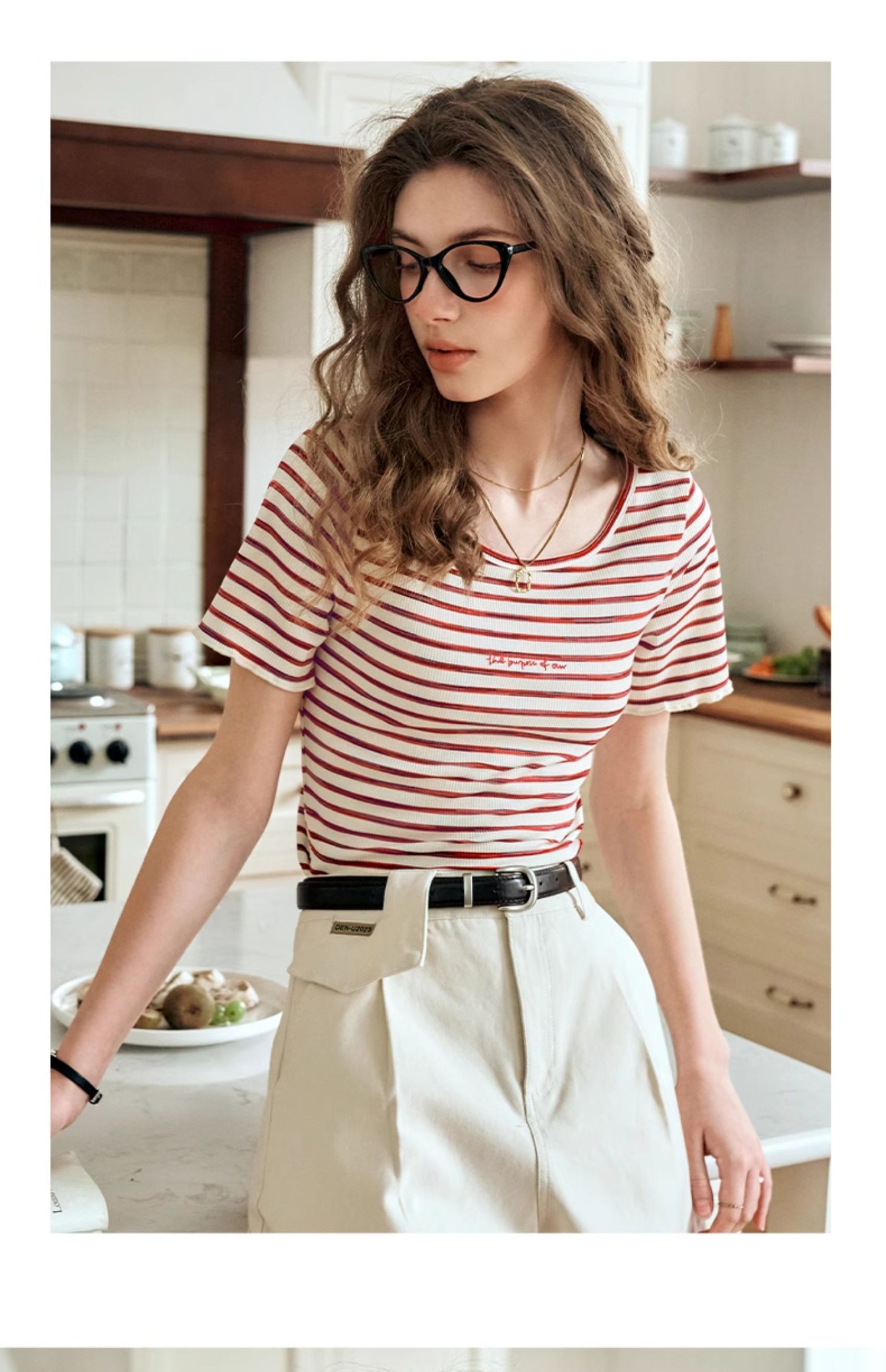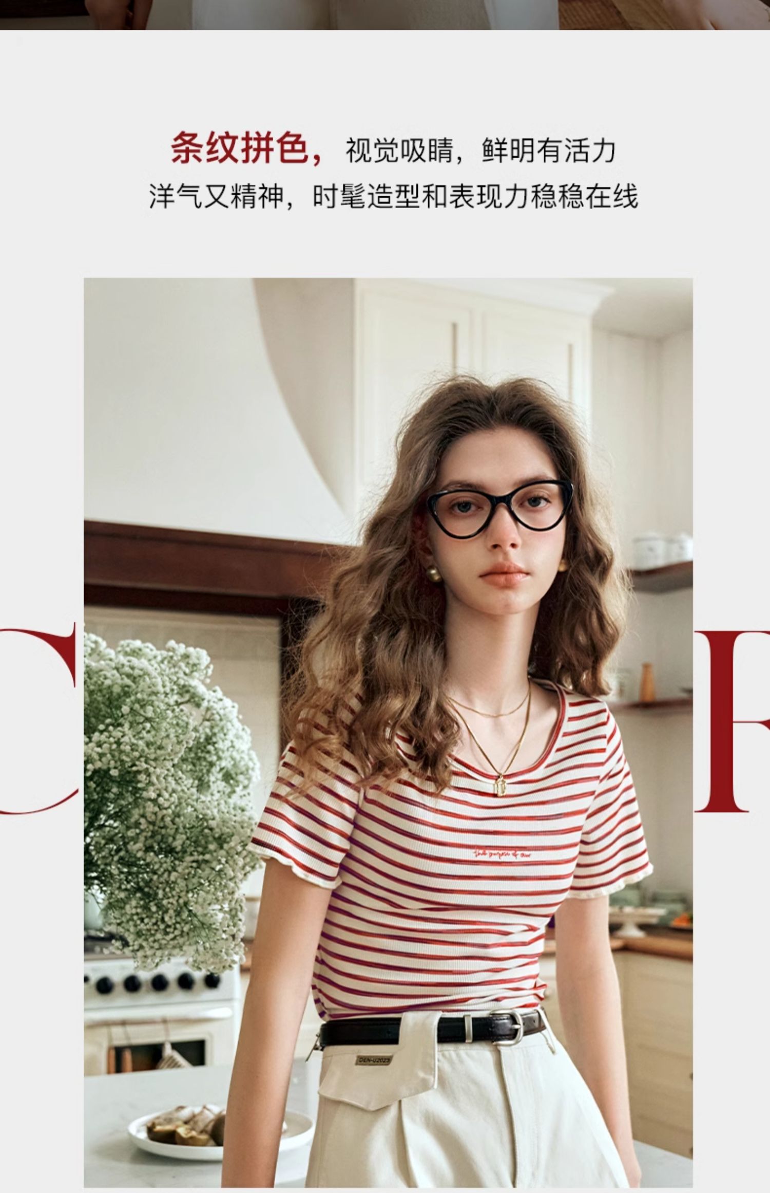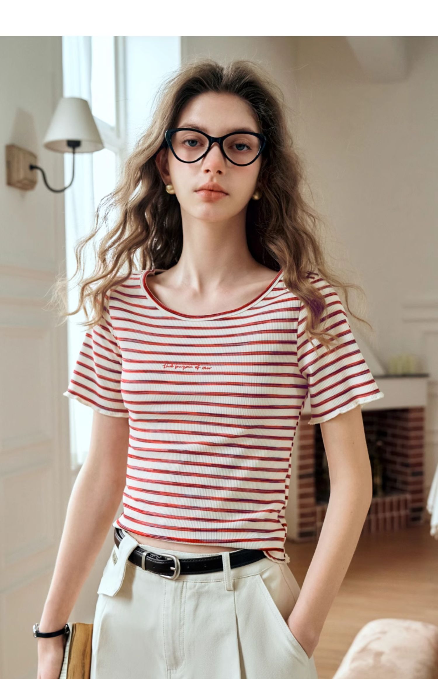 OLrain欧芮儿方领条纹T恤女夏季2024年新款时尚休闲短袖针织衫