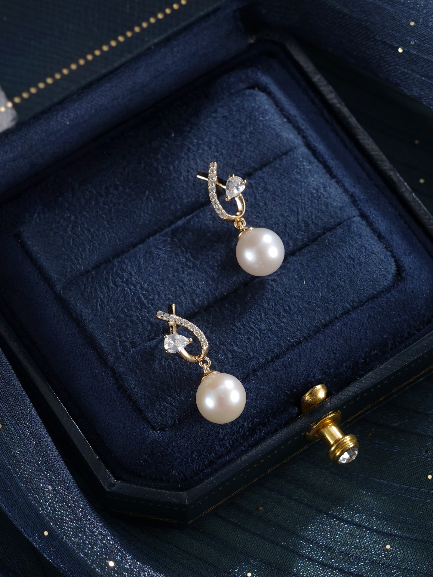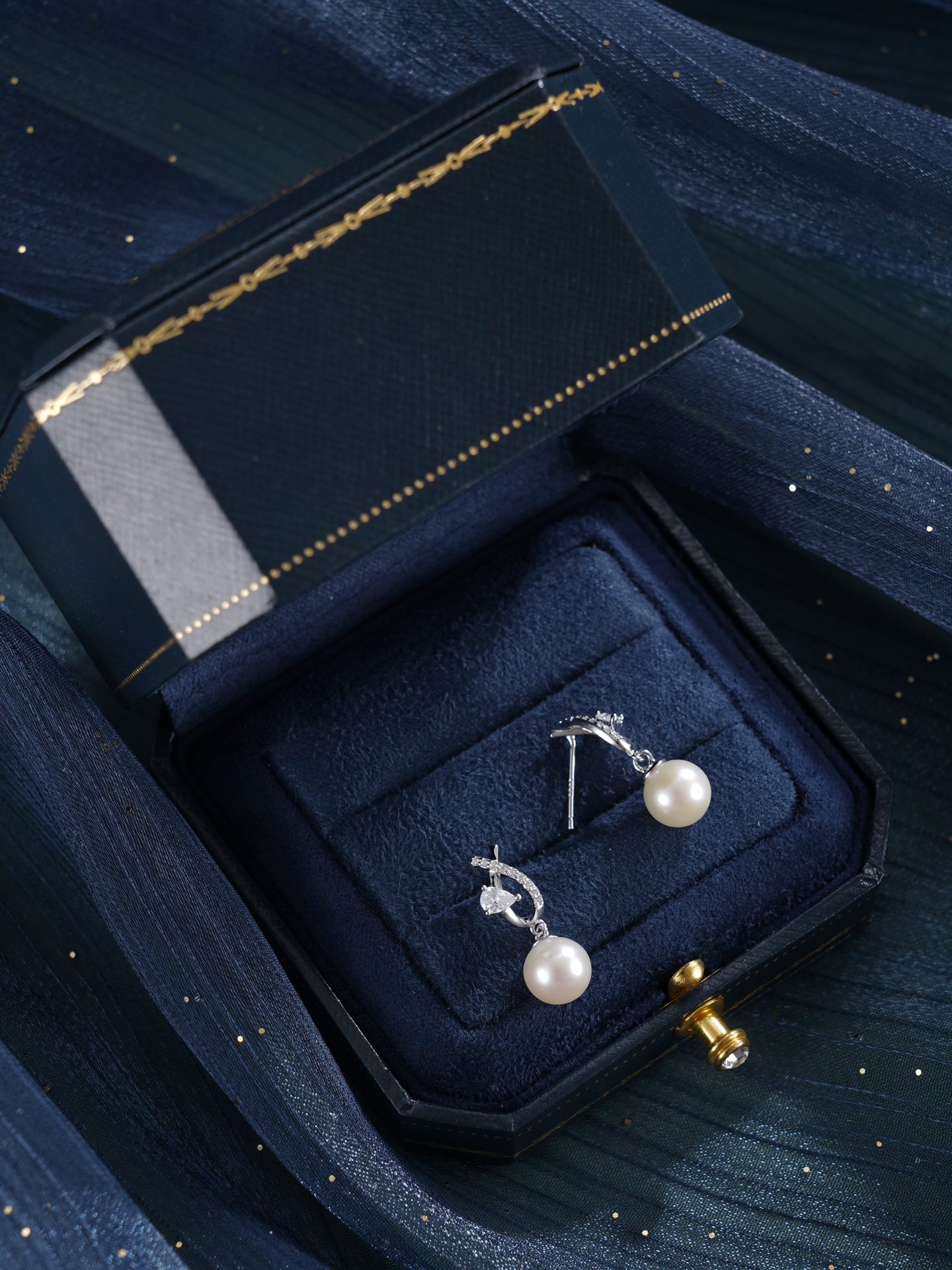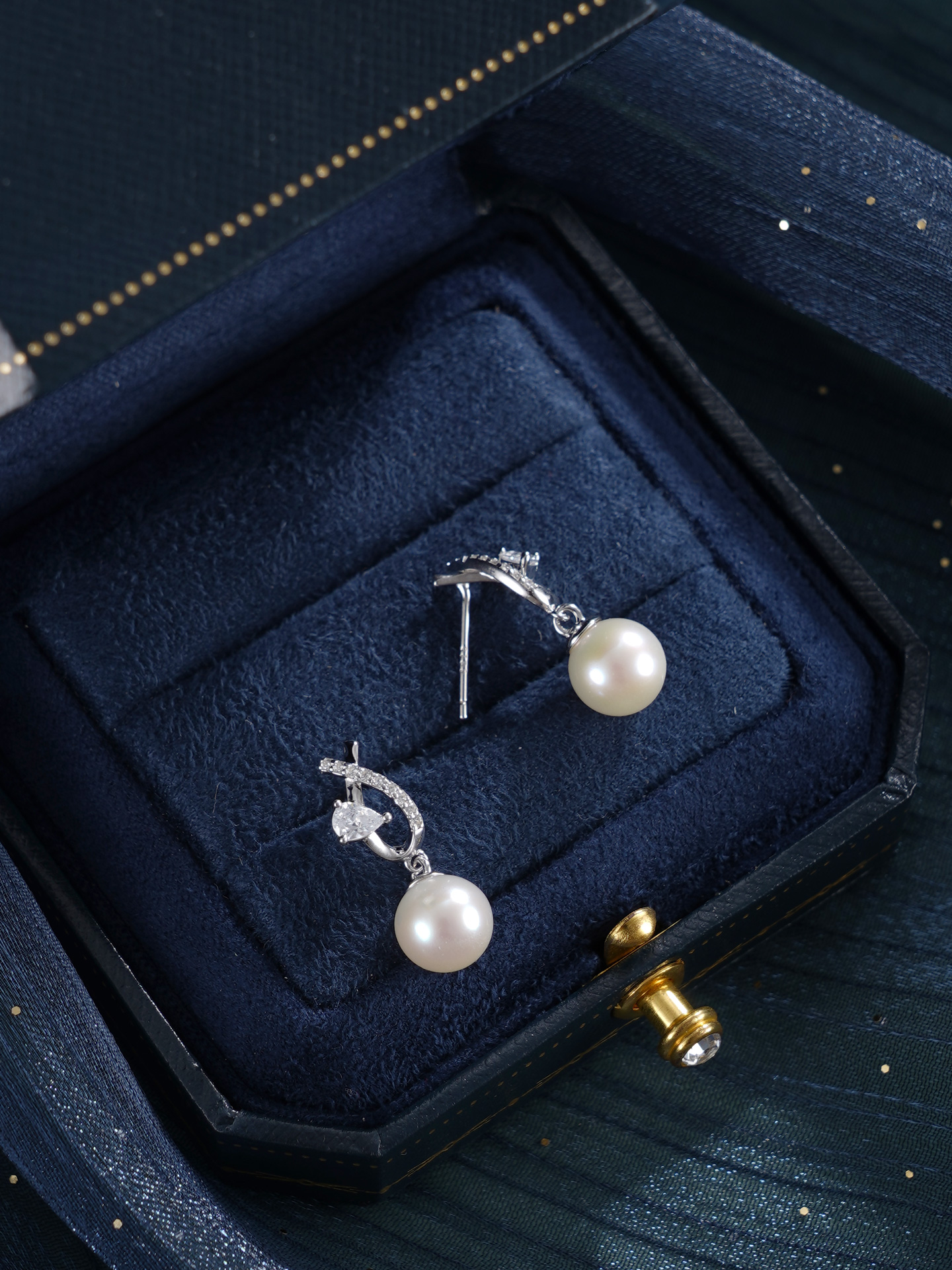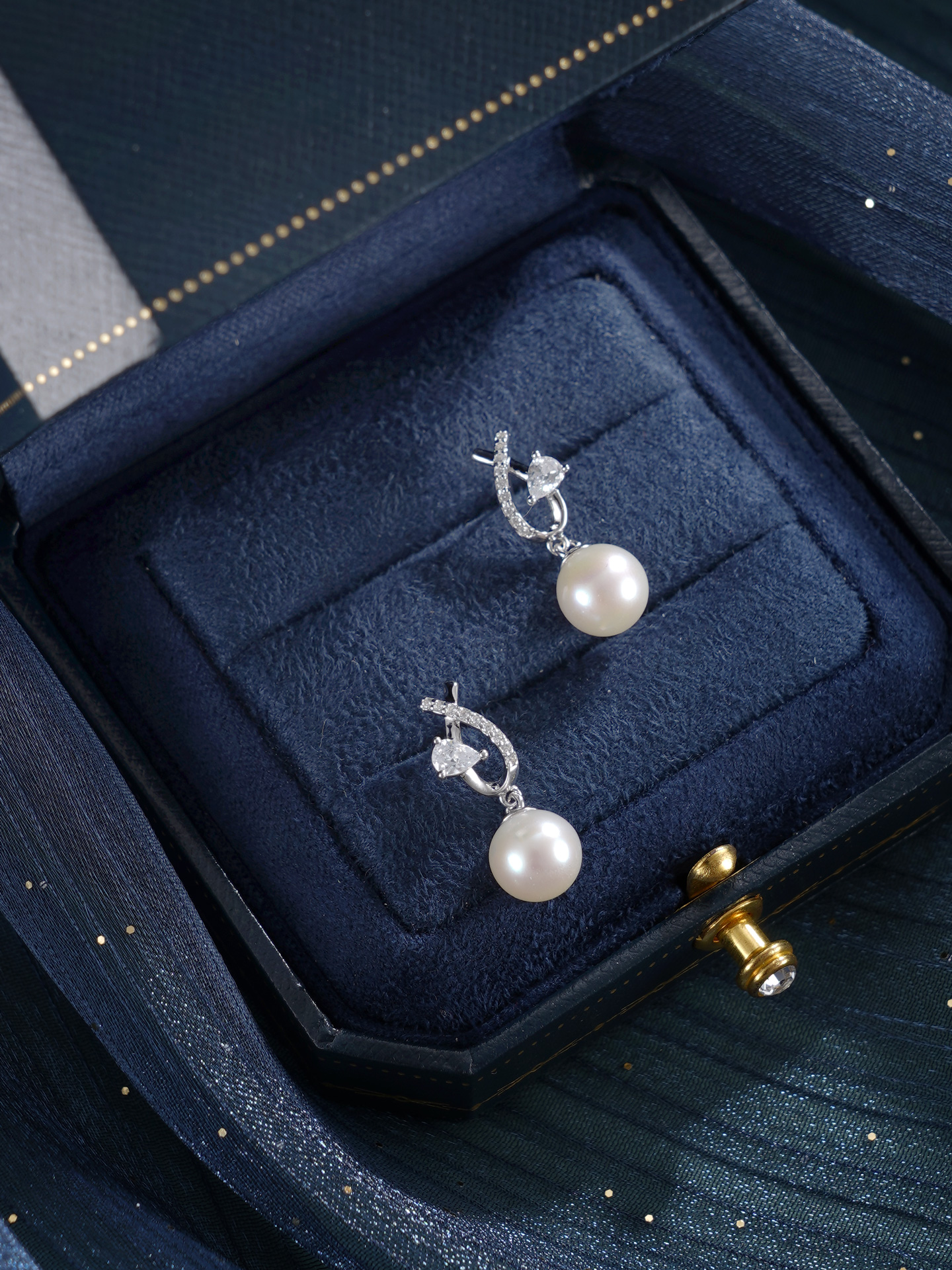 子佩集【灵犀共鸣】银S925珍珠惜王妃耳钉【YE0829A】8mm珠双色交织丝带2601