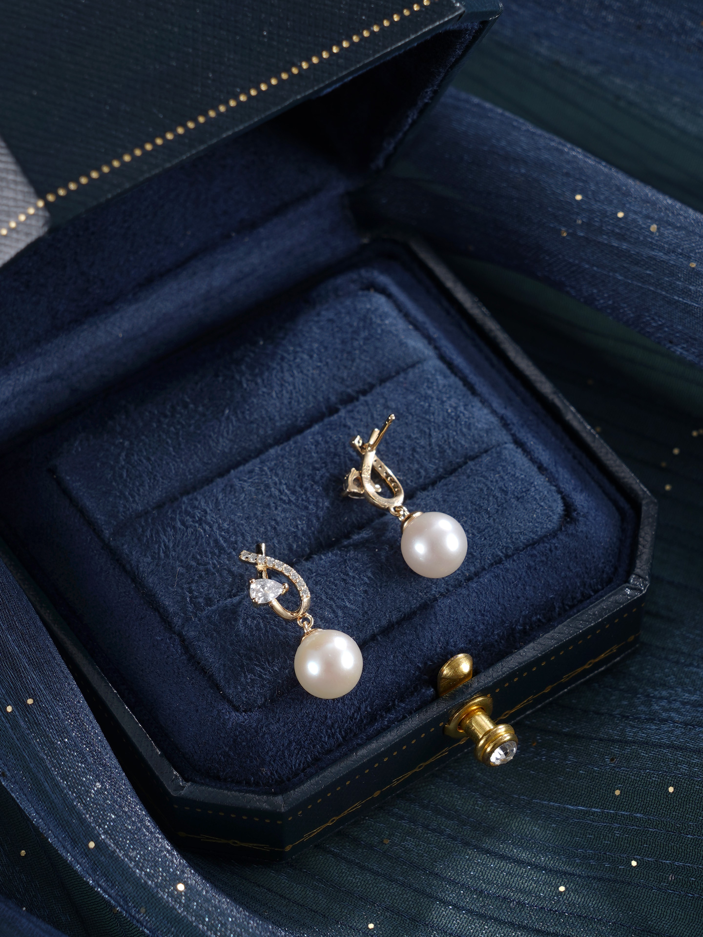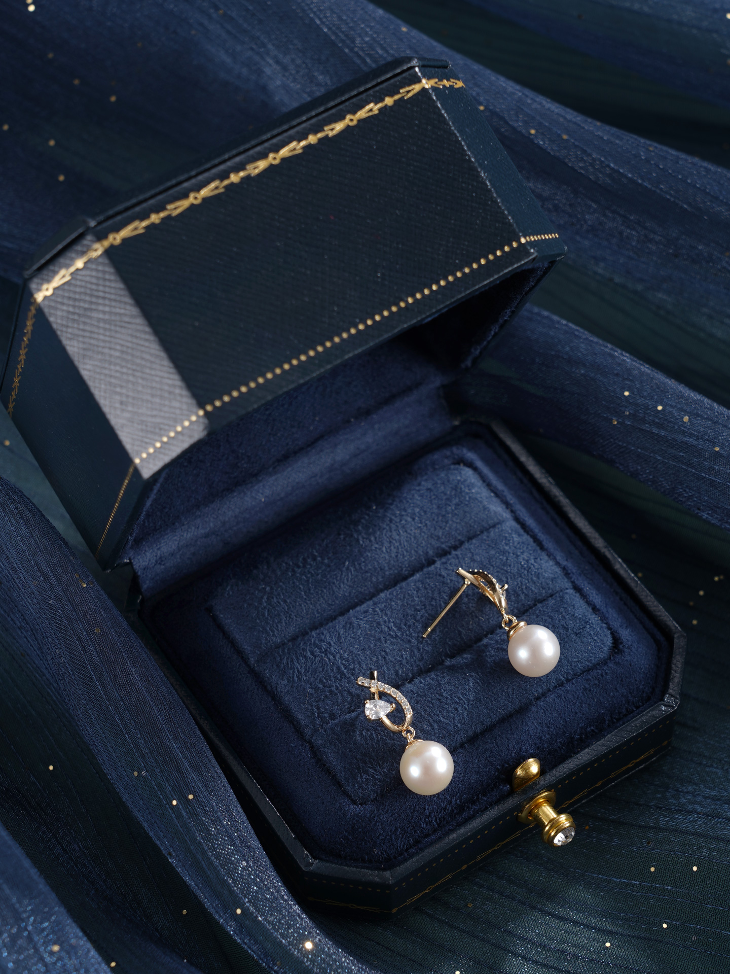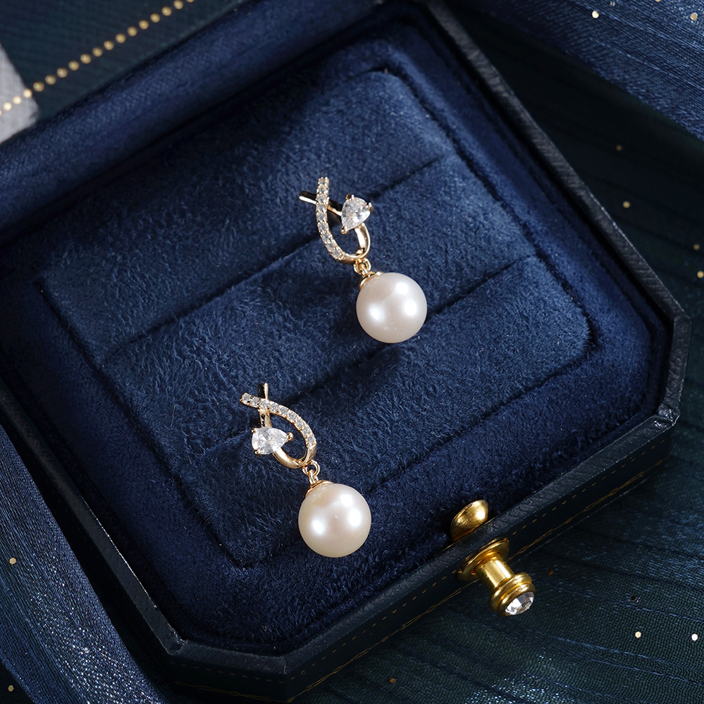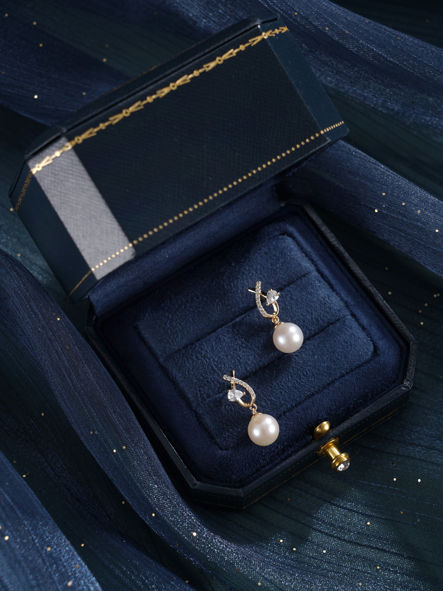 子佩集【灵犀共鸣】银S925珍珠惜王妃耳钉【YE0829A】8mm珠双色交织丝带2601