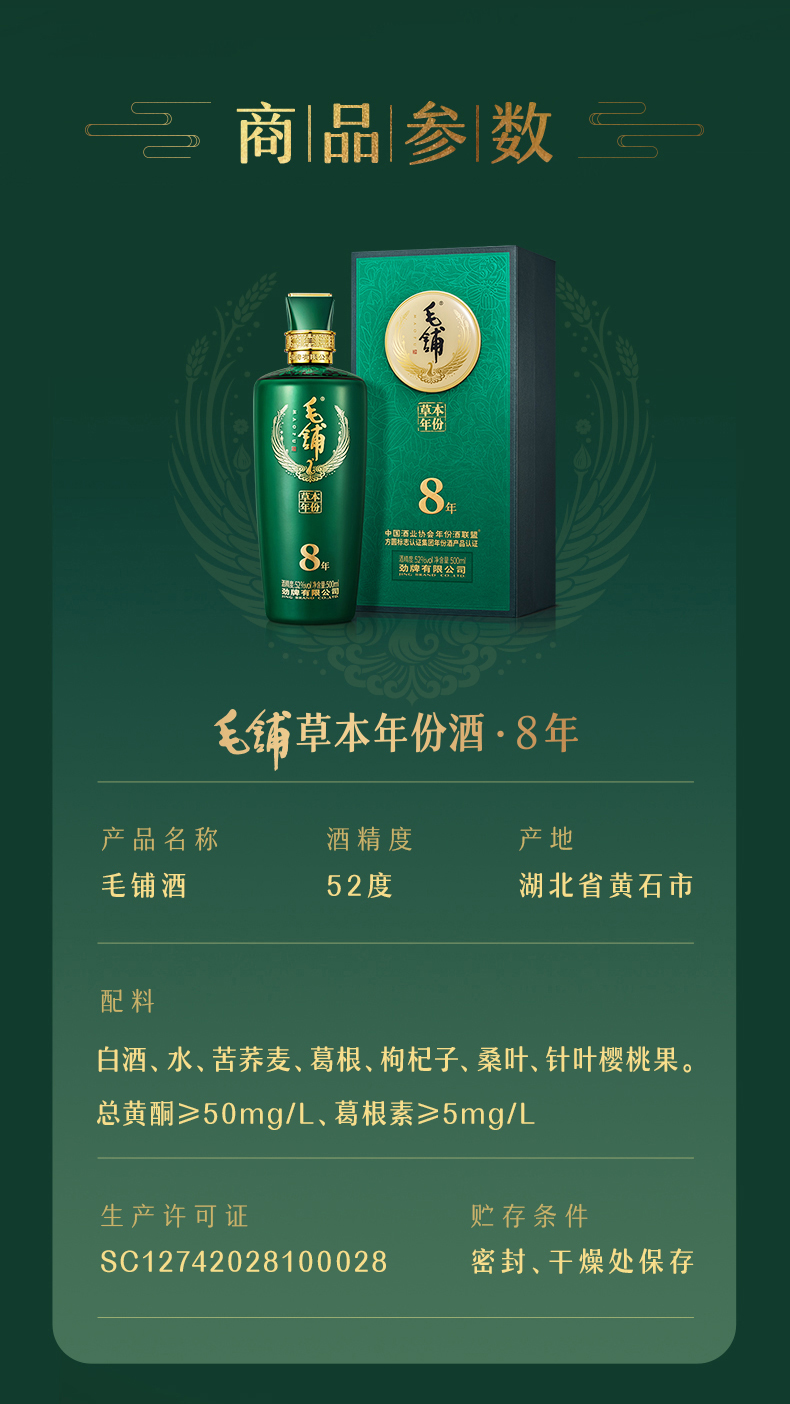 【高碳版】500mL52度毛铺草本年份酒8年