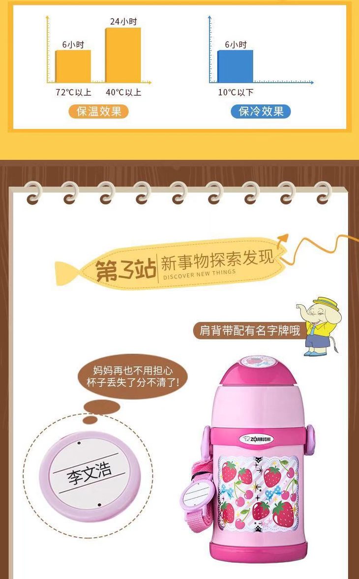 Zojirushi象印儿童可爱不锈钢保温杯直身杯饮水杯450ml日本