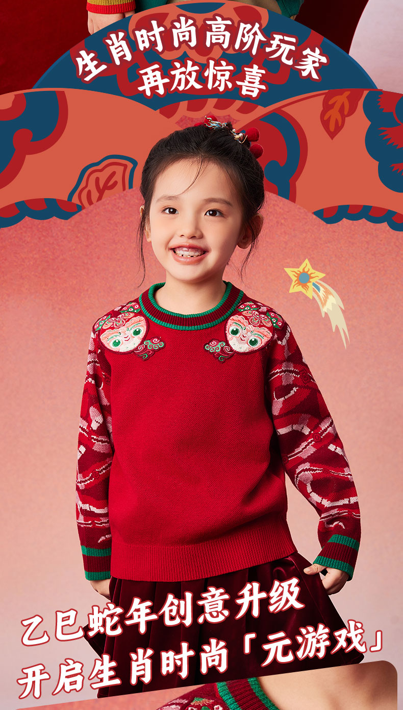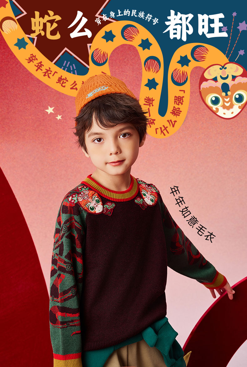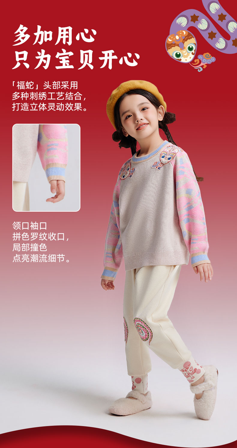 年衣2025年【蛇么都旺】童装儿童毛衣针织衫冬装打底衫男女童生肖拜年服本命年羊毛衫(送帽子)N4244451A07