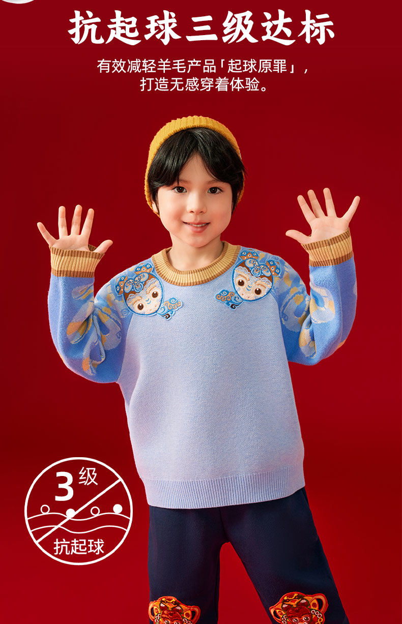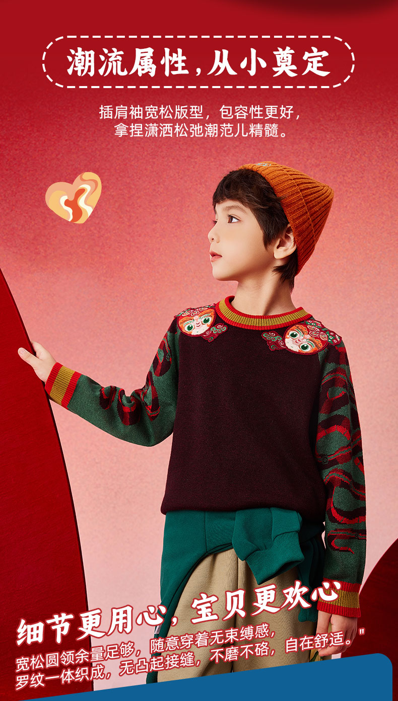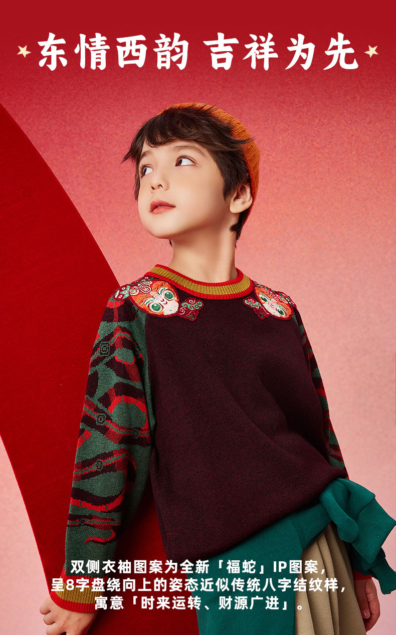 年衣2025年【蛇么都旺】童装儿童毛衣针织衫冬装打底衫男女童生肖拜年服本命年羊毛衫(送帽子)N4244451A07