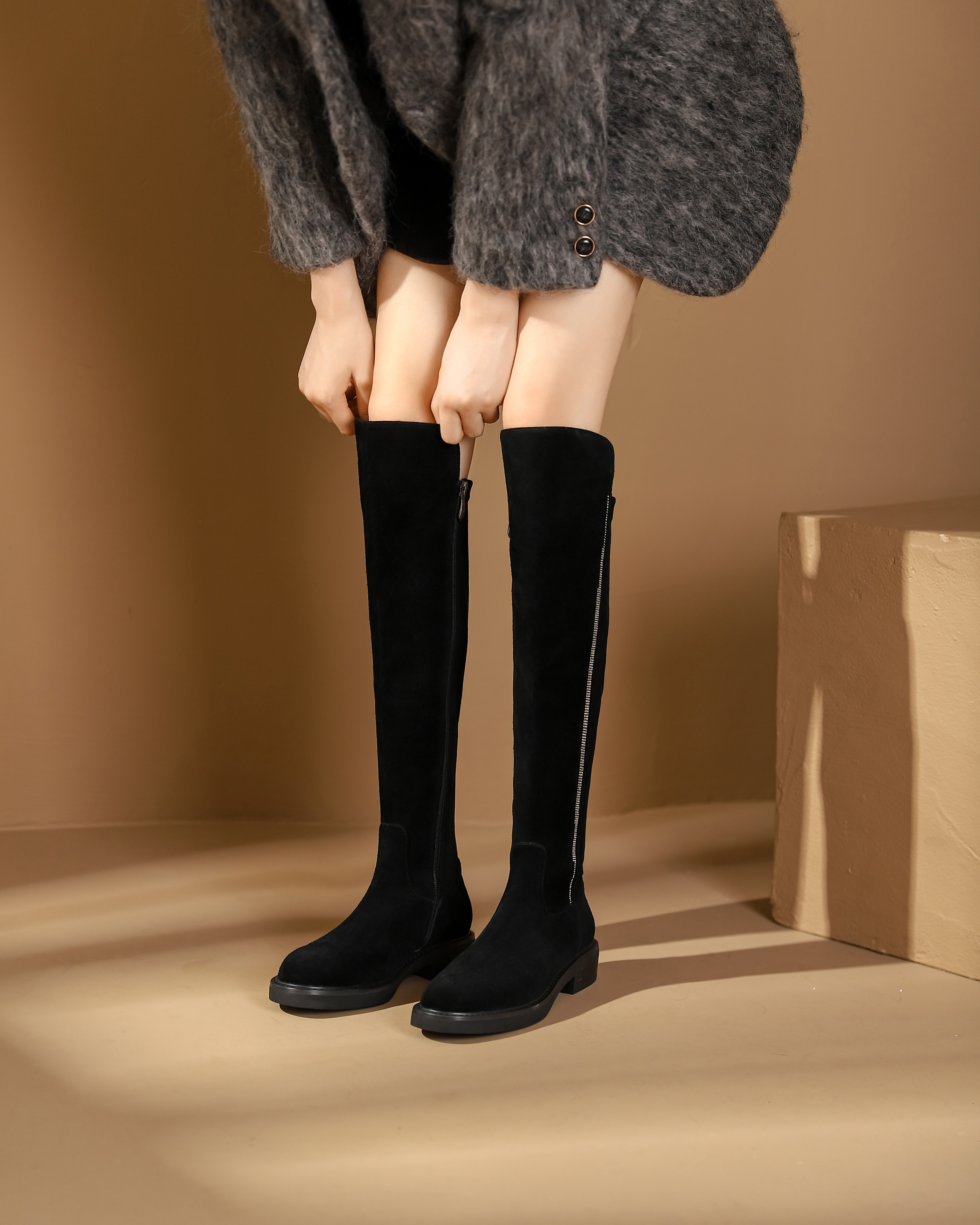 西村名物2023秋季新品圆头粗跟小腿靴法式长靴女X23DI4539101B
