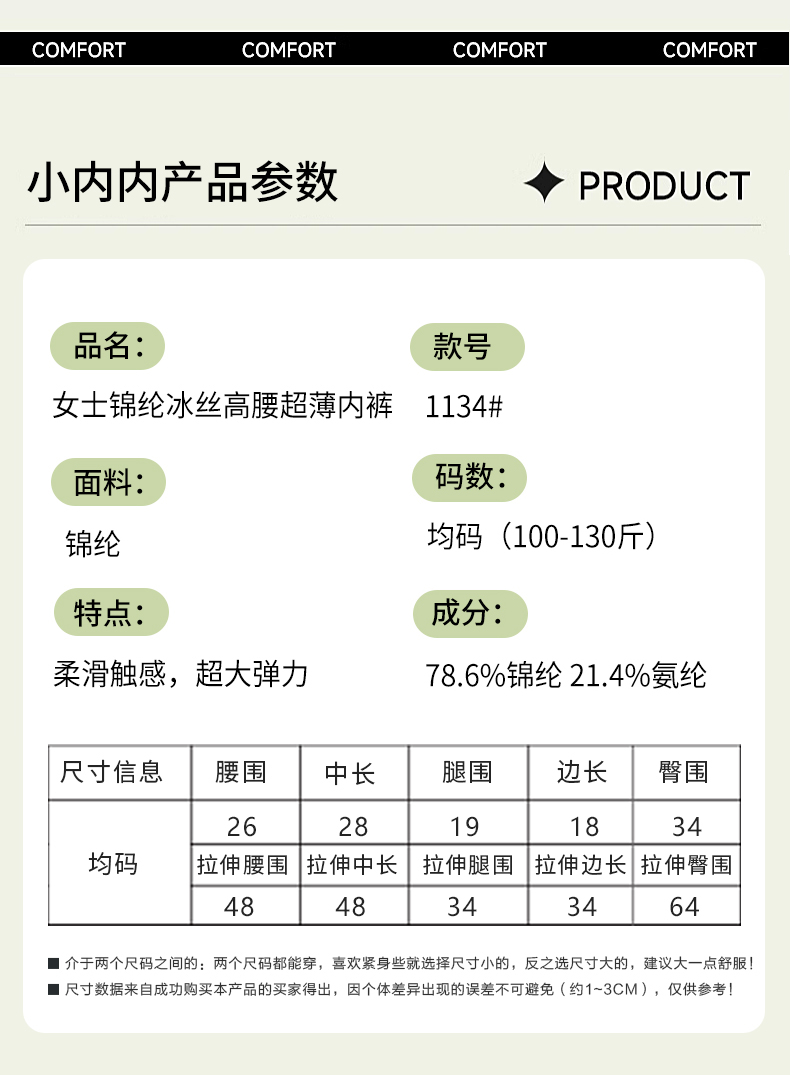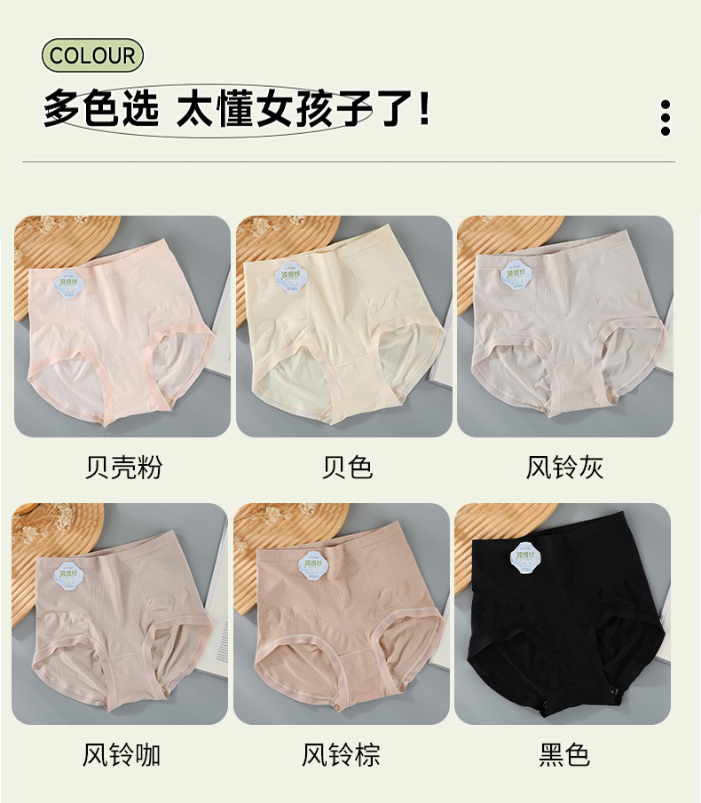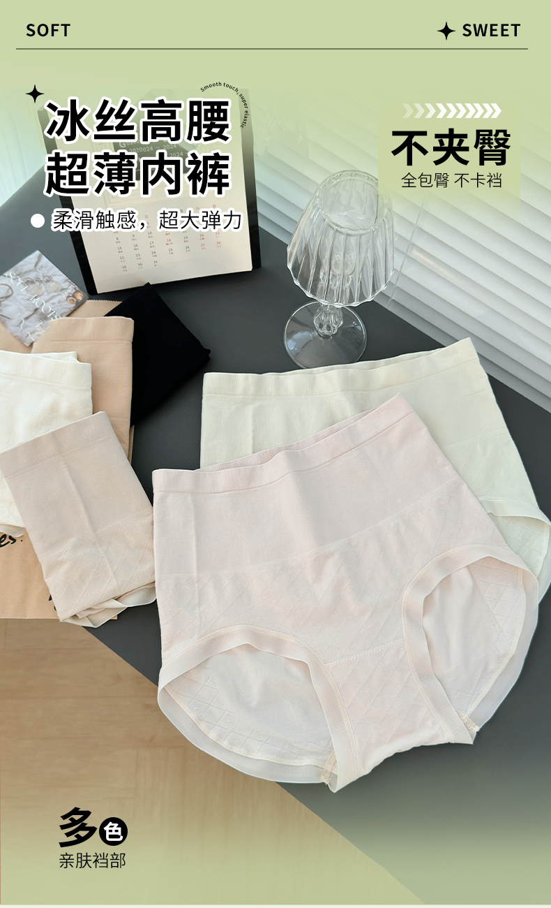 女士冰丝裸氨超薄提臀高腰收腹提花无缝内裤2083/1134/1132