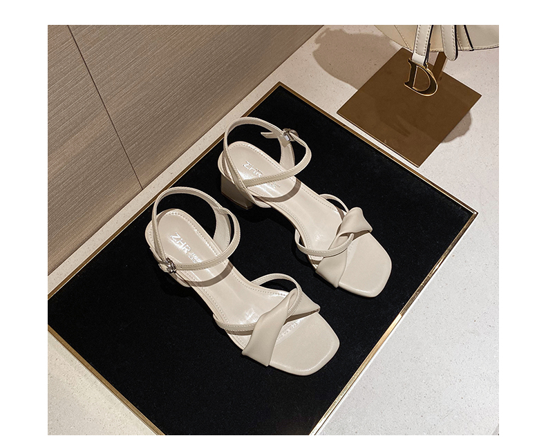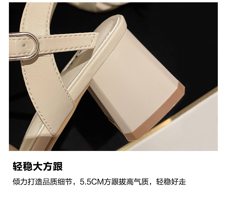 【ZHR】2022年夏季新款时装粗跟凉鞋女士一字带外穿中跟黑色高跟鞋子