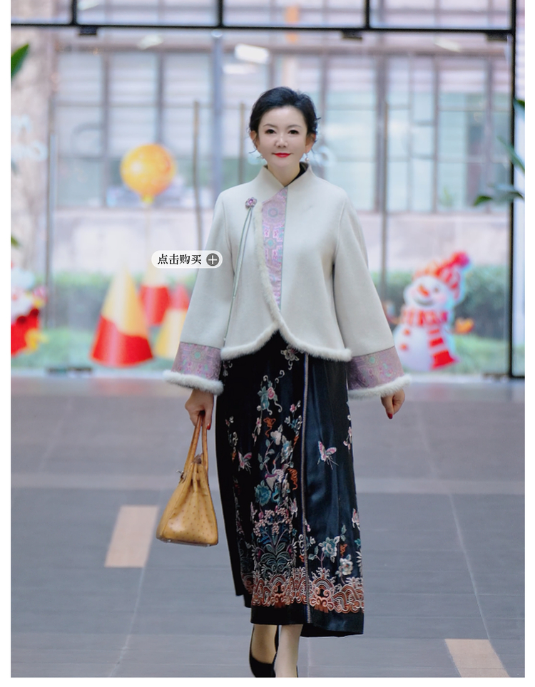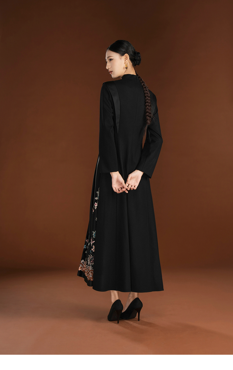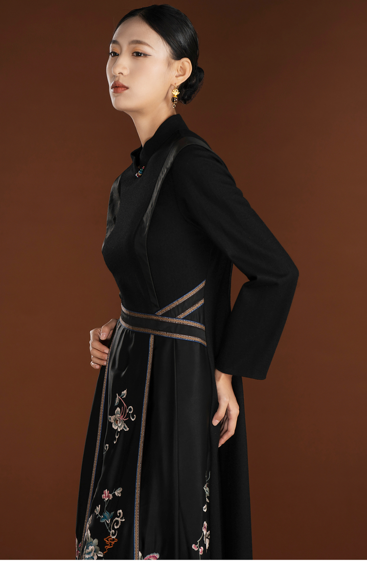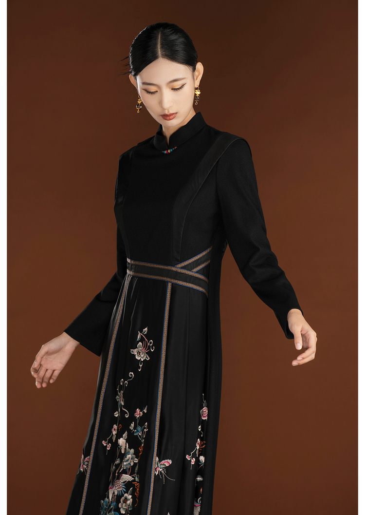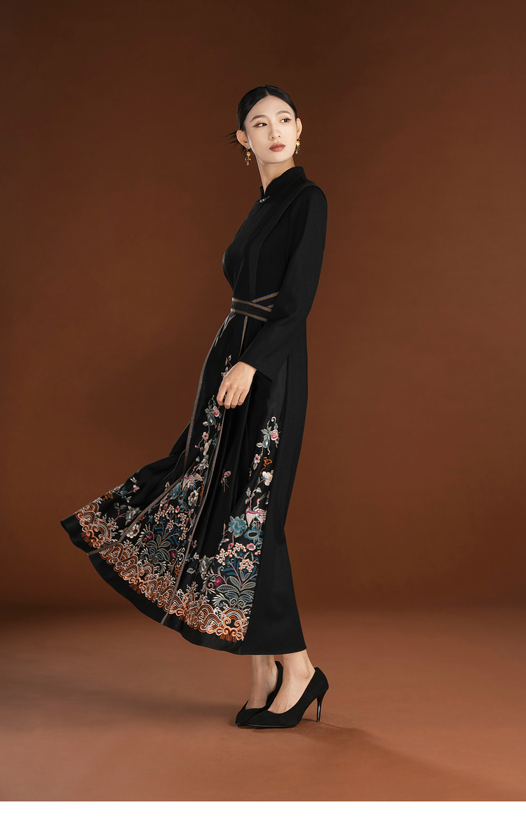 吉祥衣家2025春夏新款长袖绣花新中式国风芳菲其弥章修身连衣裙