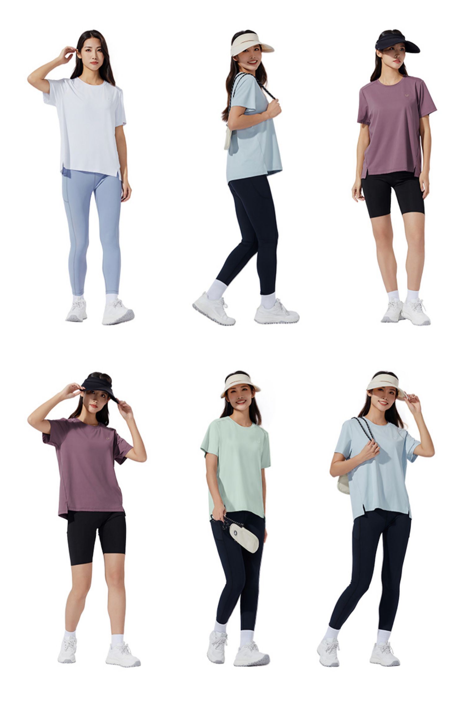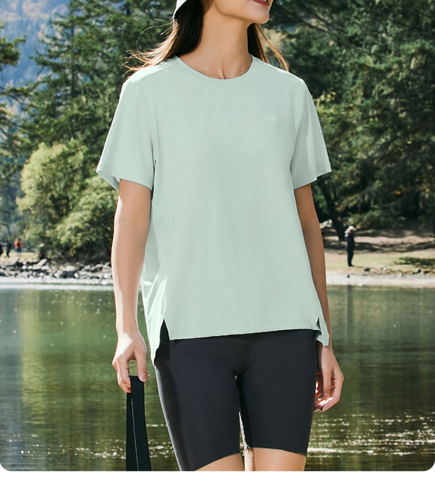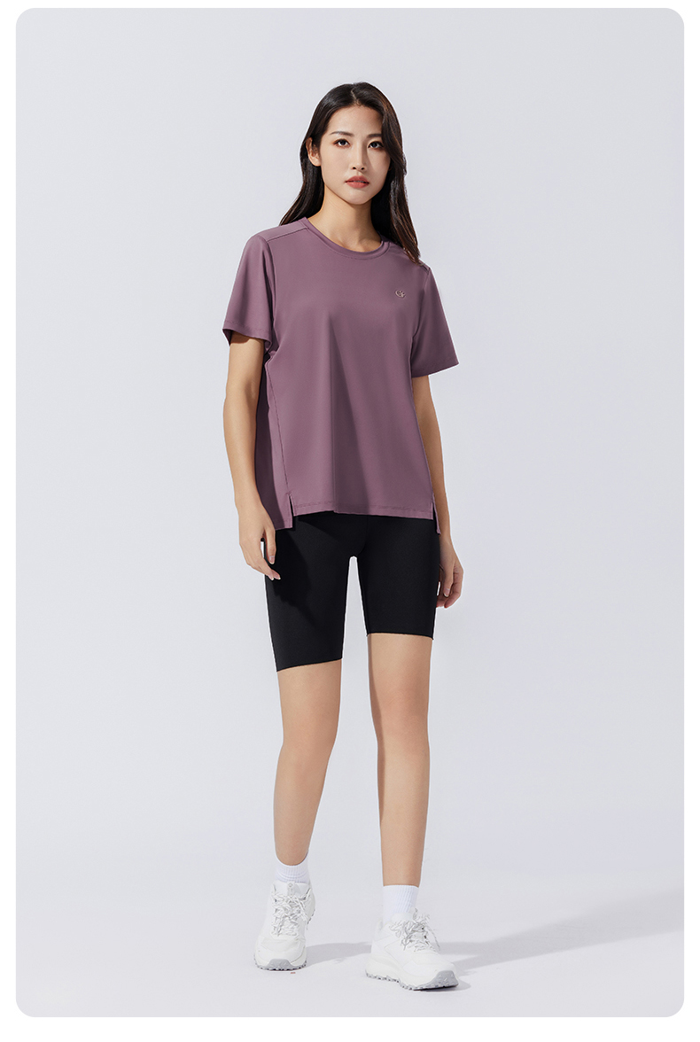 探拓户外女士运动短袖速干上衣夏圆领T恤时尚休闲跑步透气健身服