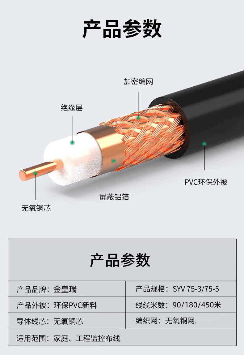 爆款★热销【 75-5监控视频线】SYV75-5模拟监控线75-3高清同轴视频线室外摄像头连接线缆纯铜芯铜网