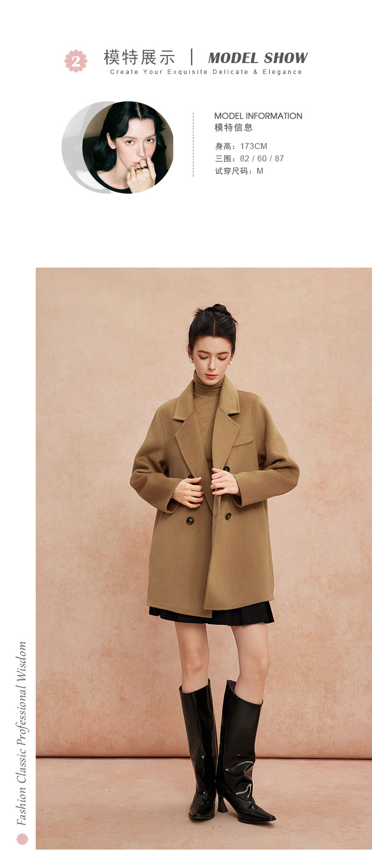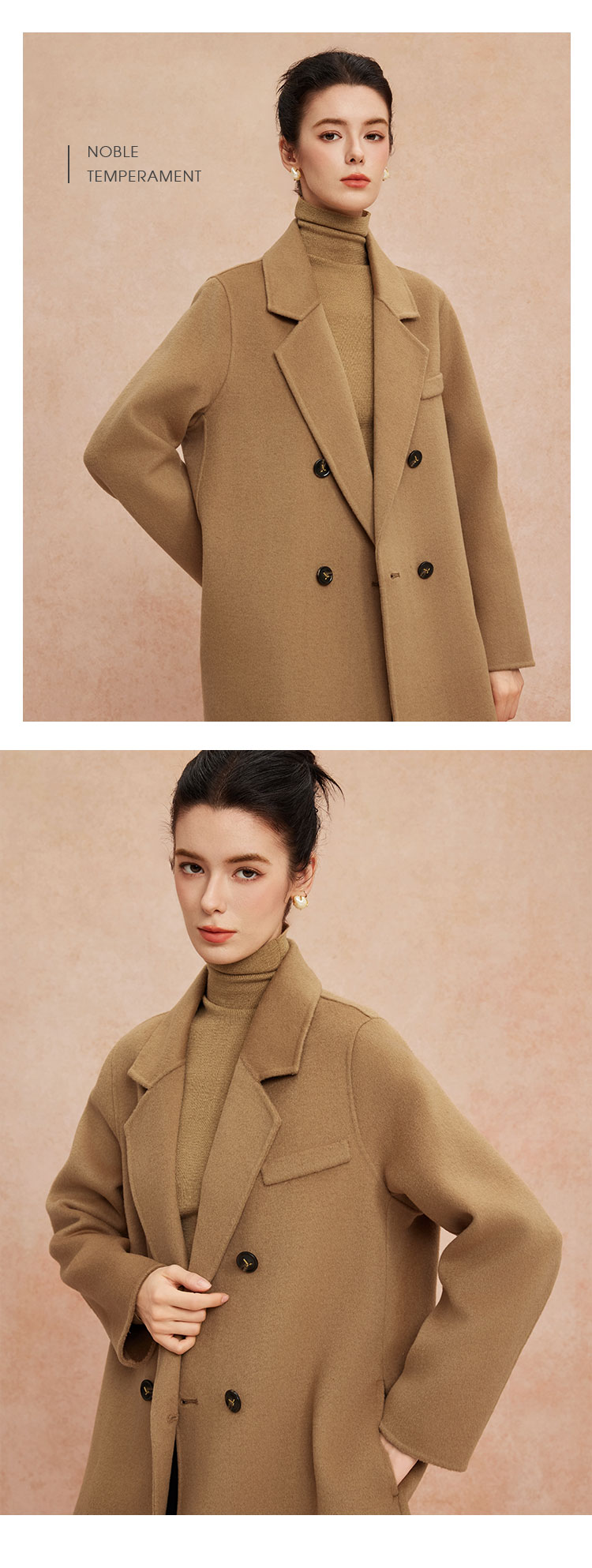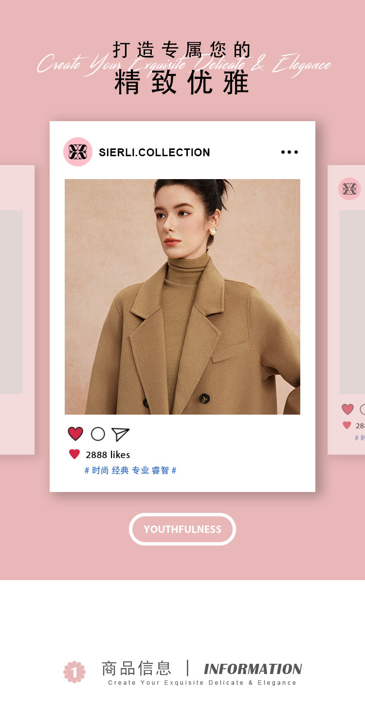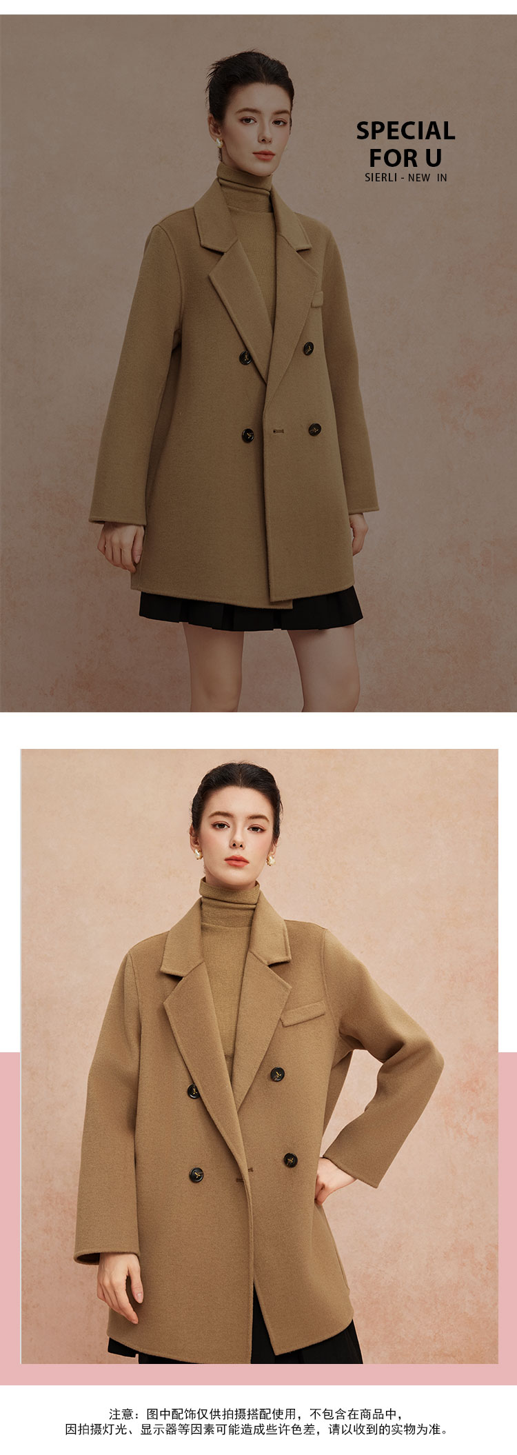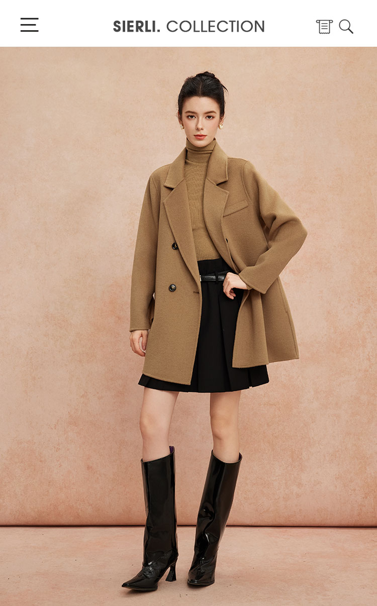QH948斯尔丽25新款一手长小个子直身简约百搭通勤双面呢羊毛短大衣