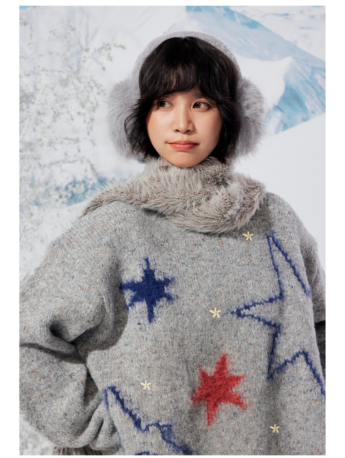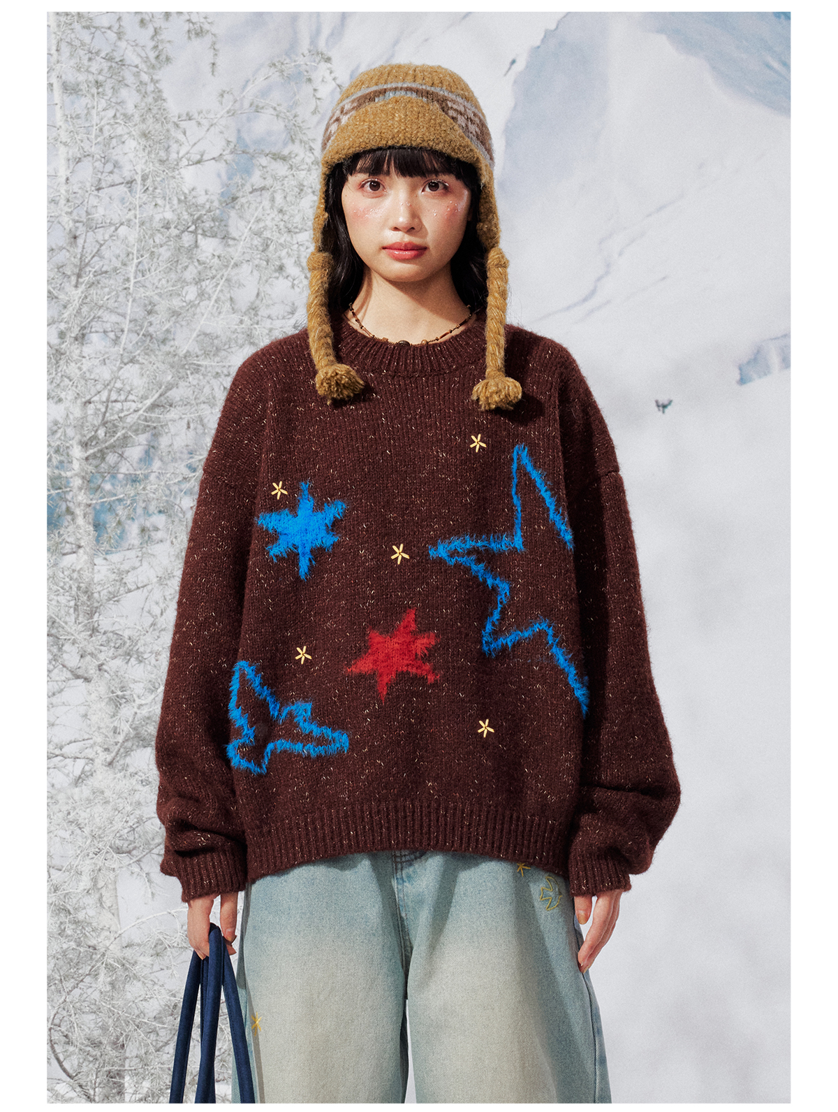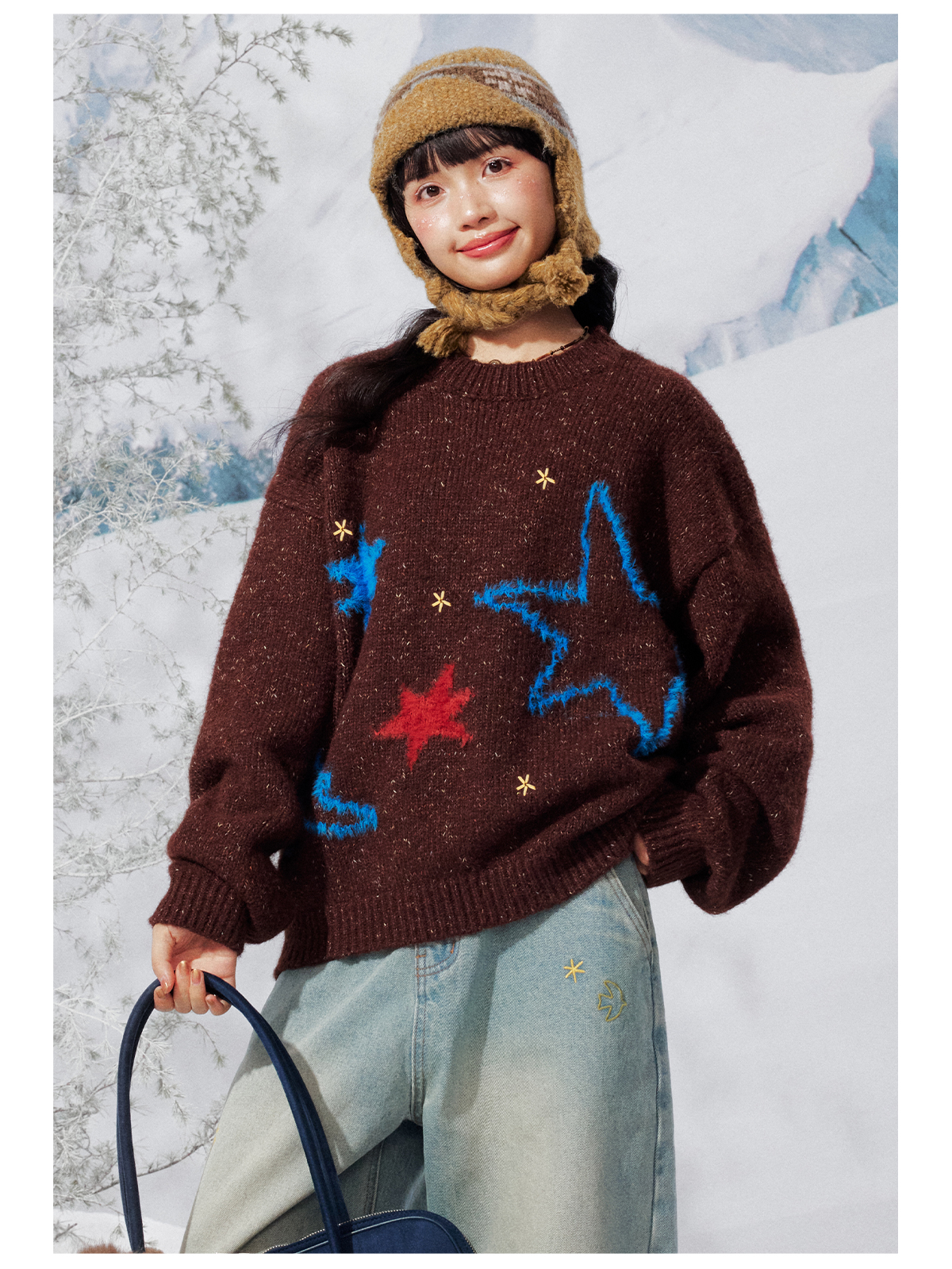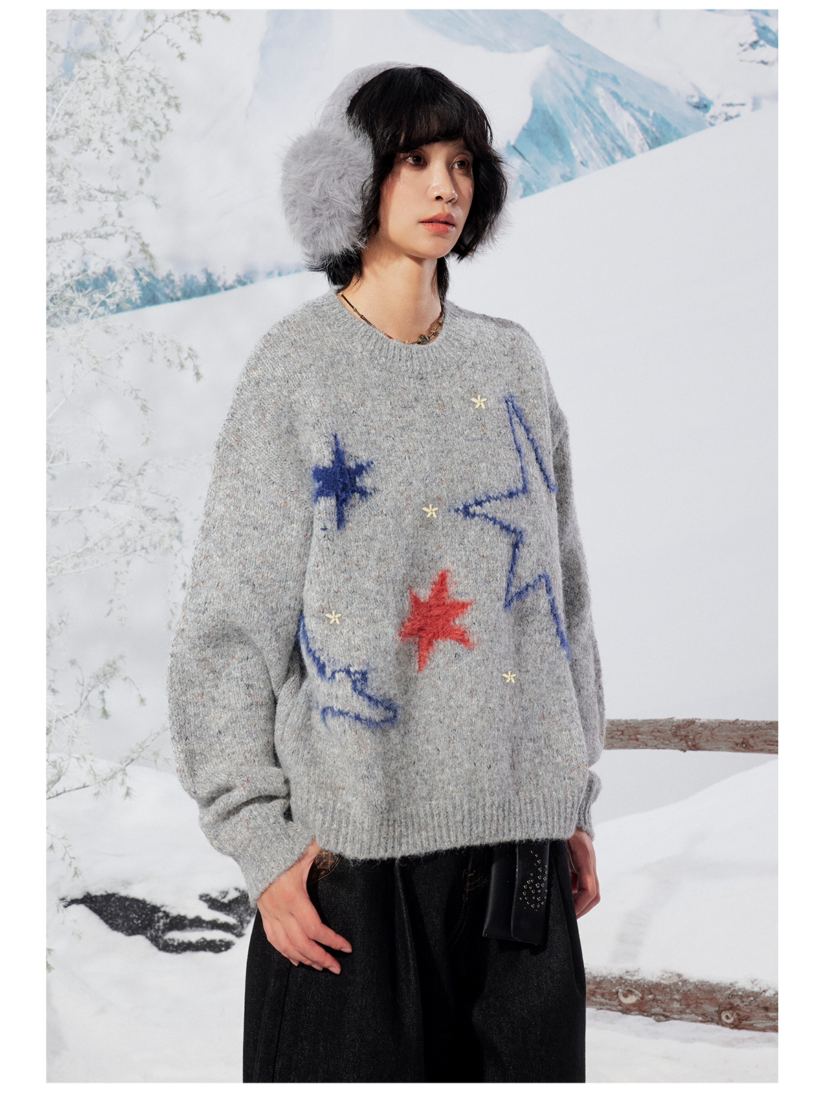 早乙女惠子saotome/STMMY141453/飞鸟星星毛绒圆领毛衣