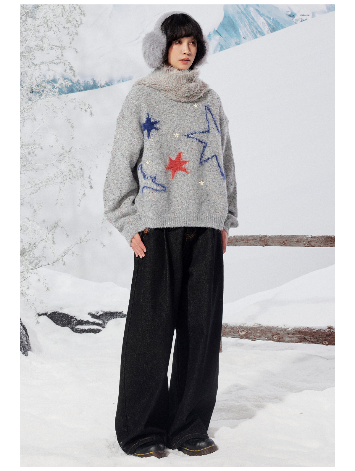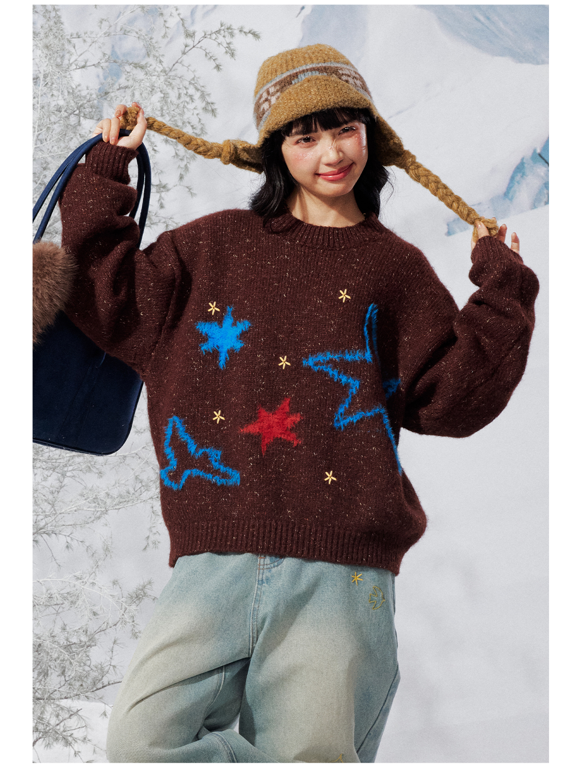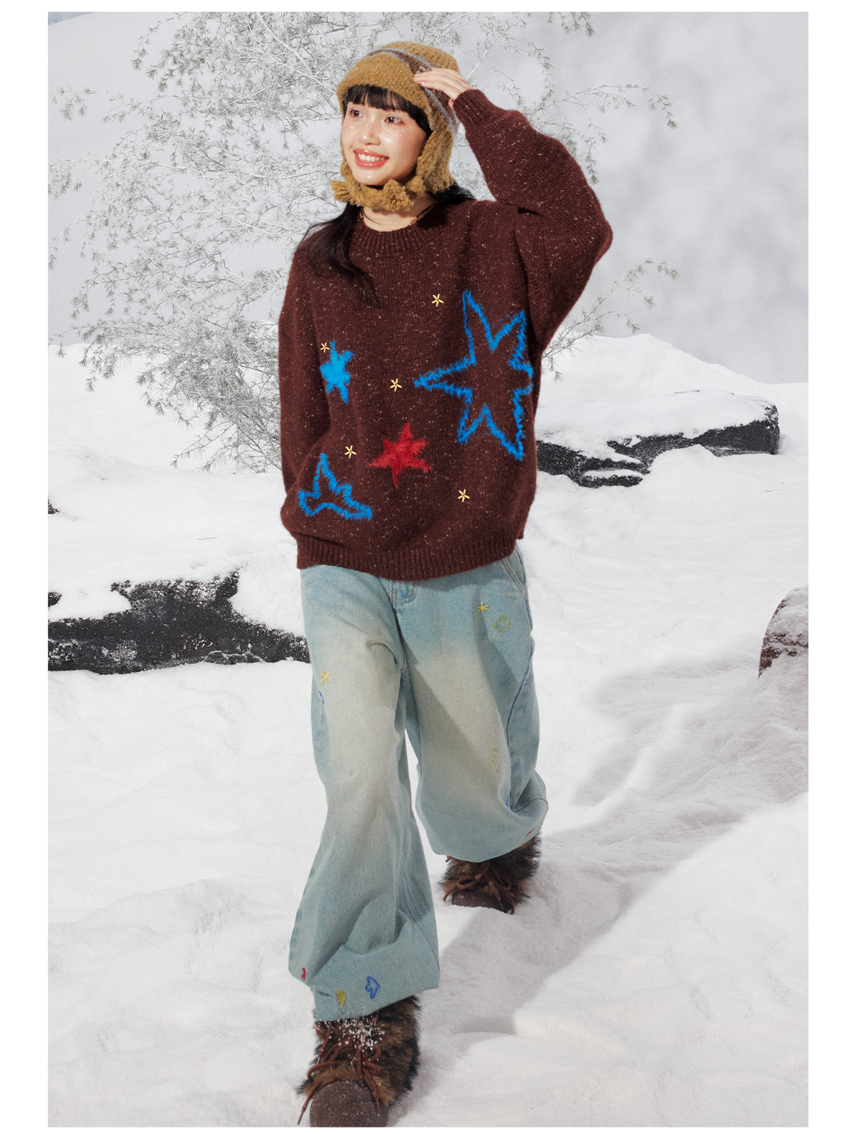 早乙女惠子saotome/STMMY141453/飞鸟星星毛绒圆领毛衣