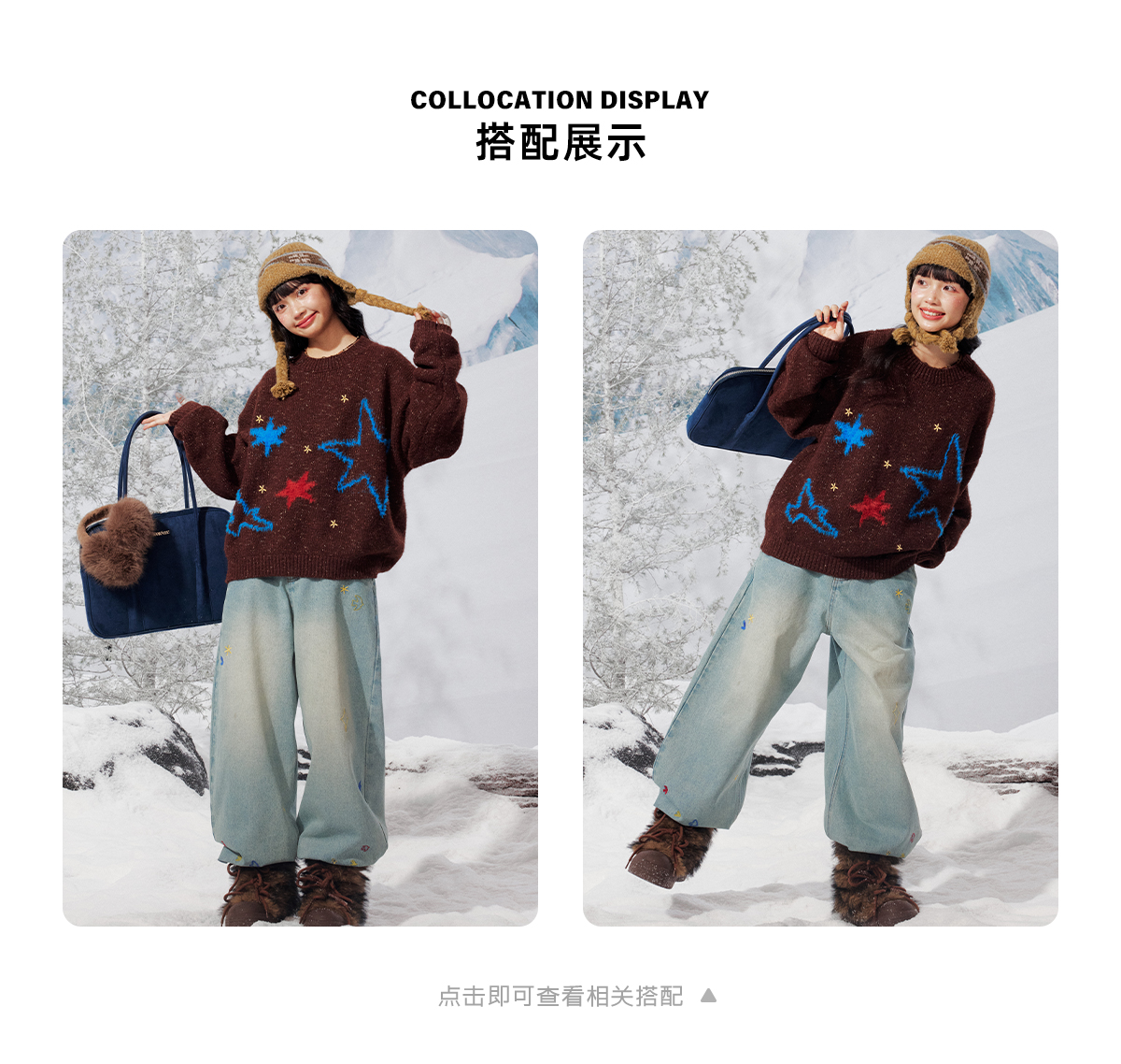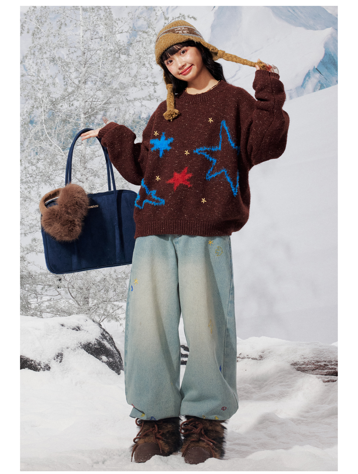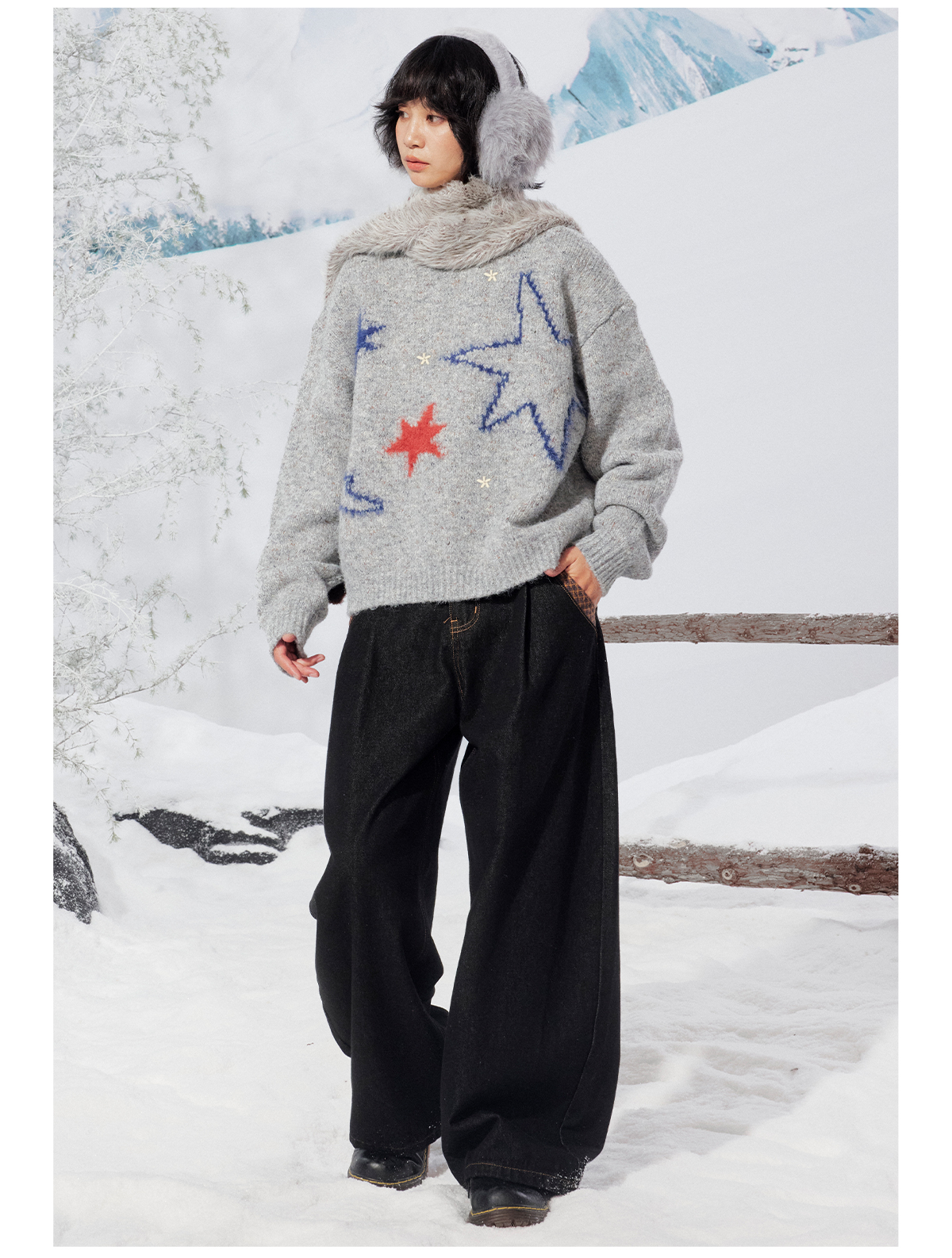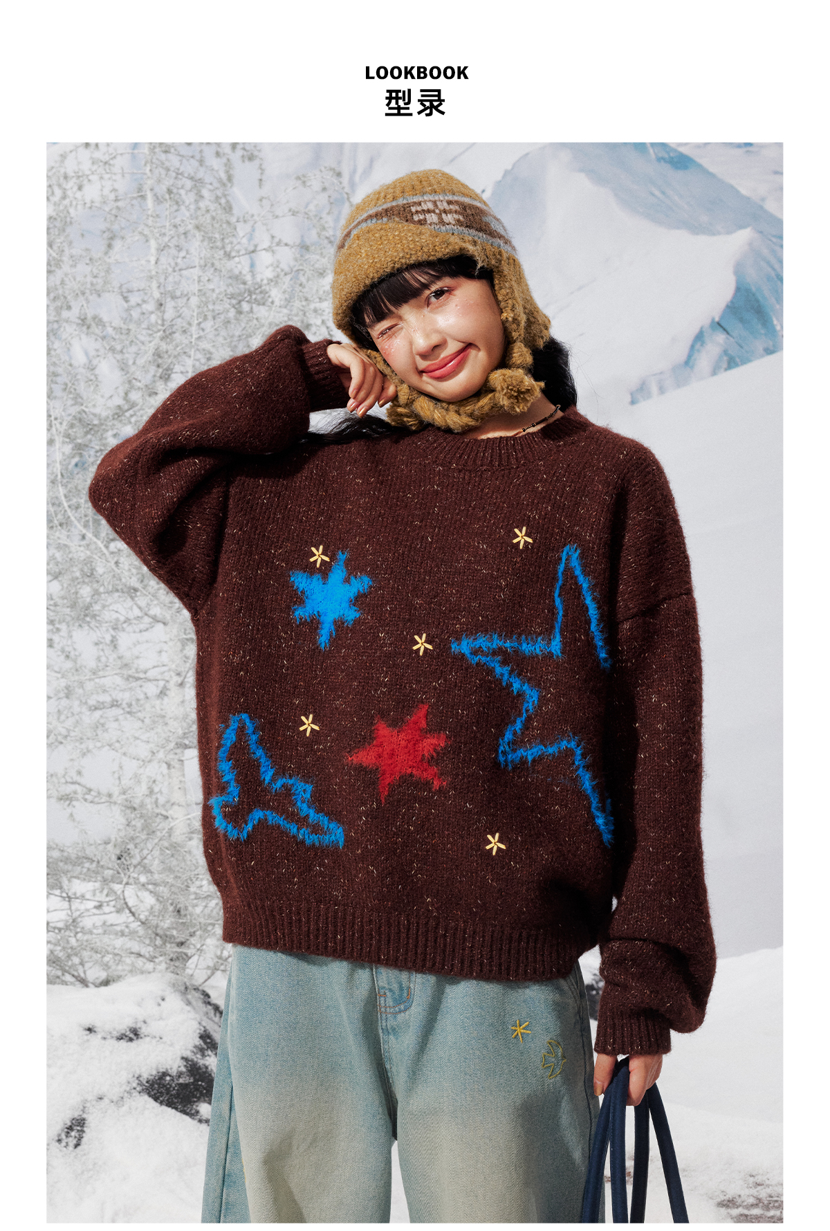 早乙女惠子saotome/STMMY141453/飞鸟星星毛绒圆领毛衣