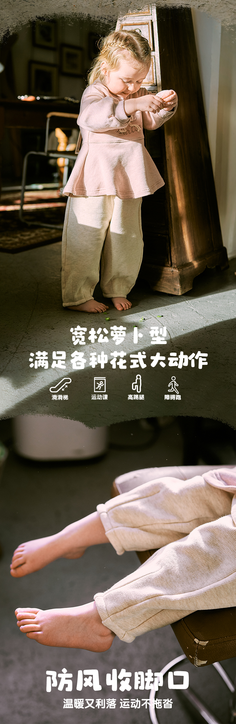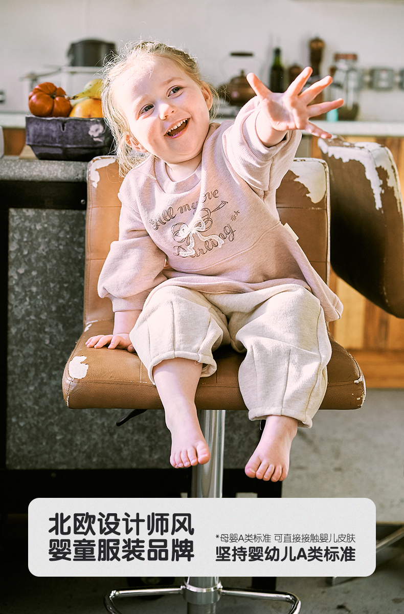 【云优选】lelejove北欧风25春季儿童纯棉卫裤男女宝春秋休闲长裤直筒收脚裤