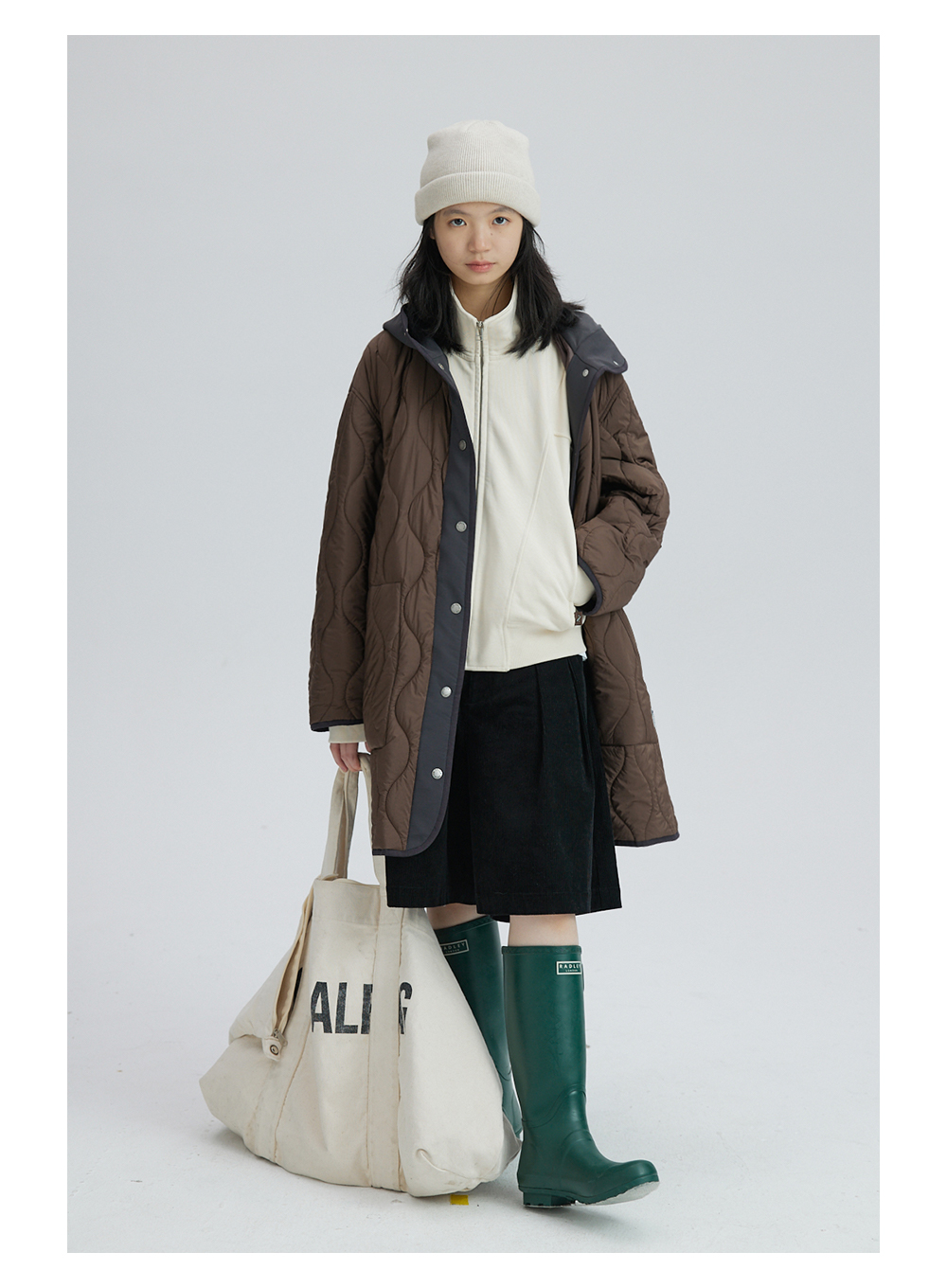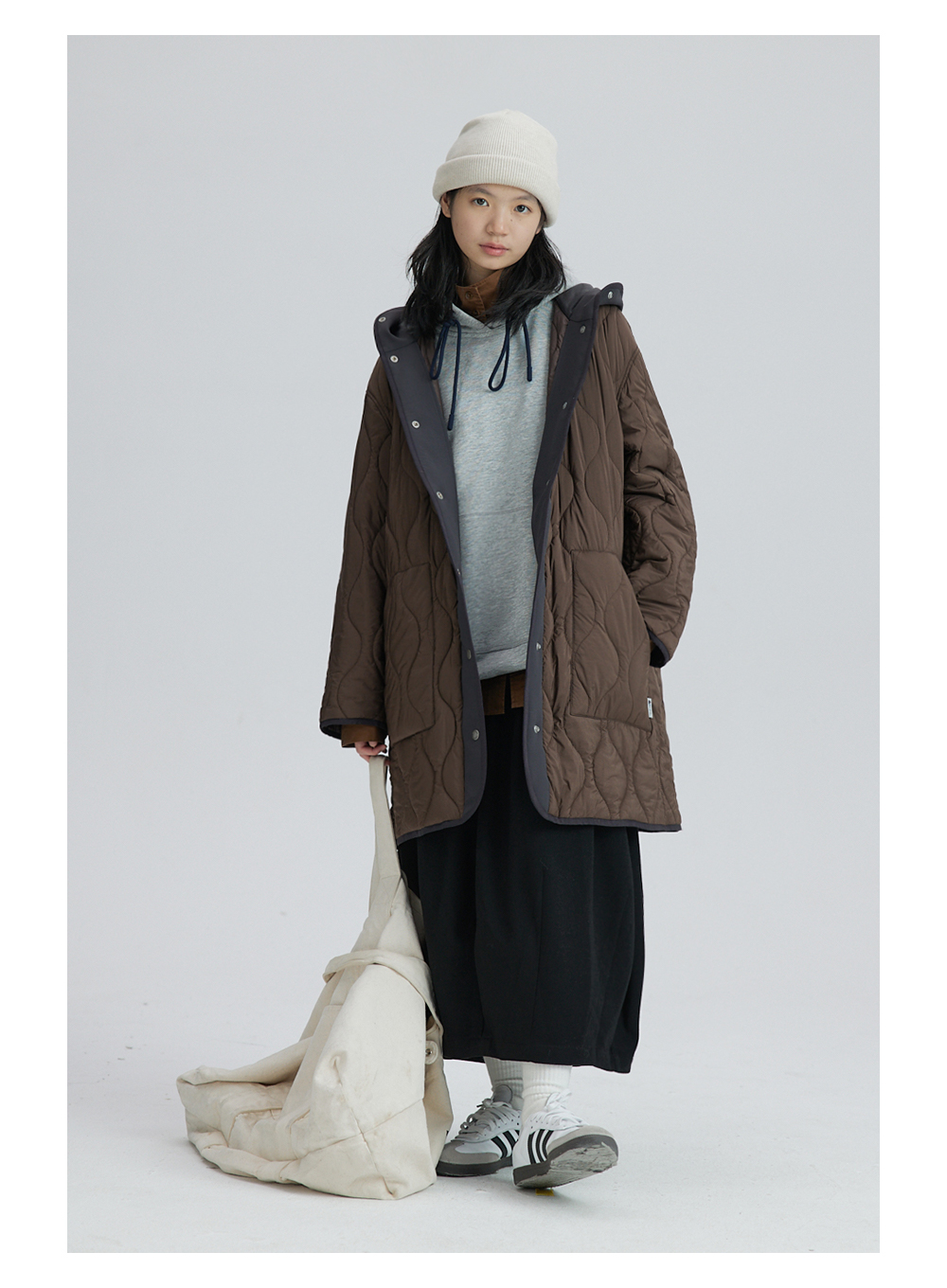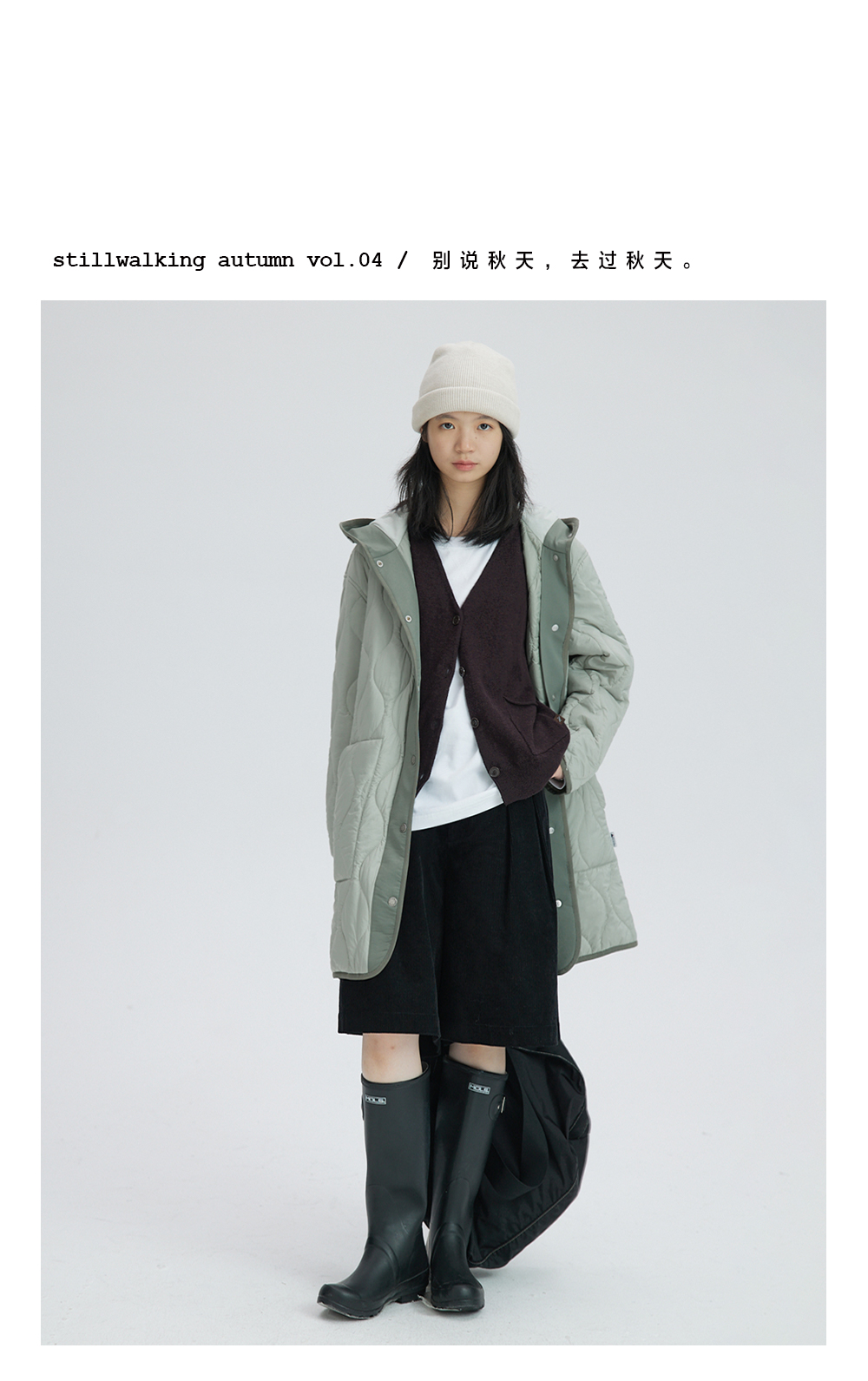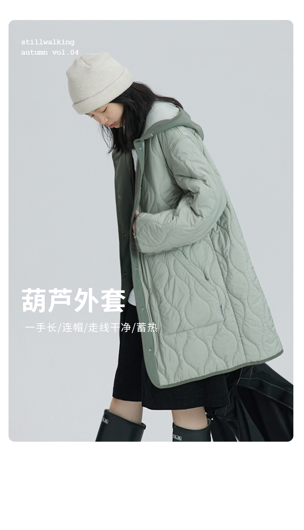 步履不停/3C25014C/一手长连帽葫芦格绗棉外套
