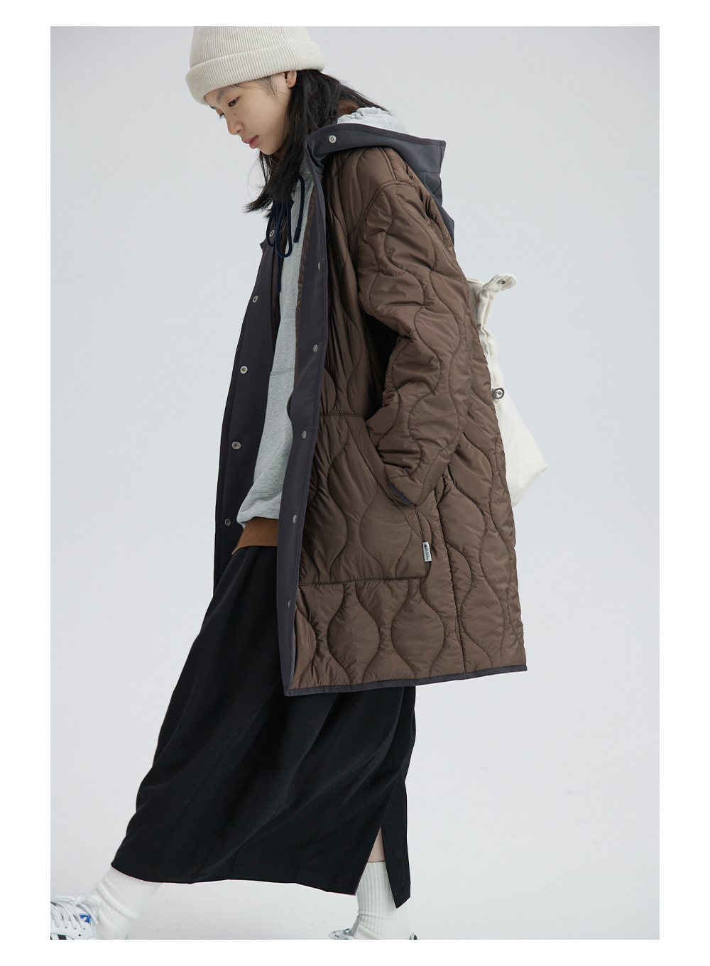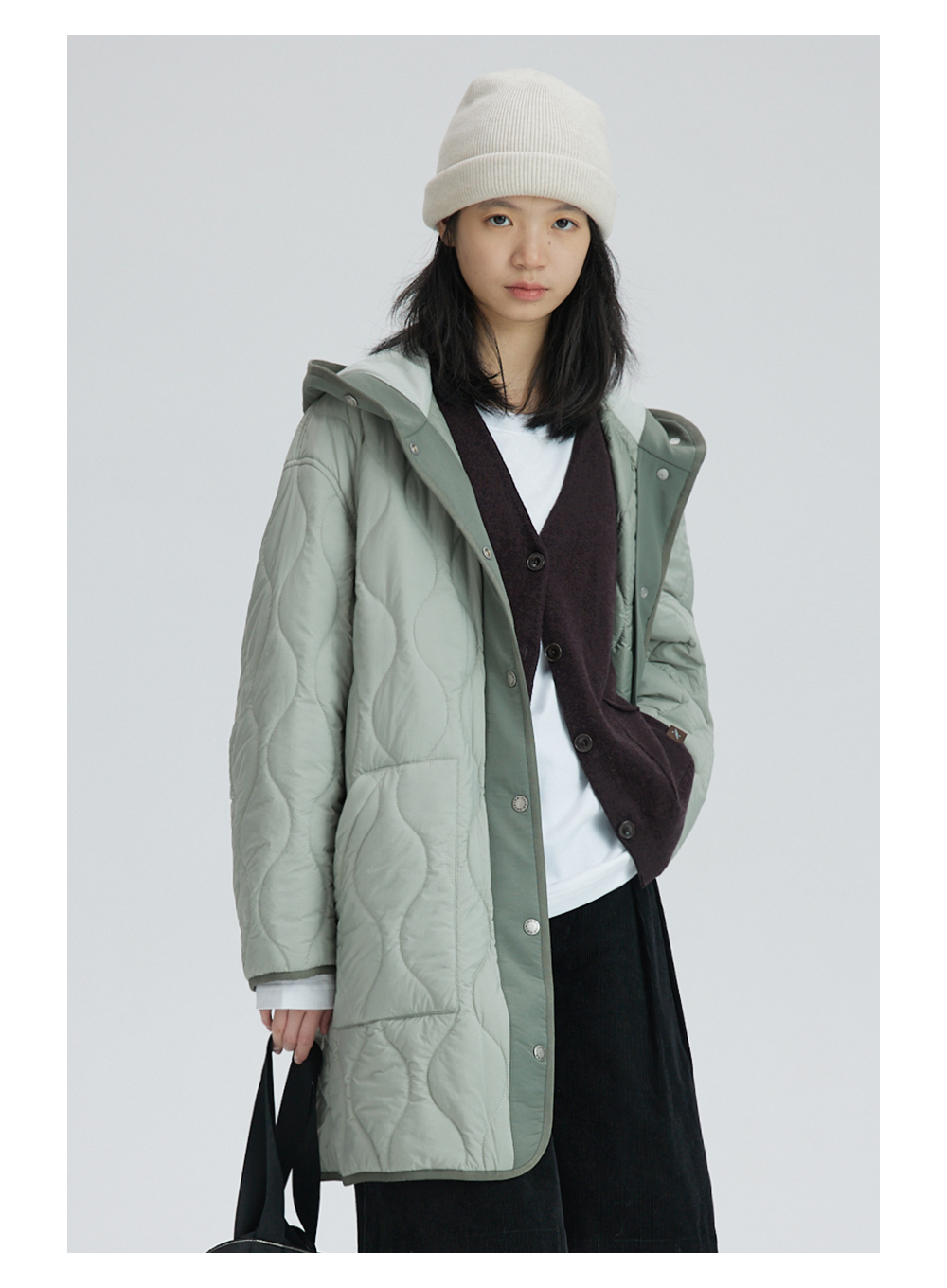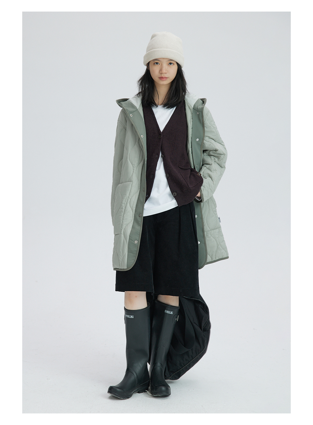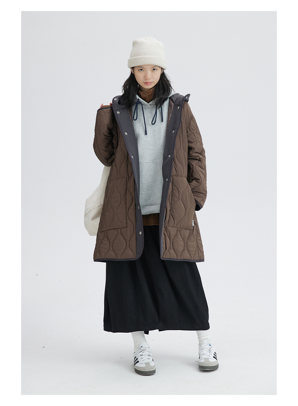 步履不停/3C25014C/一手长连帽葫芦格绗棉外套