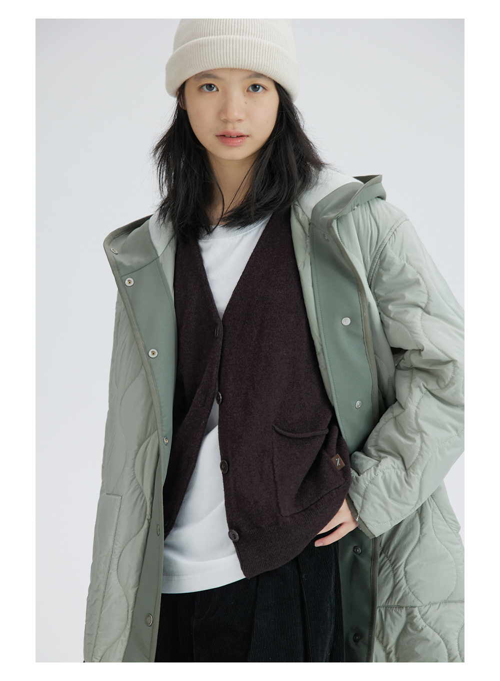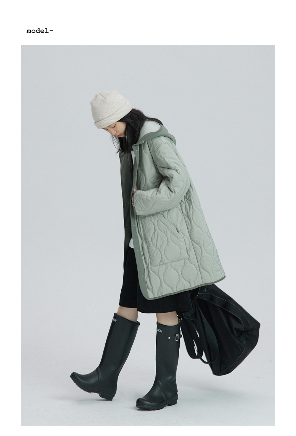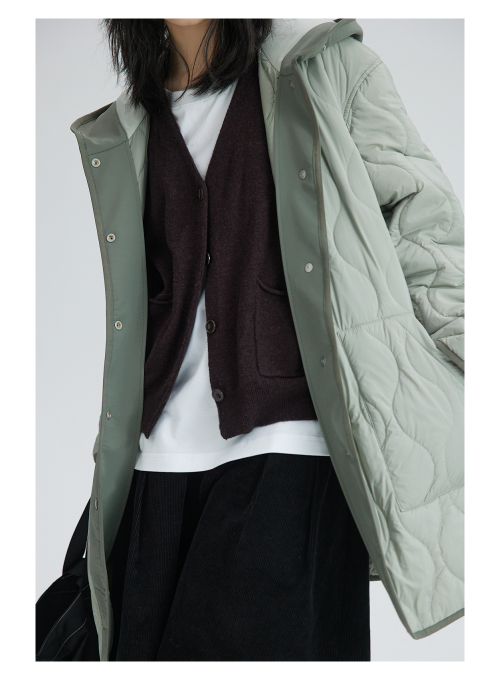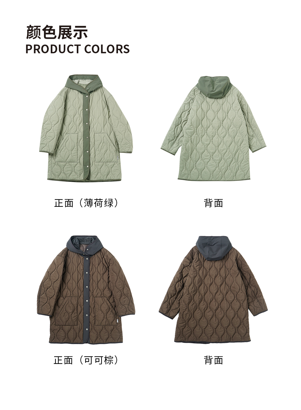 步履不停/3C25014C/一手长连帽葫芦格绗棉外套
