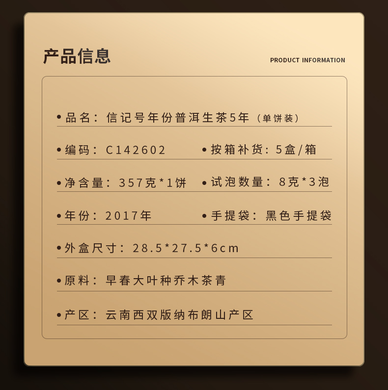 八马信记号 | 普洱生茶 信记号年份普洱生茶5年 单饼装 C142602