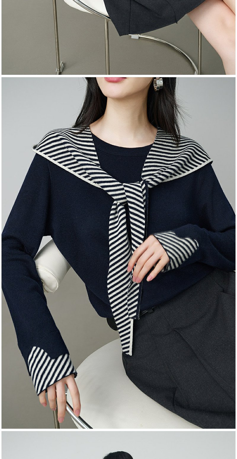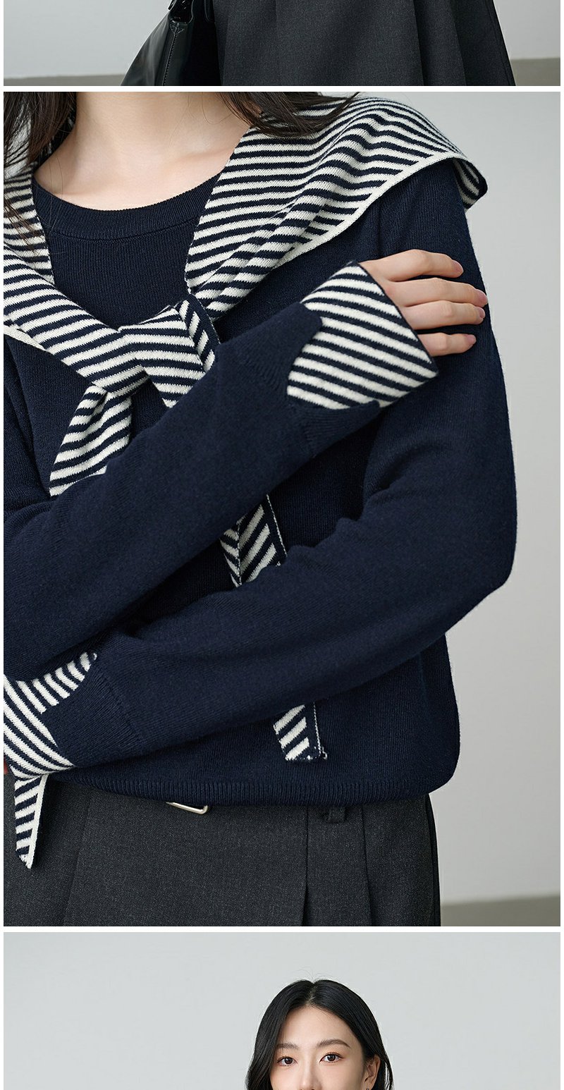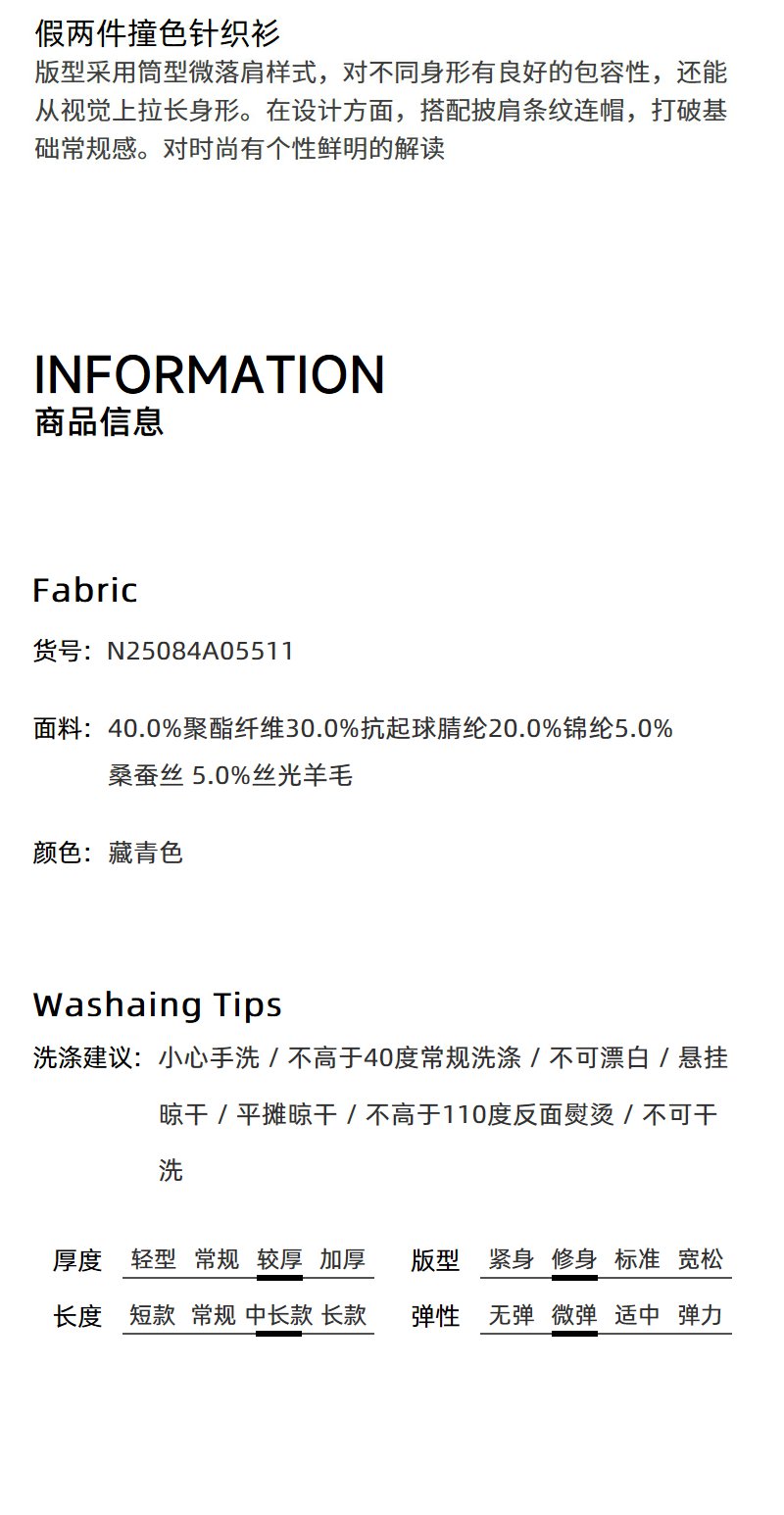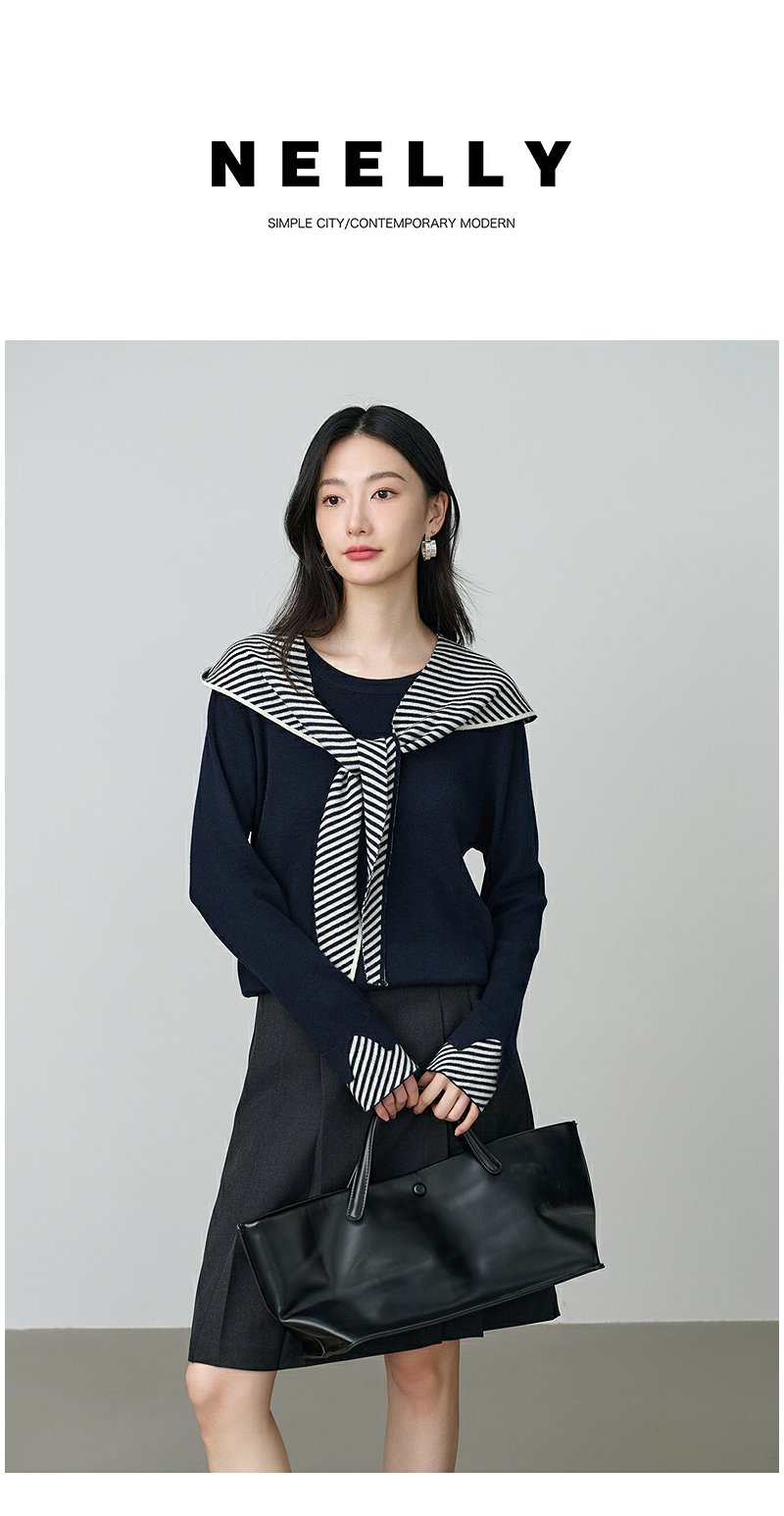 NEELLY纳俪商场同款秋季新款假两件披肩撞色针织衫女质感个性上衣N25084A05511