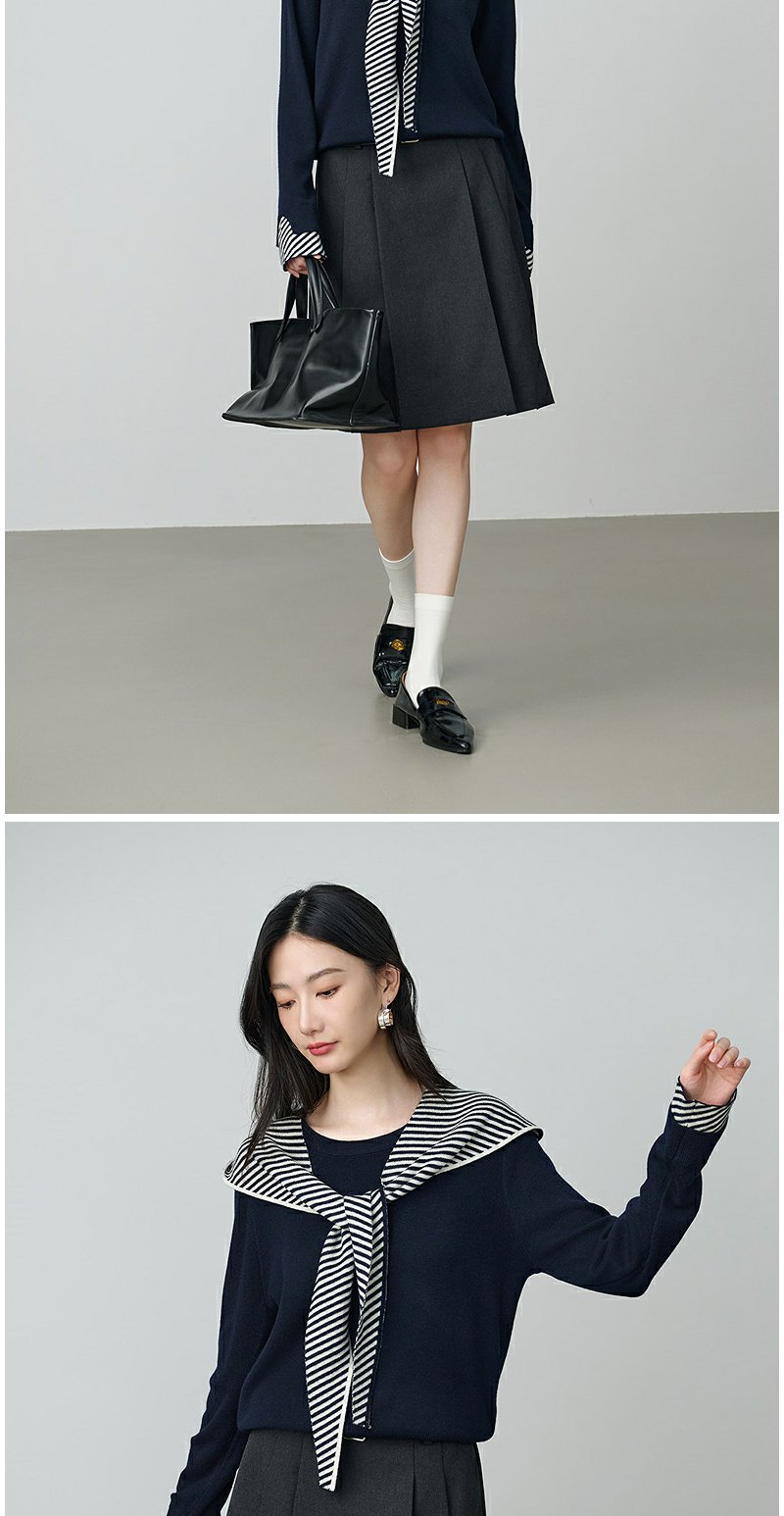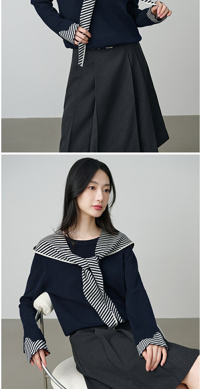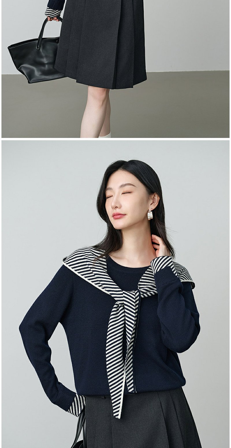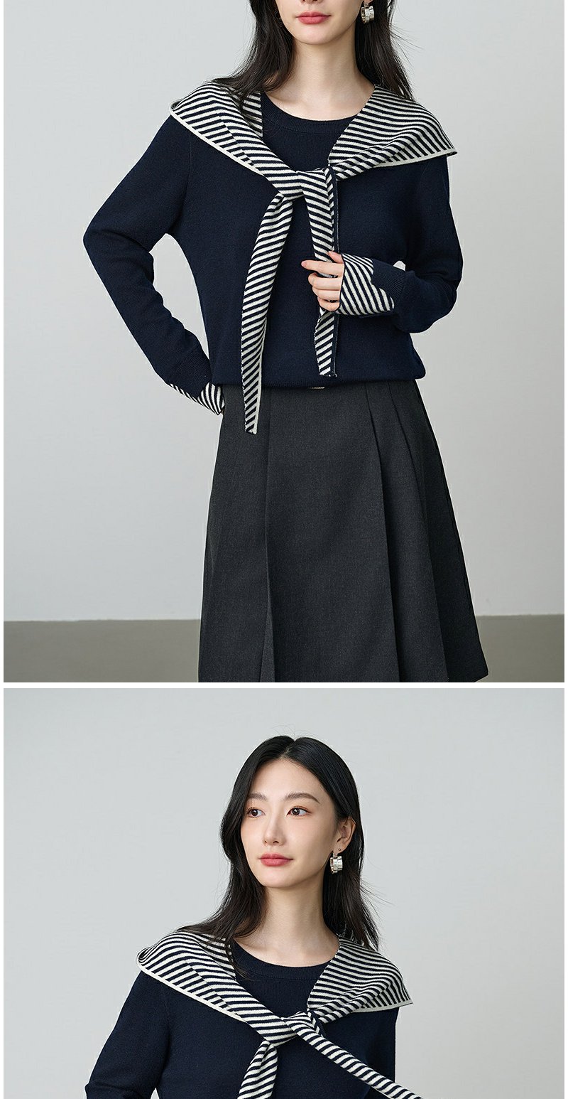 NEELLY纳俪商场同款秋季新款假两件披肩撞色针织衫女质感个性上衣N25084A05511