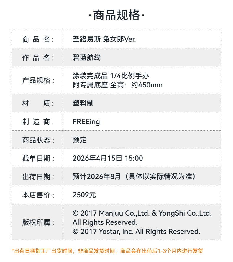 【GSC预售定金】1/4标准比例 圣路易斯 兔女郎Ver. 碧蓝航线