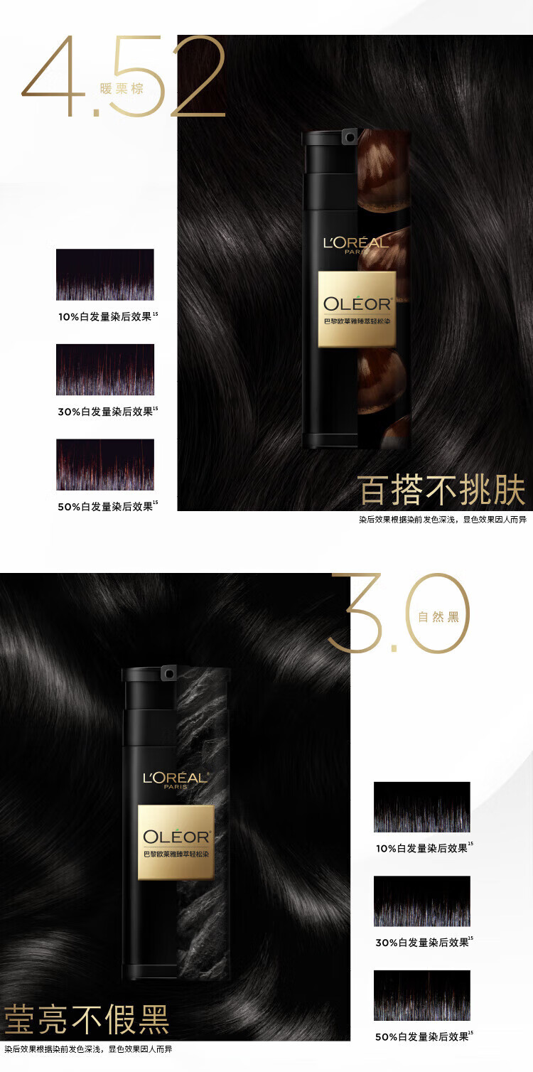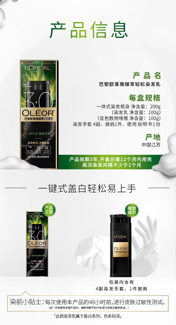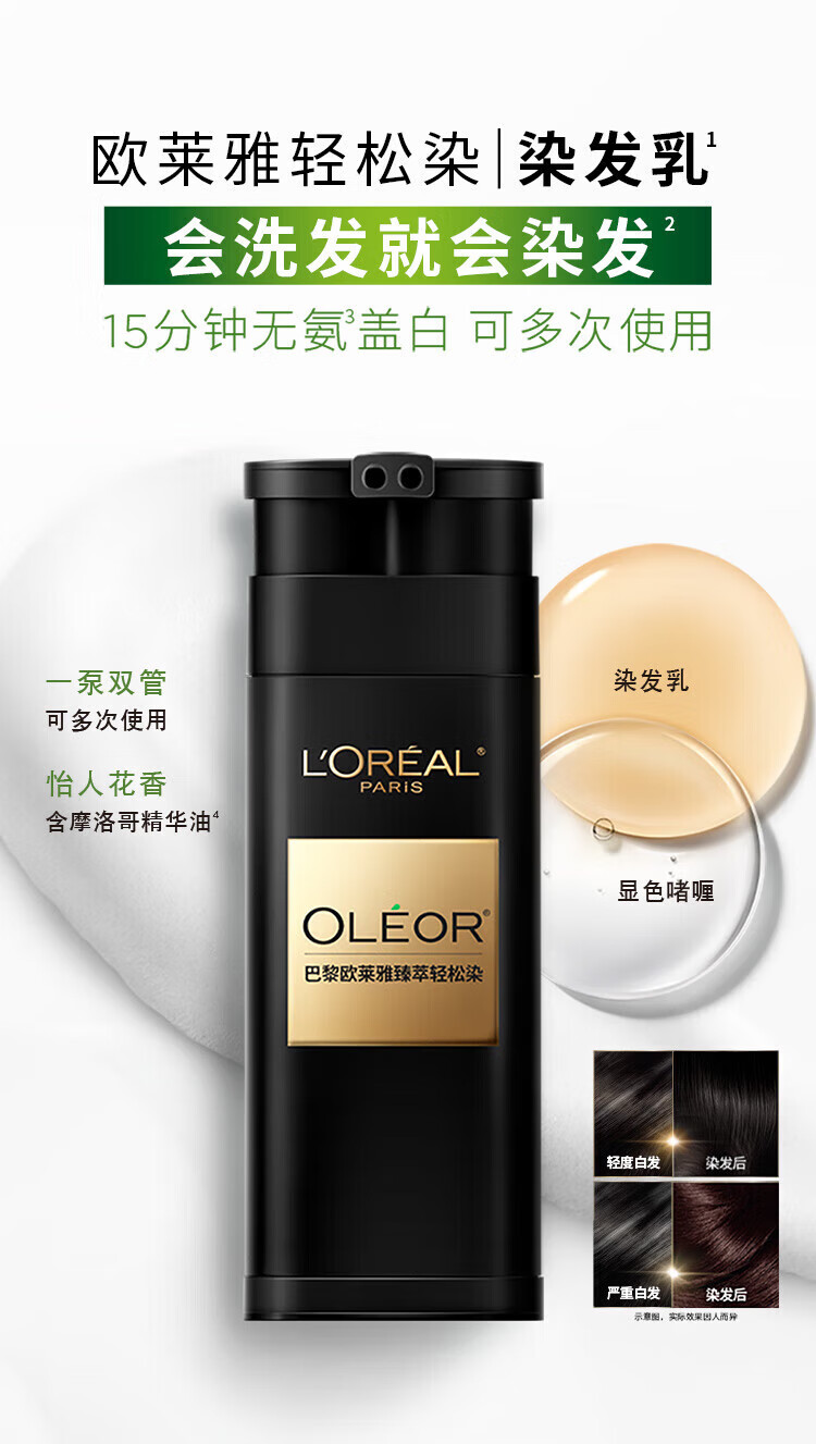 欧莱雅臻萃轻松染发乳轻松染3号 自然黑