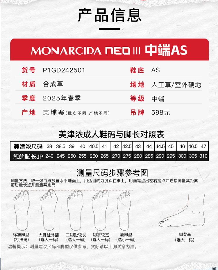 小李子Mizuno美津浓MONARCIDA NEO 3中端AS碎钉成人足球鞋男P1GD242501