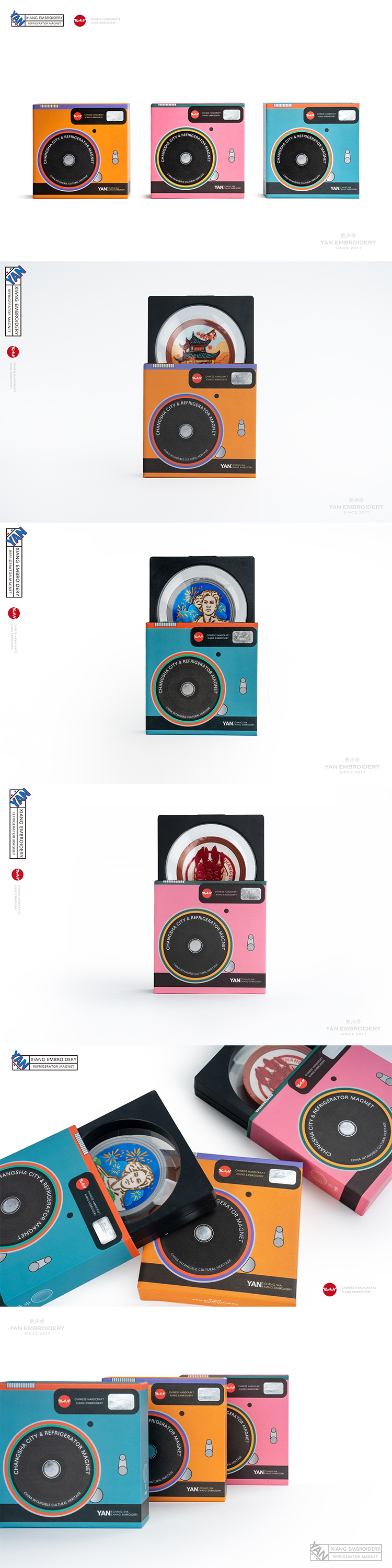 艷 湘绣 城市文化冰箱贴国潮风原创冰箱磁力贴个性家居装饰中国风磁铁贴