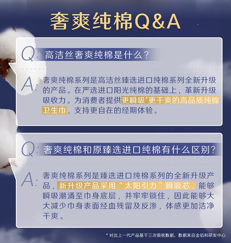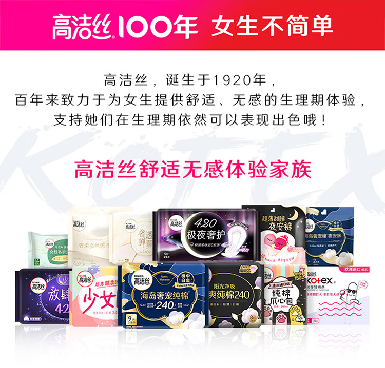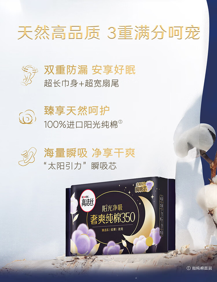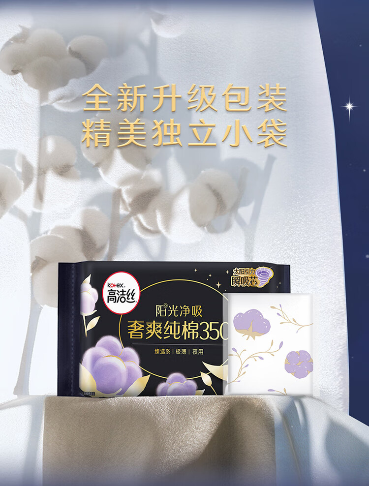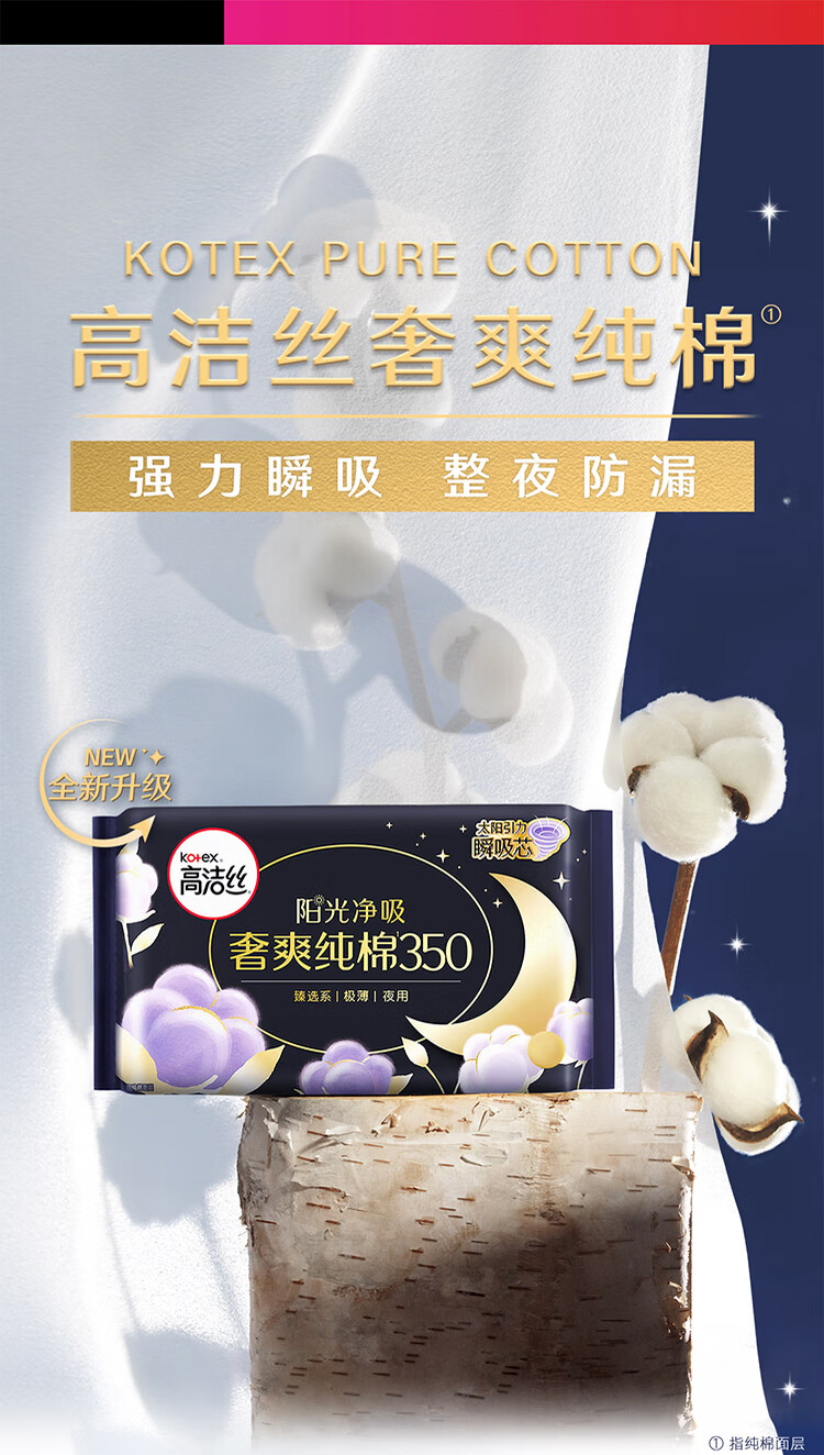 高洁丝臻选系极薄纯棉卫生巾夜用350mm4片/