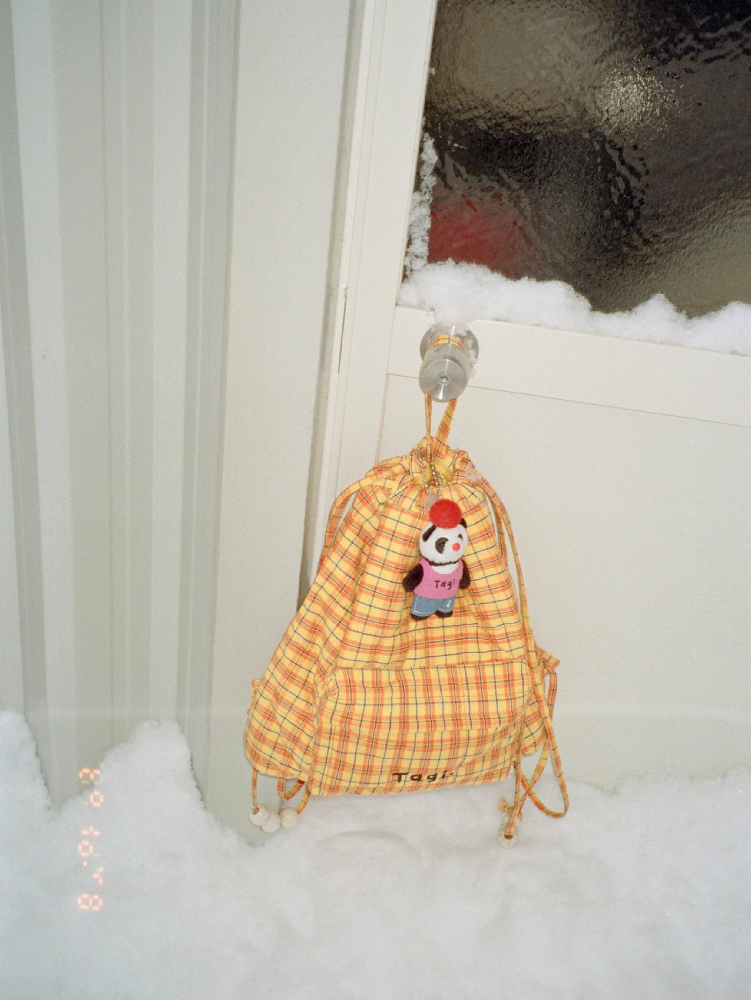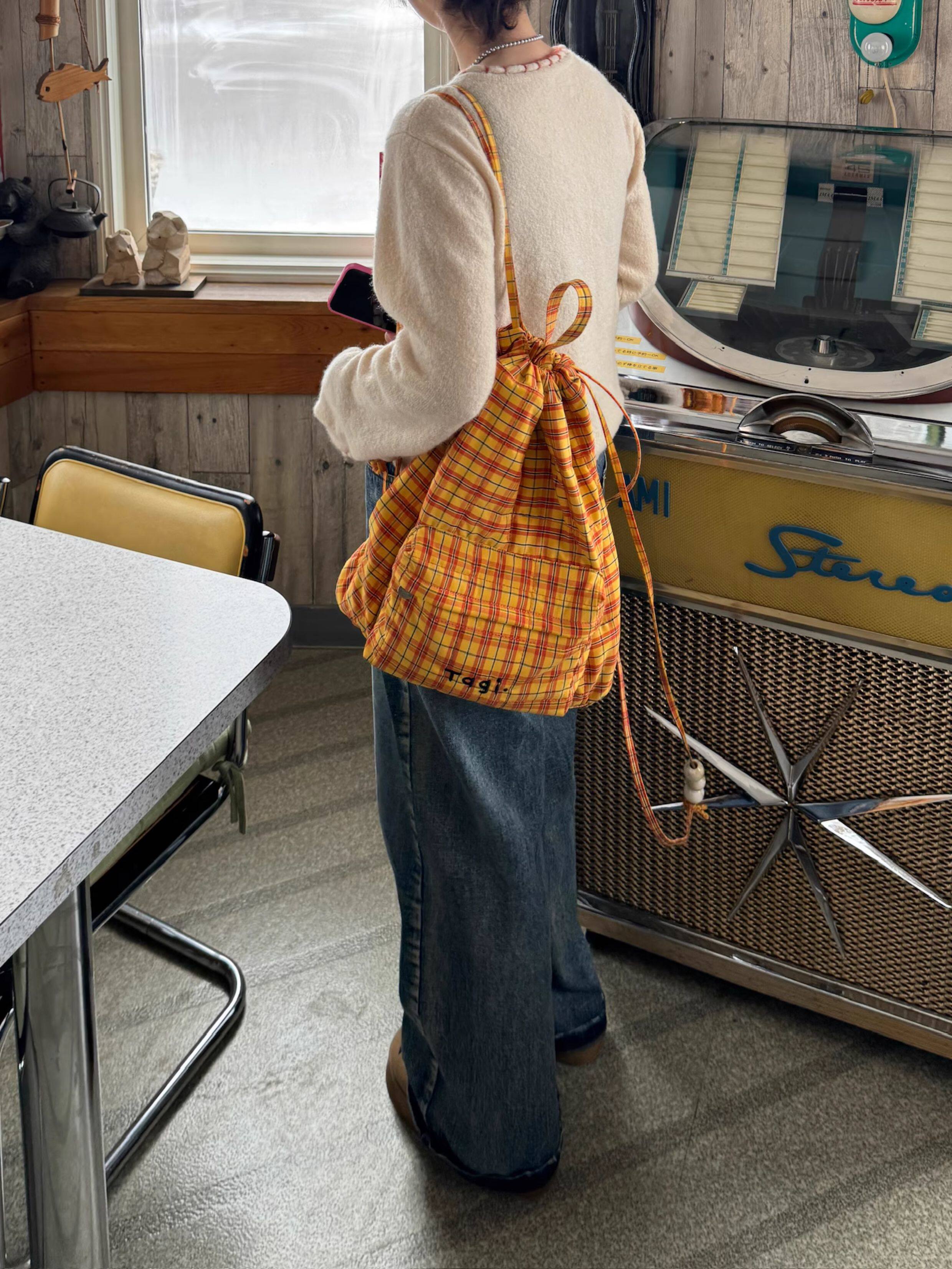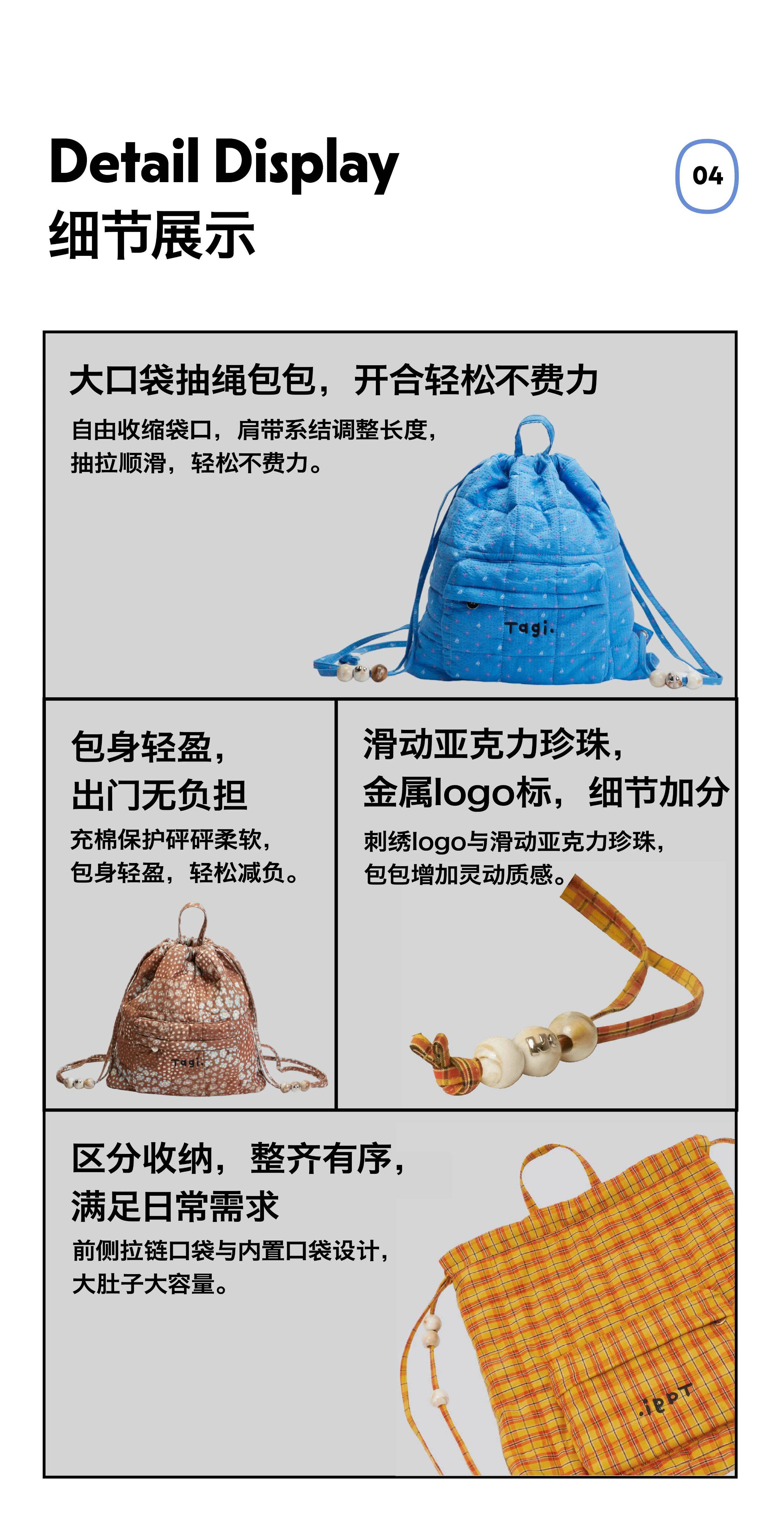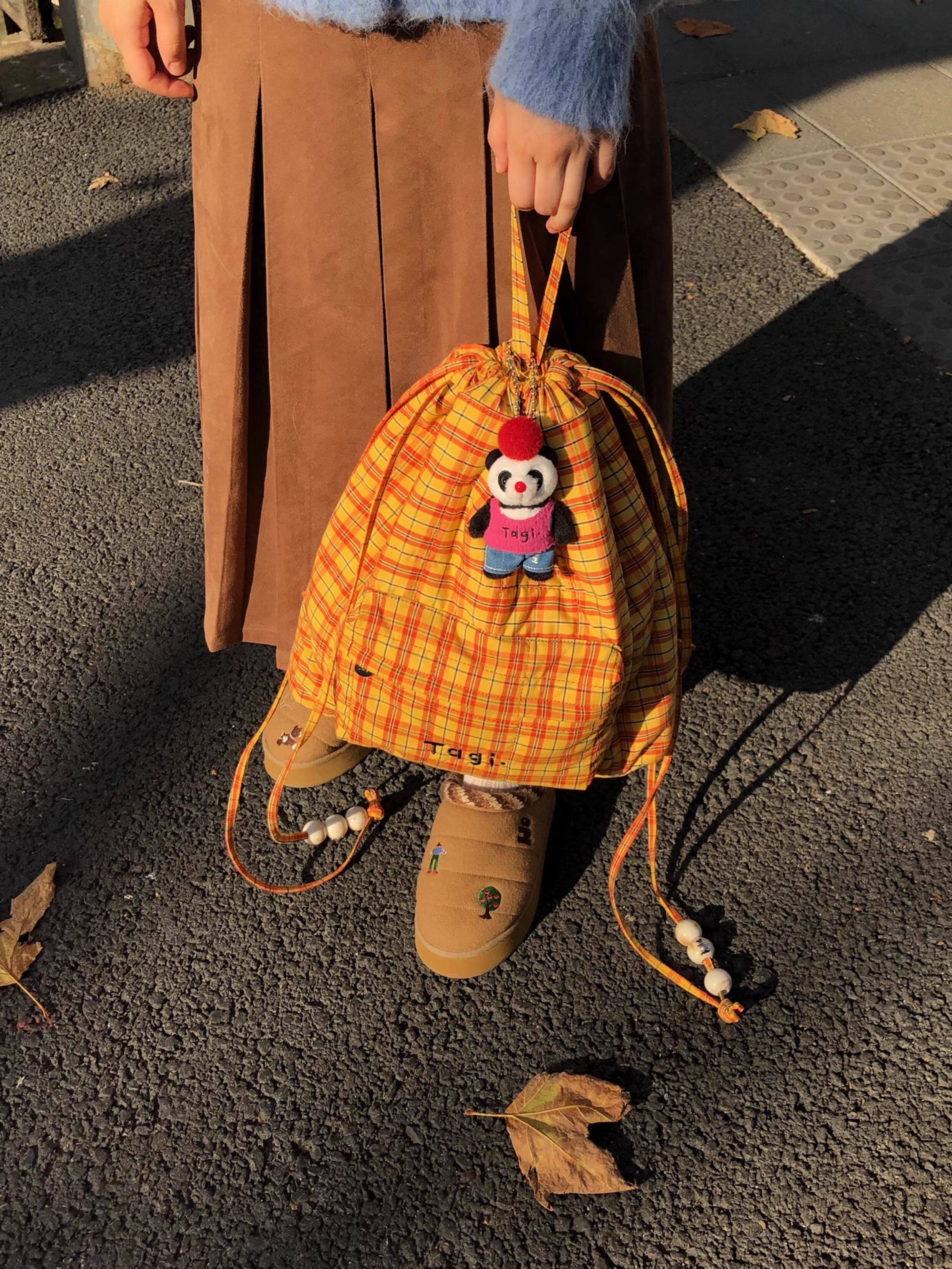 Tagi 珍珠亚克力串珠复古抽绳双肩包 柑橘饼干 可爱抽绳帆布包大容量双肩包