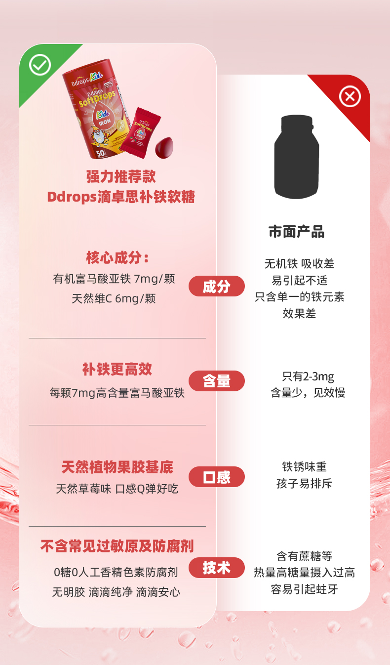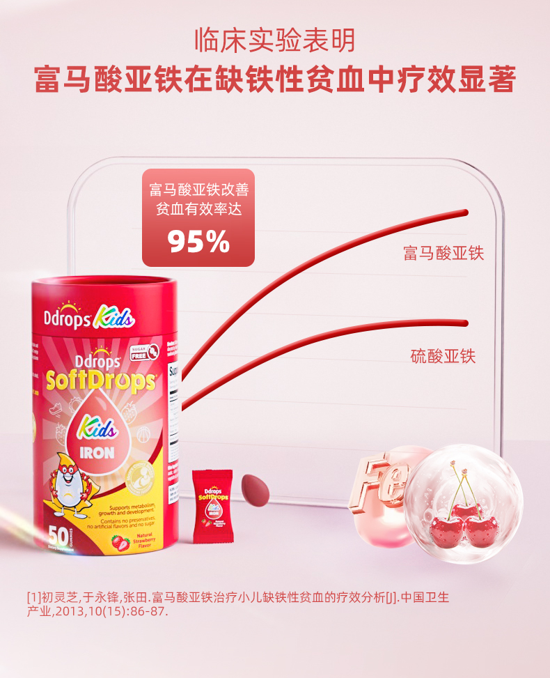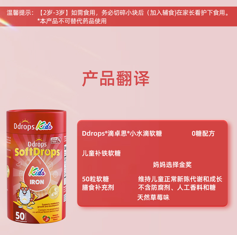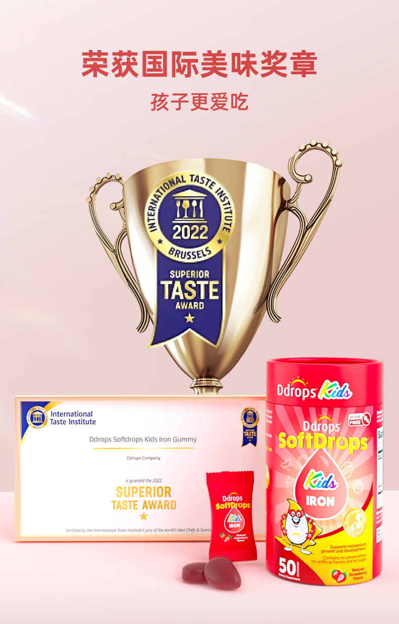 【独立包装】Ddrops滴卓思儿童维C补铁软糖无糖营养脸色红润 3岁以上SC