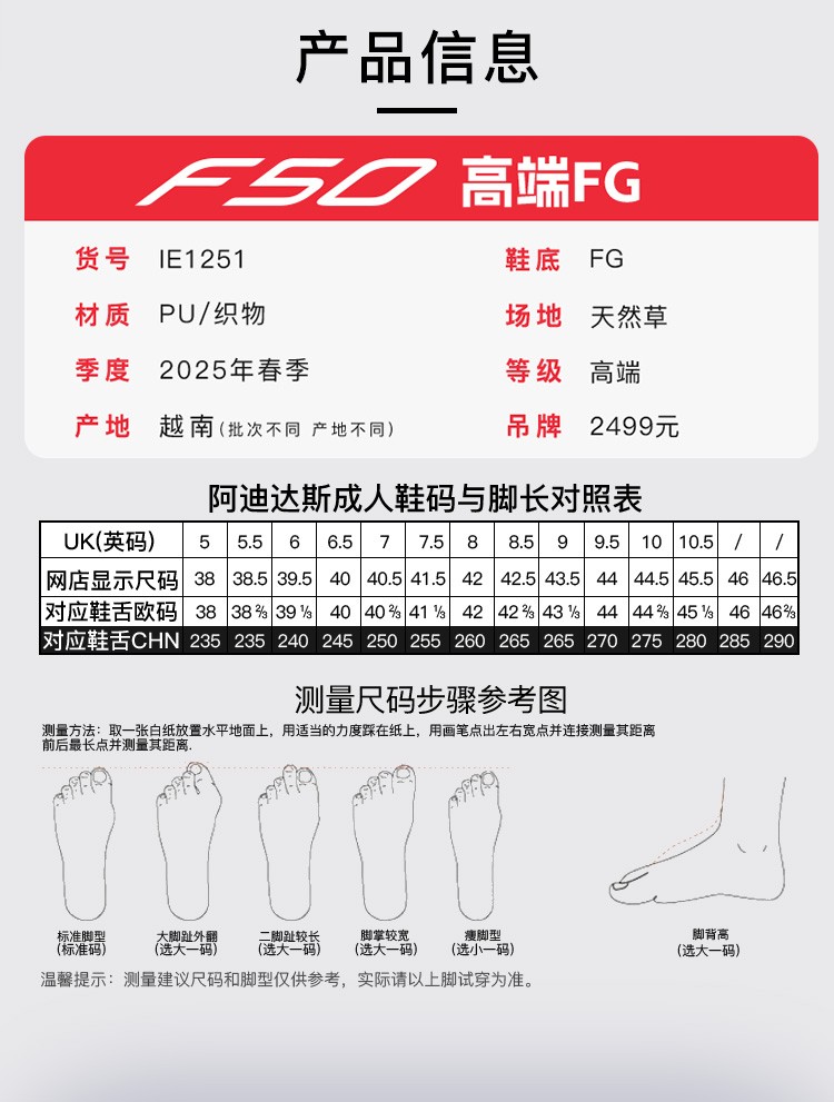 小李子正品ADIDAS阿迪达斯F50+高端FG长钉成人比赛足球鞋男IE1251 商品图4