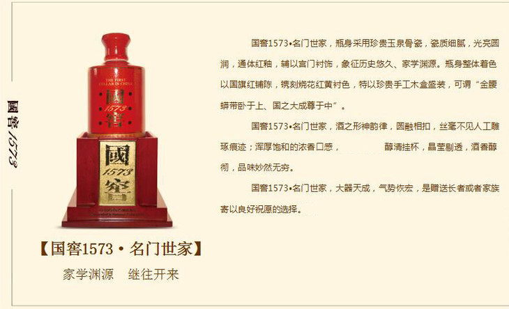 55度 国窖1573 名门世家 浓香型高度白酒 泸州老窖官方旗舰店