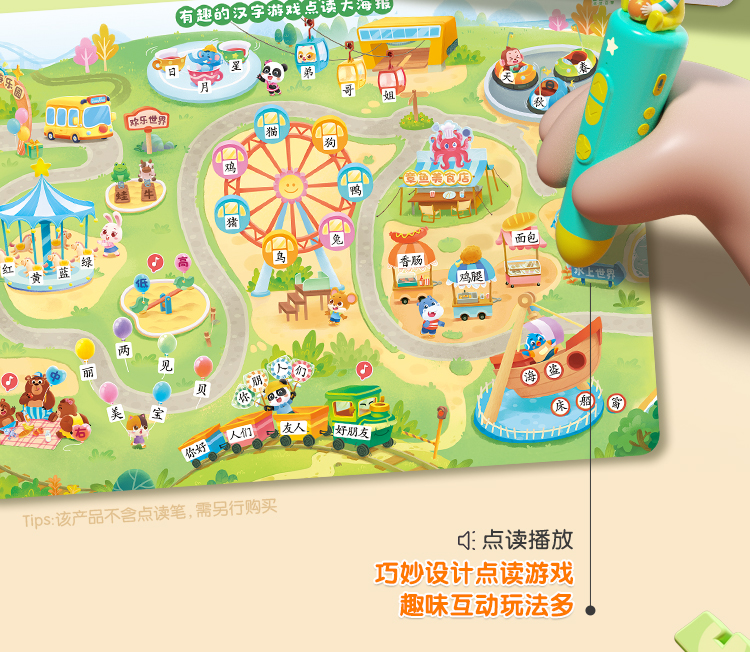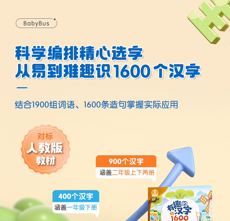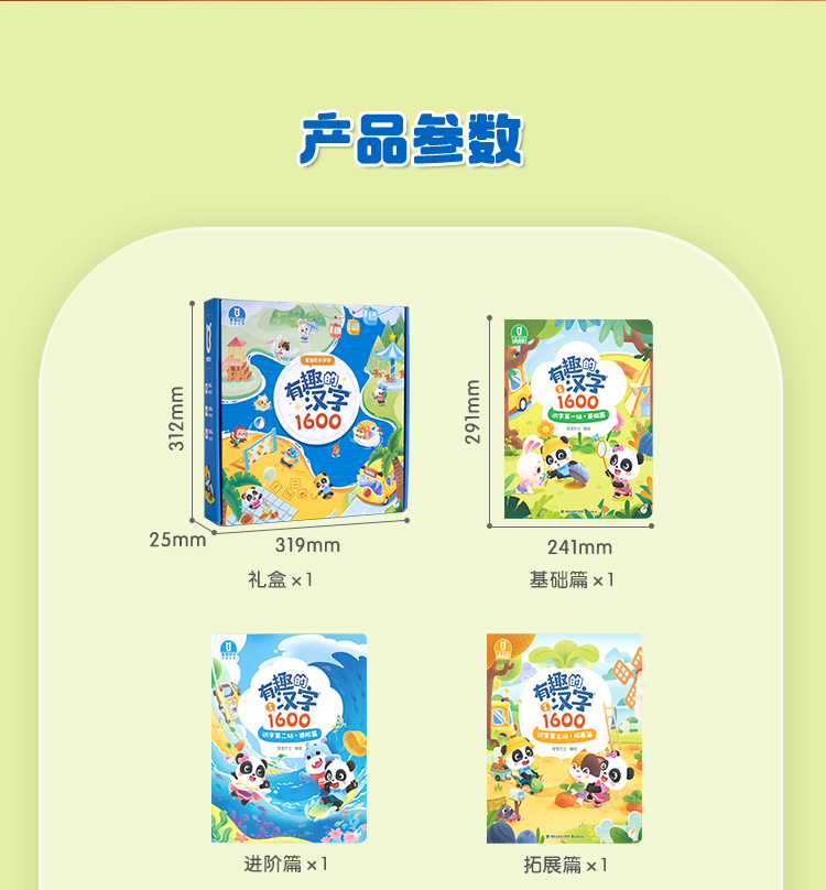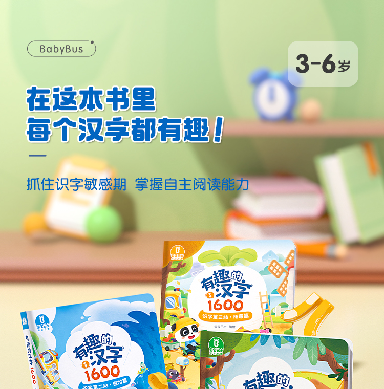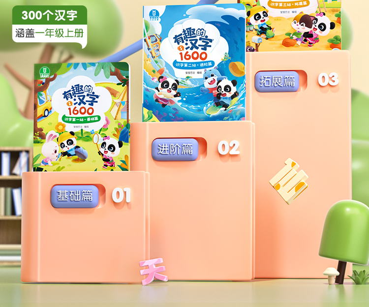 【点读版】宝宝巴士识字启蒙3岁+ 有趣的汉字1600套盒/3册(赠拼音海报)(不含笔)