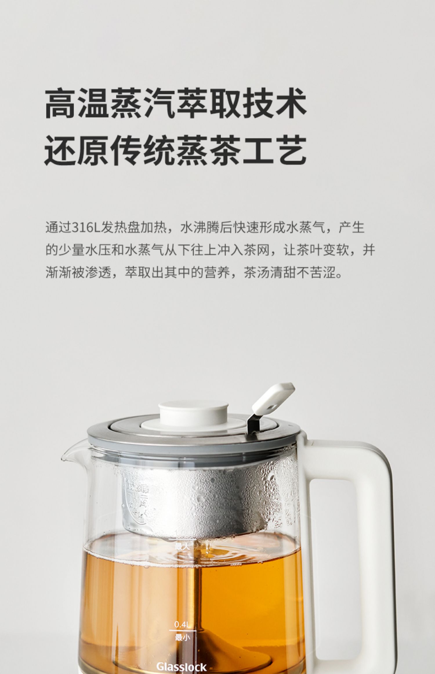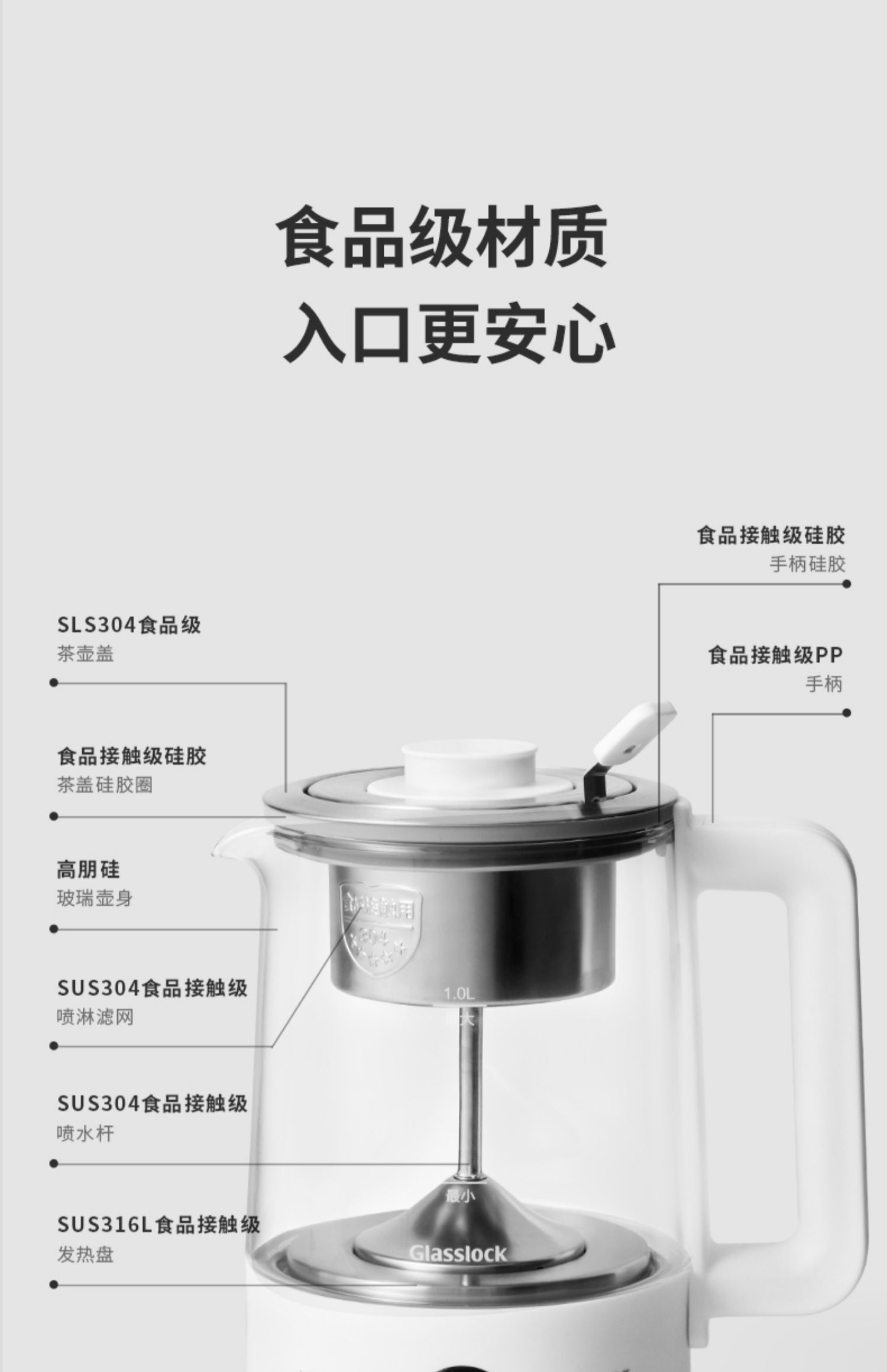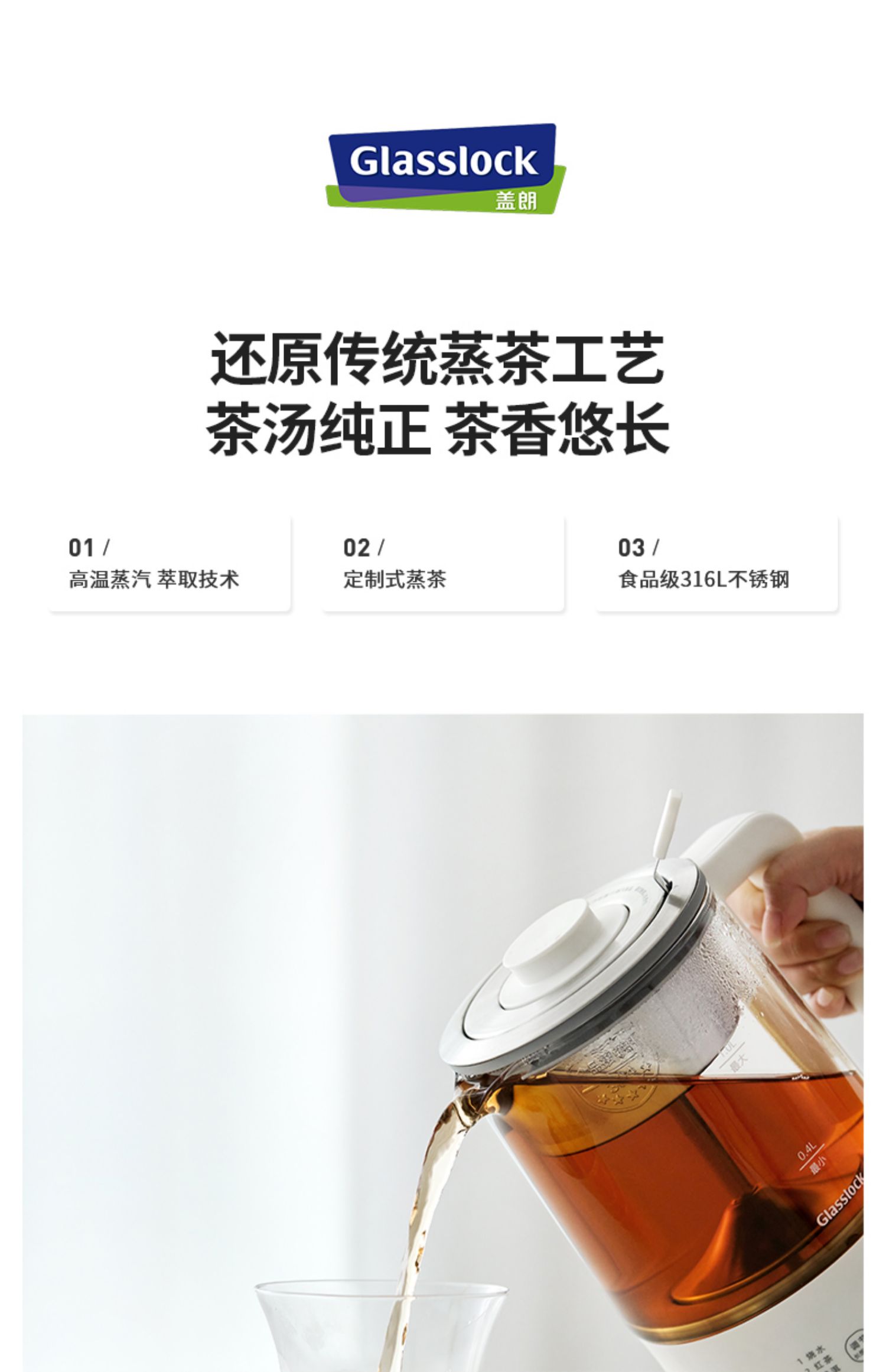 B-GL-GE-TA01GY Glasslock-煮茶器 1L