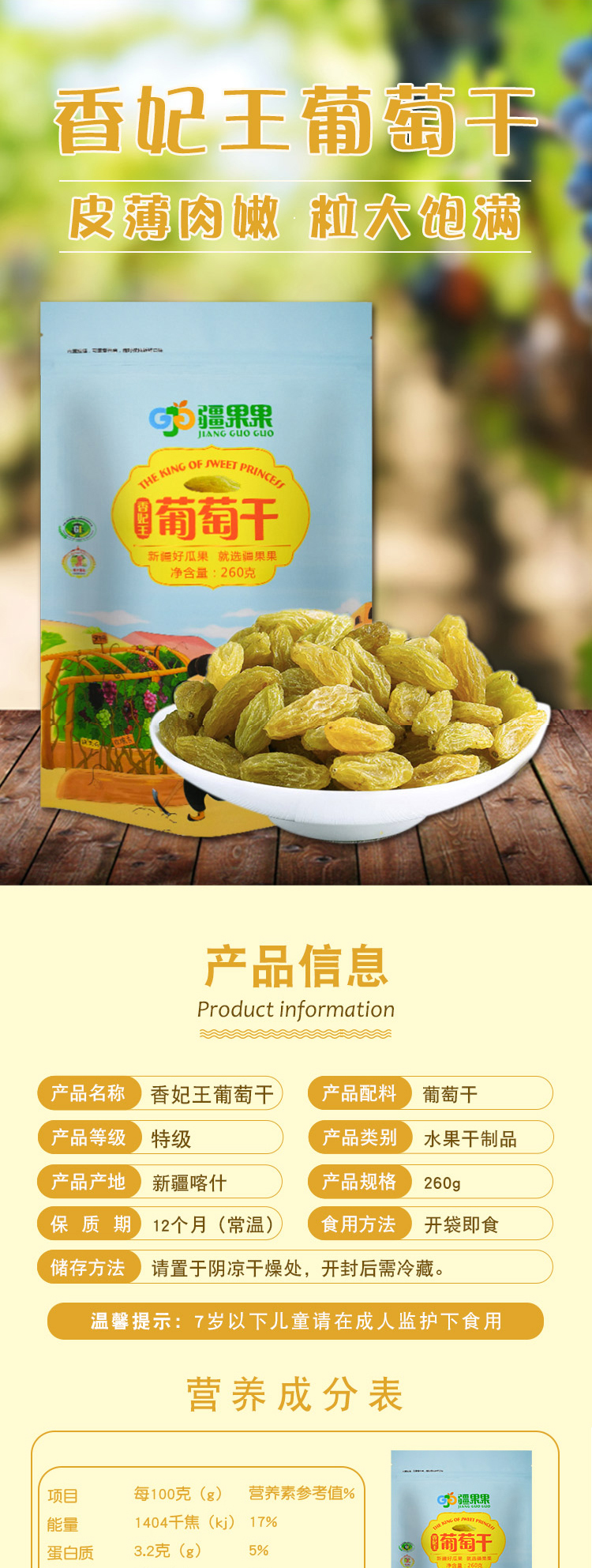 疆果果 香妃王无籽葡萄干 260g 新疆