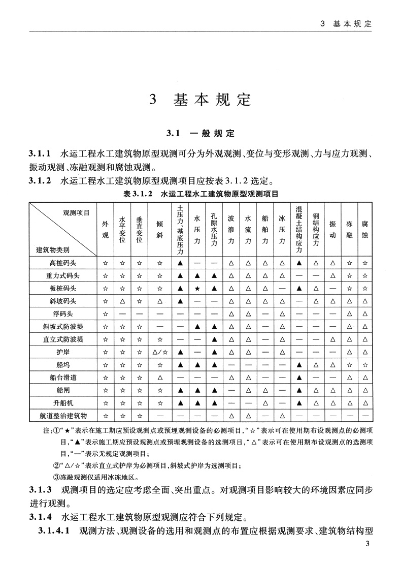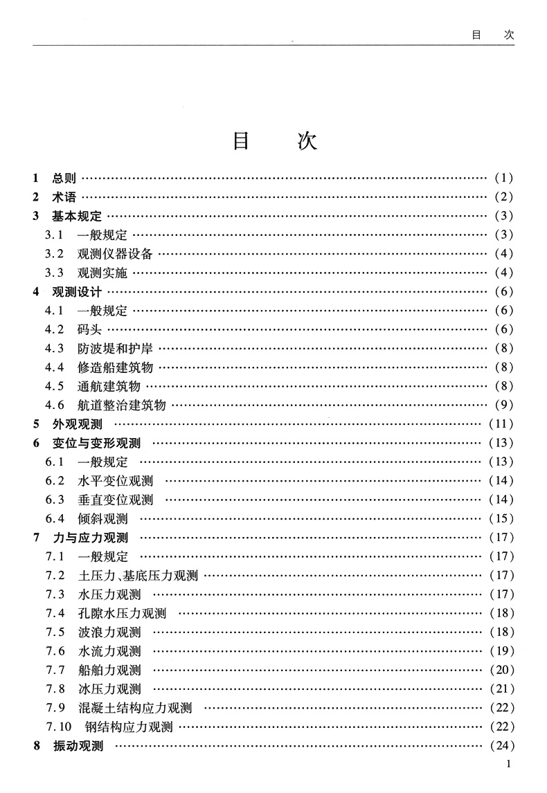 本规范是在《水运工程水工建筑物原型观测技术规范》(JTJ218-2005的基础上,通过深入调查分析和专题研究,总结我国近年来水运工程水工建筑物原型观测的实践经验,经广泛征求有关单位和专家意见,并结合我国水运工程发展需要编制而成。主要包括观测设计、外观观测、变位与变形观测、力与应力观测、振动观测、冻融观测、腐蚀观测、观测报告等技术内容。