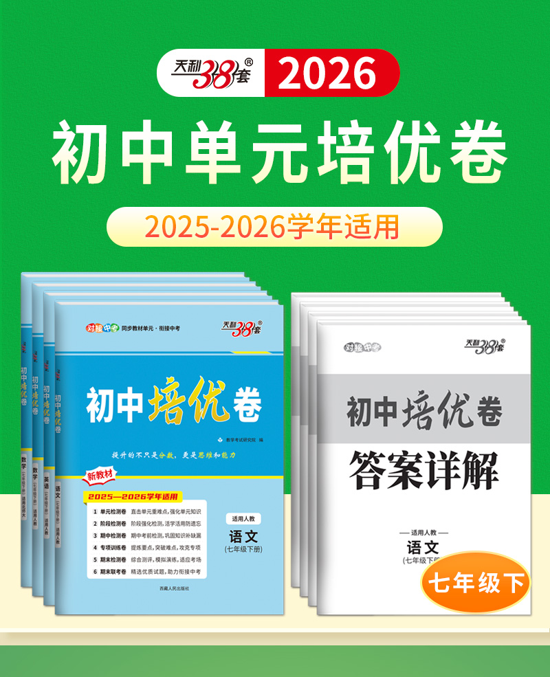 【天利38套】2026天利38套初中单元培优卷新教材测试卷全套七年级下册语文数学英语同步单元综合阶段检测卷练习册